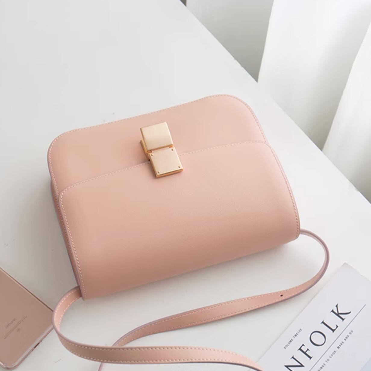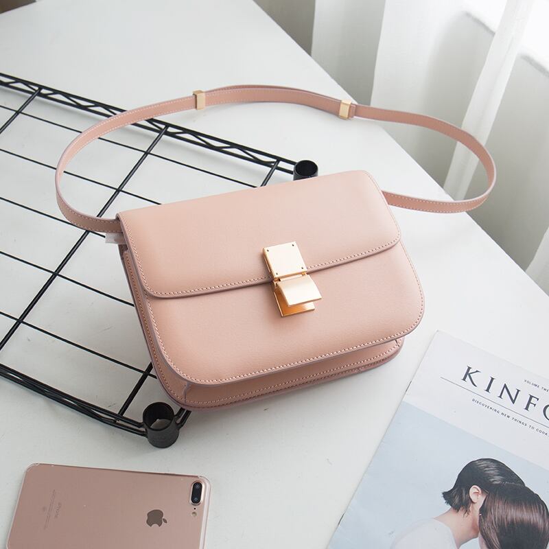 Small leather square bag Nude Pink