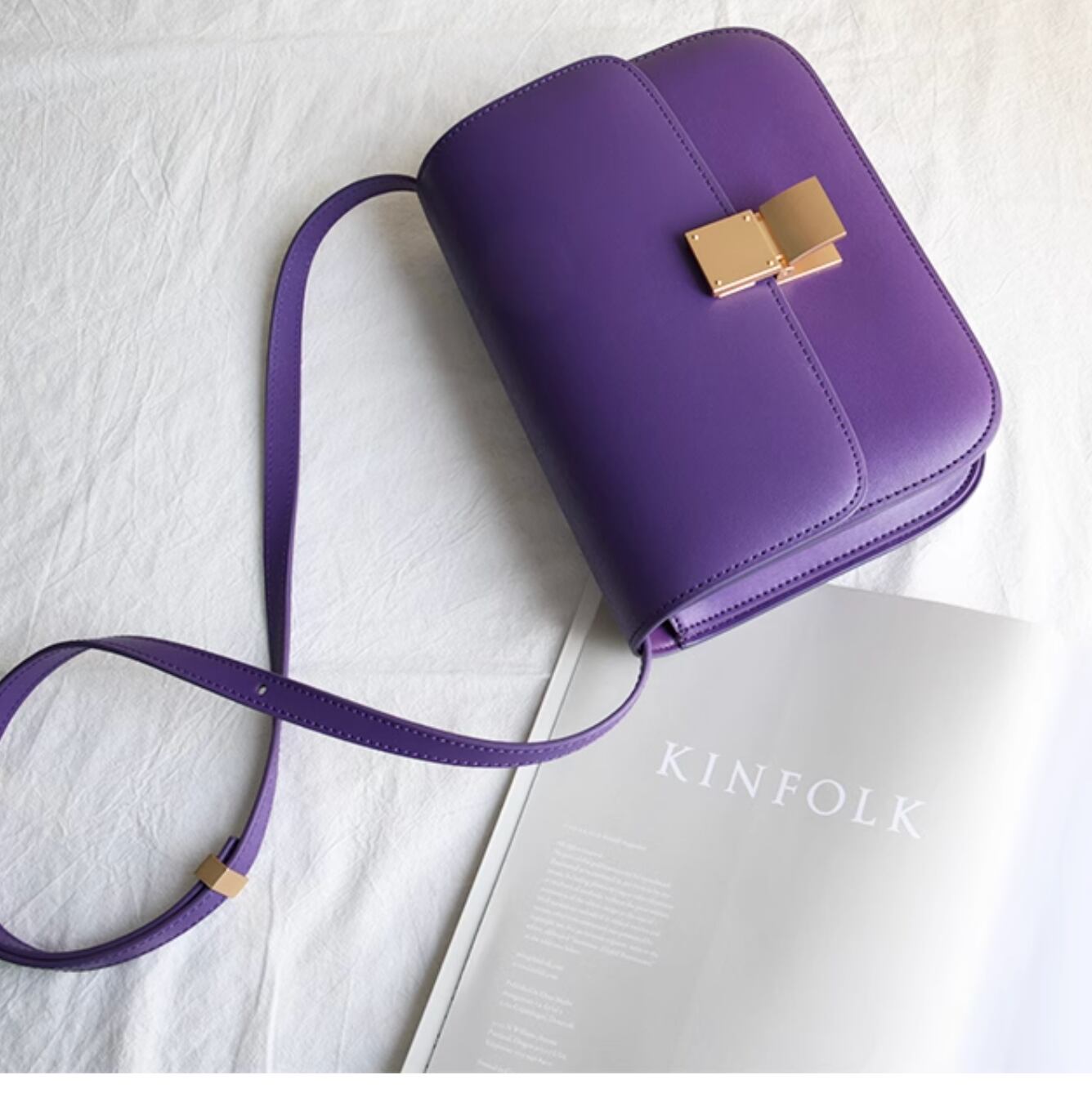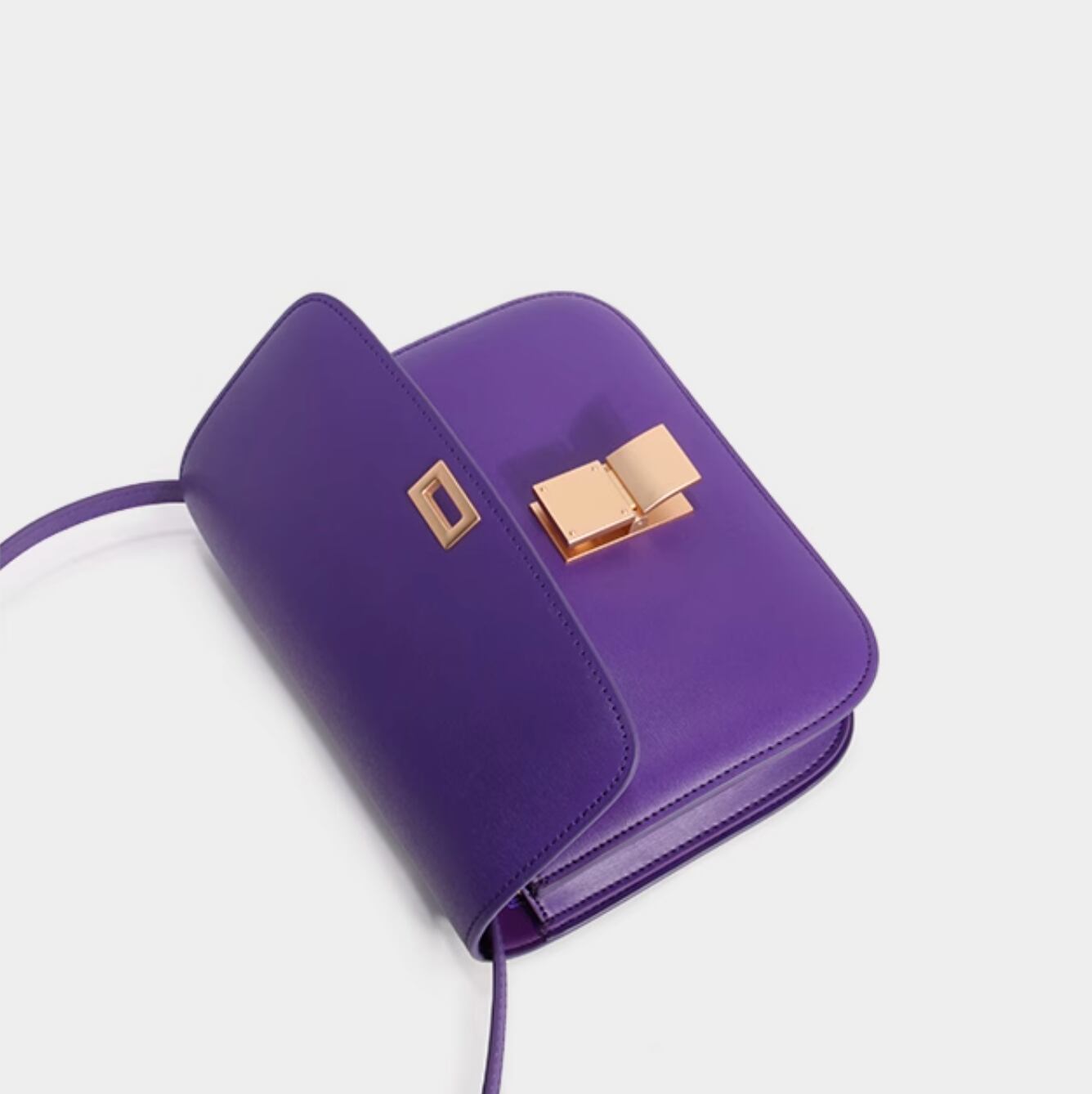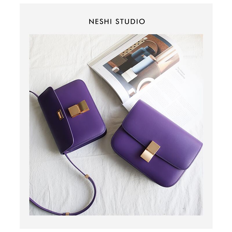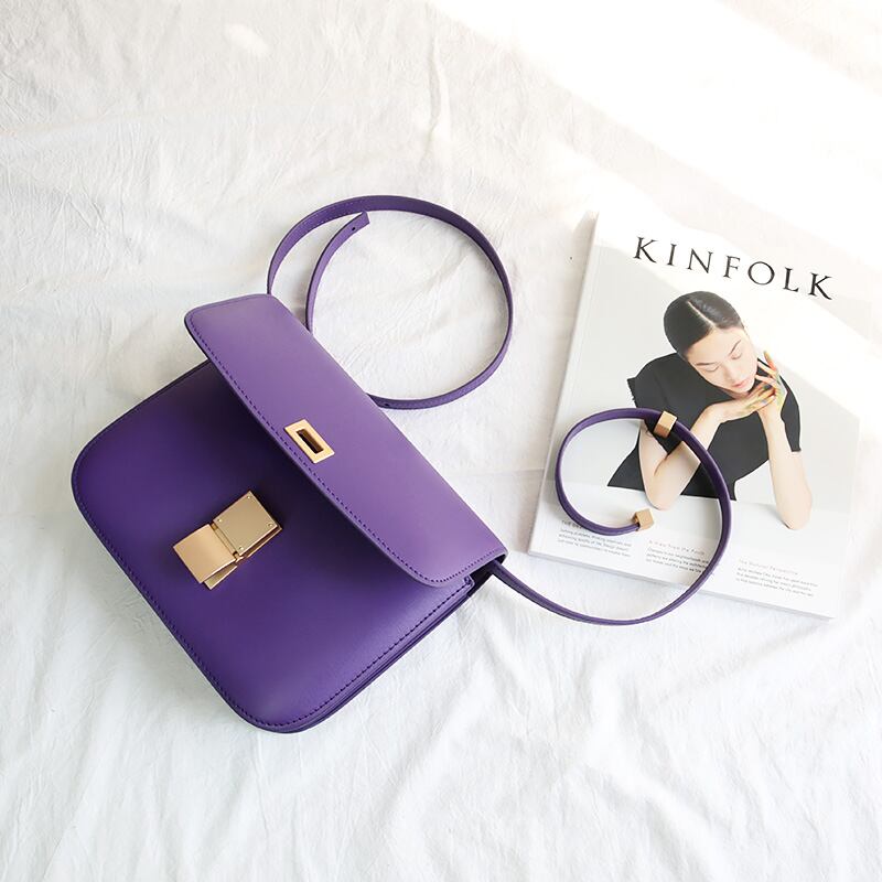 Small leather square bag purple