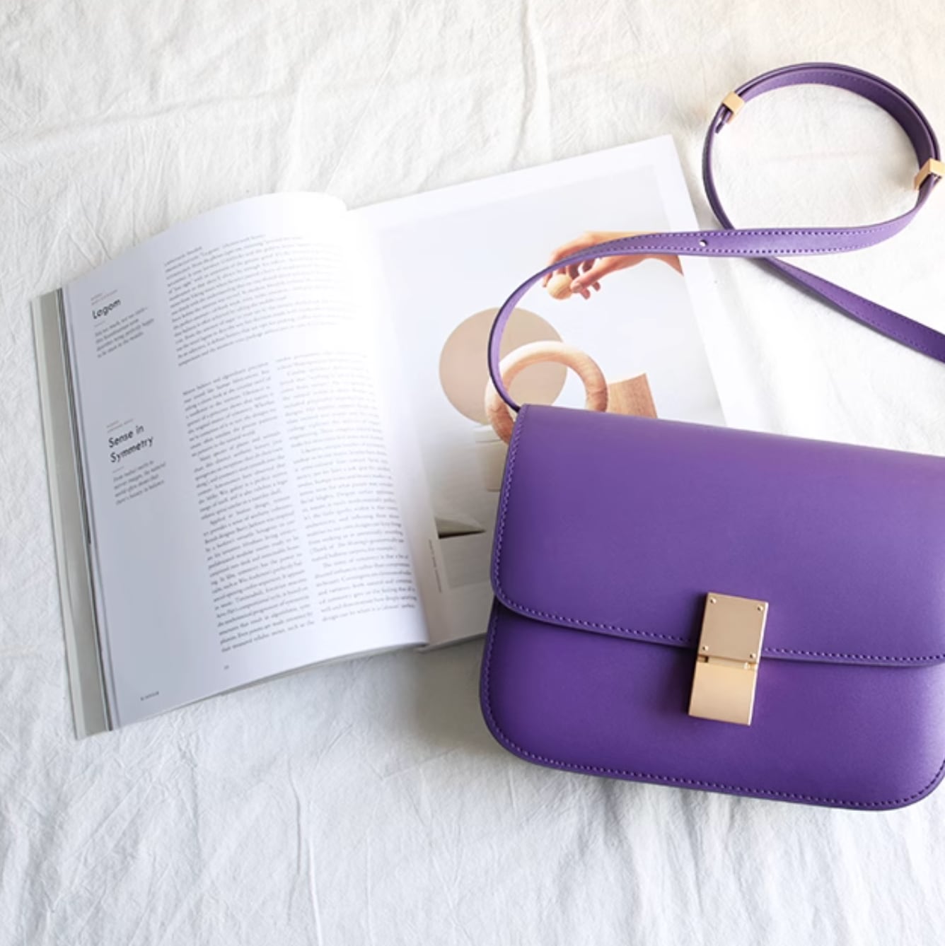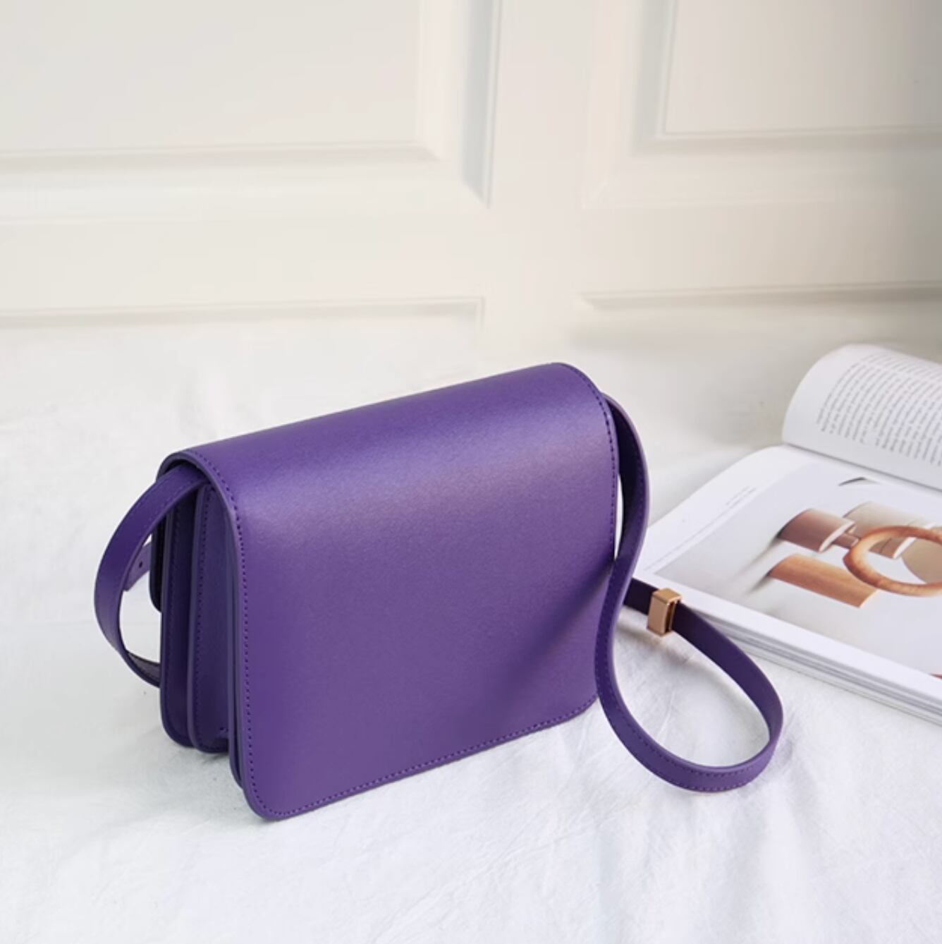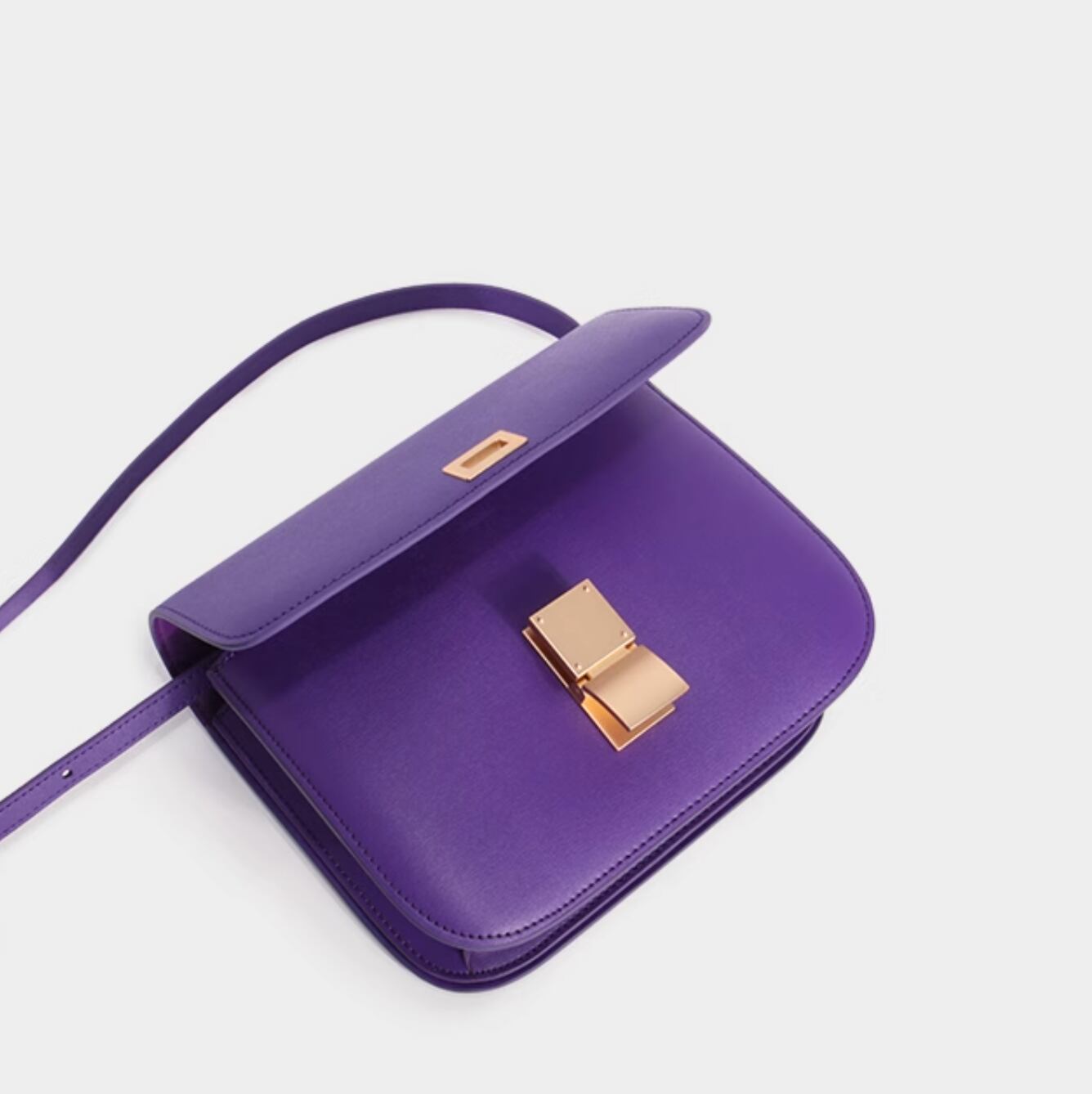 Small leather square bag purple