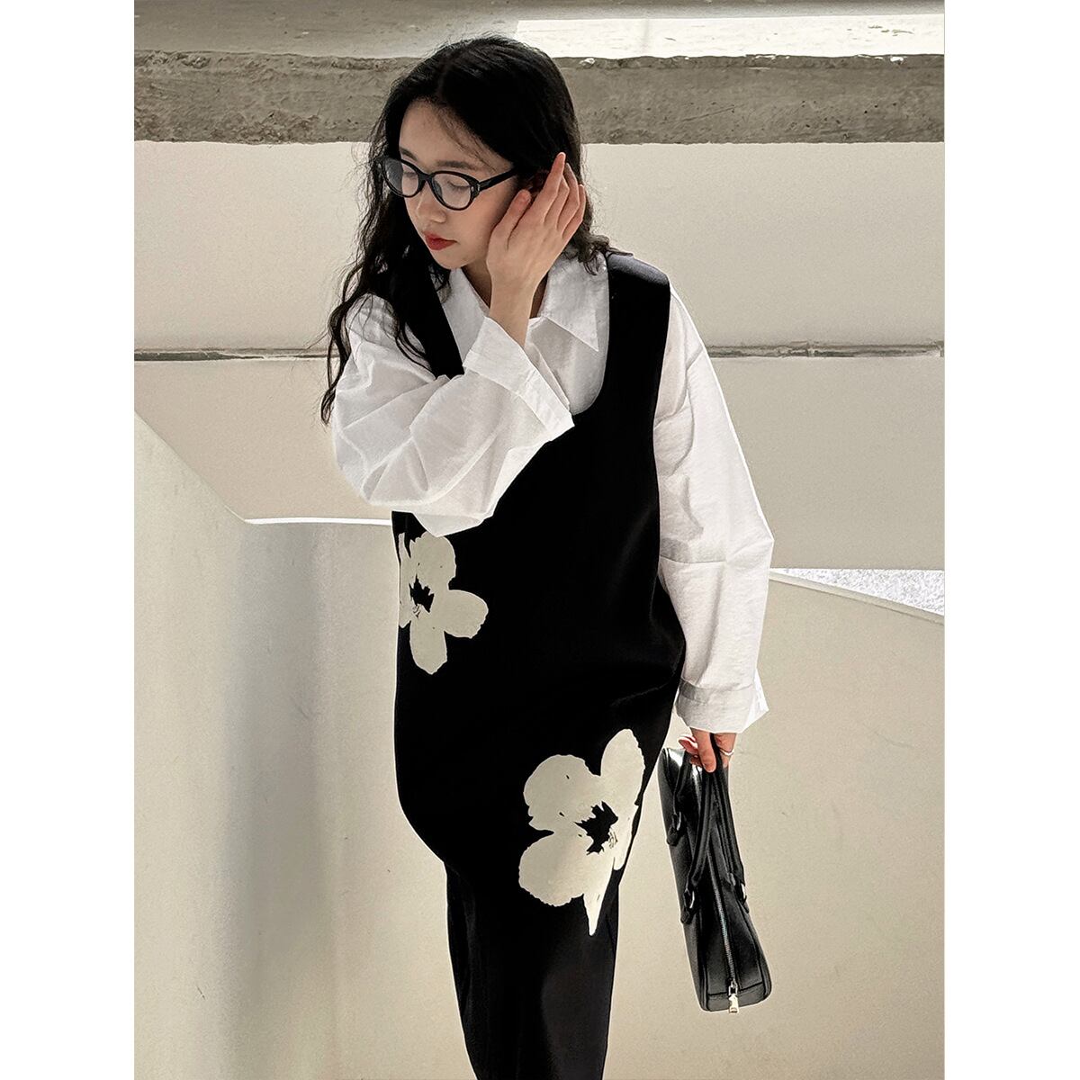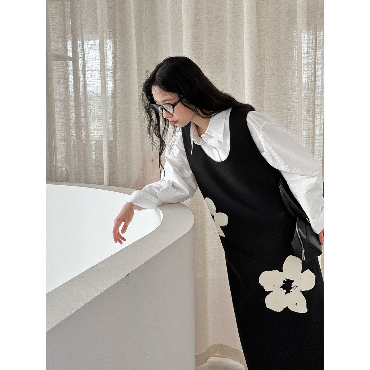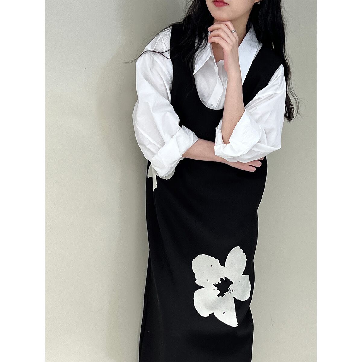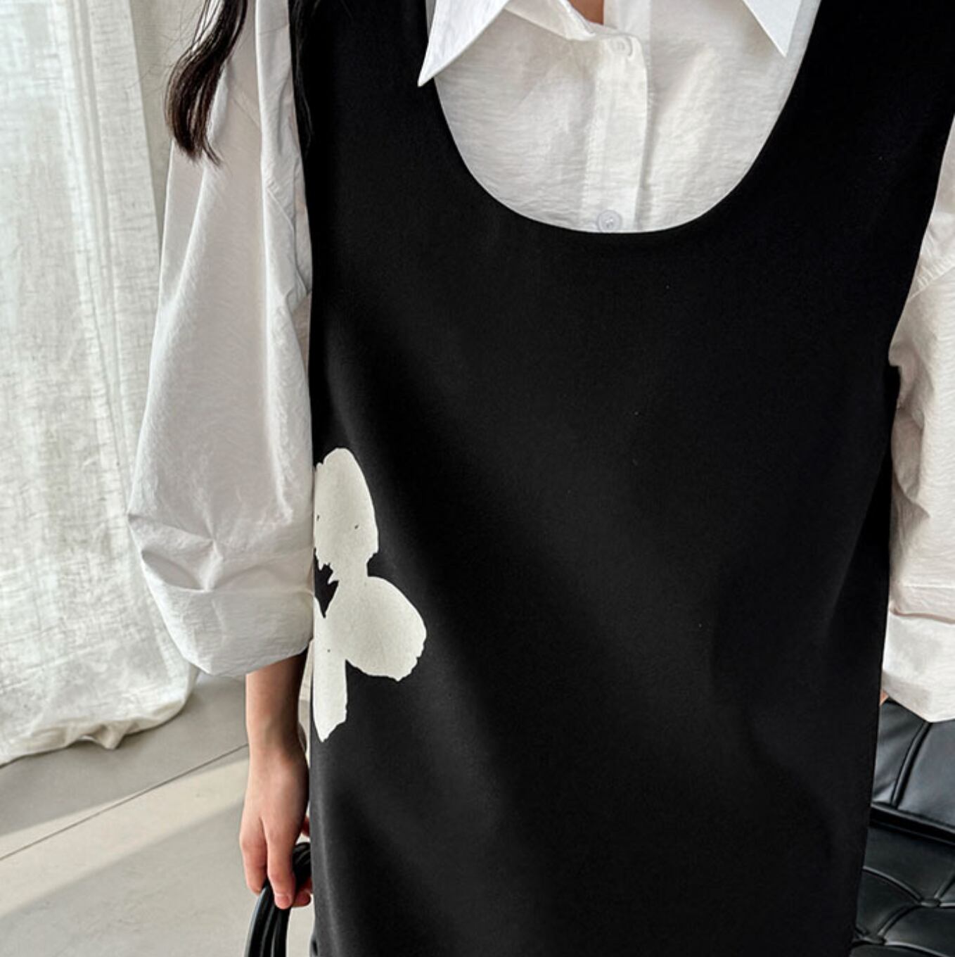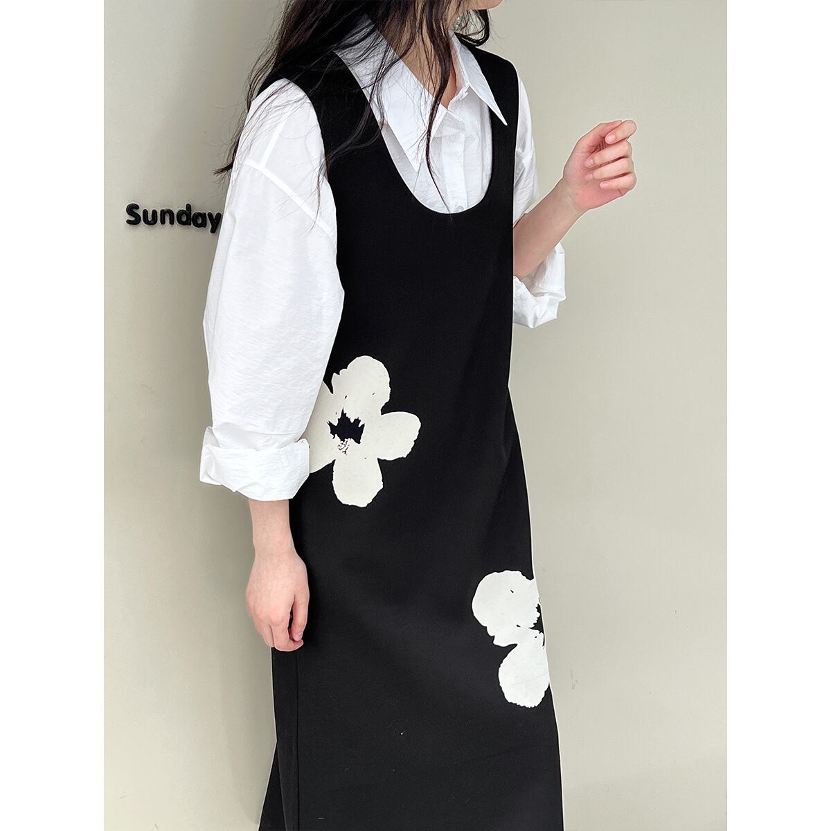 黒×白のシンプルなデザインに、大きめのフラワープリントがちょっぴり華やか。だけど派手すぎないから、大人っぽく着られるのがポイント。