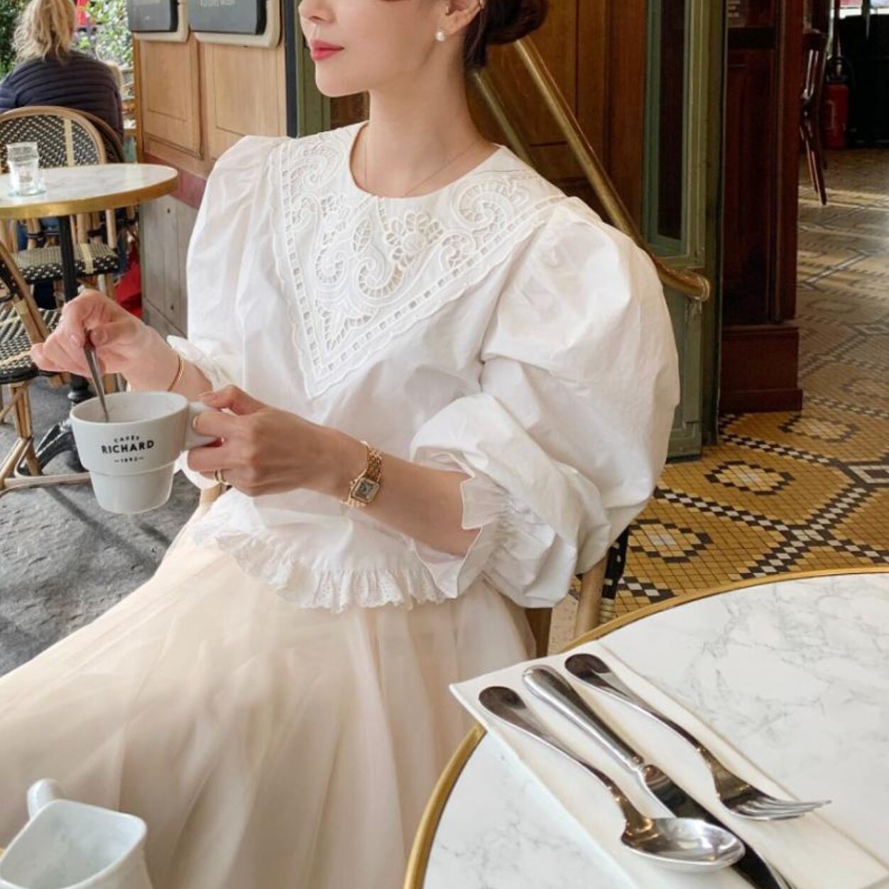 French retro lace shirt