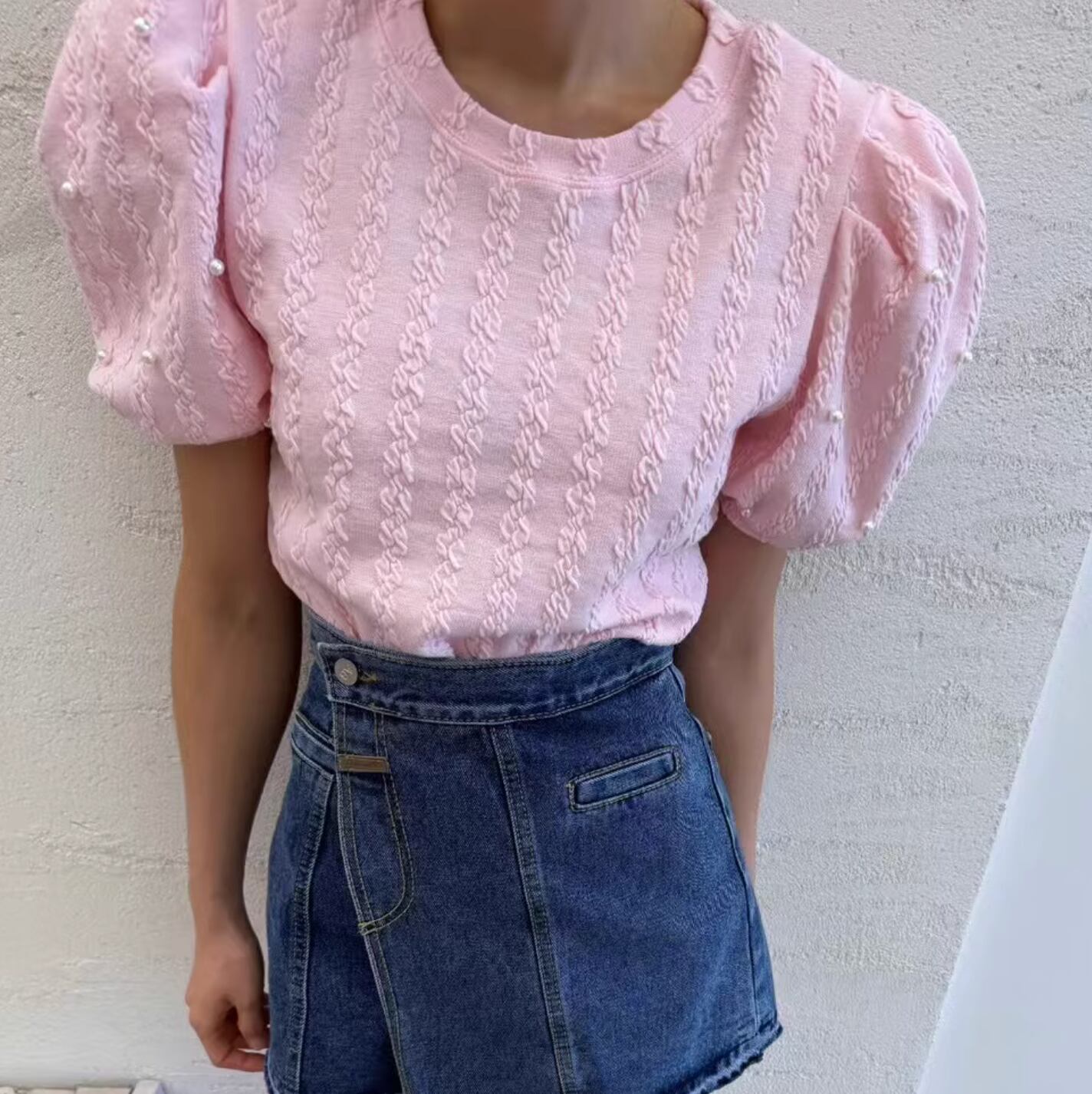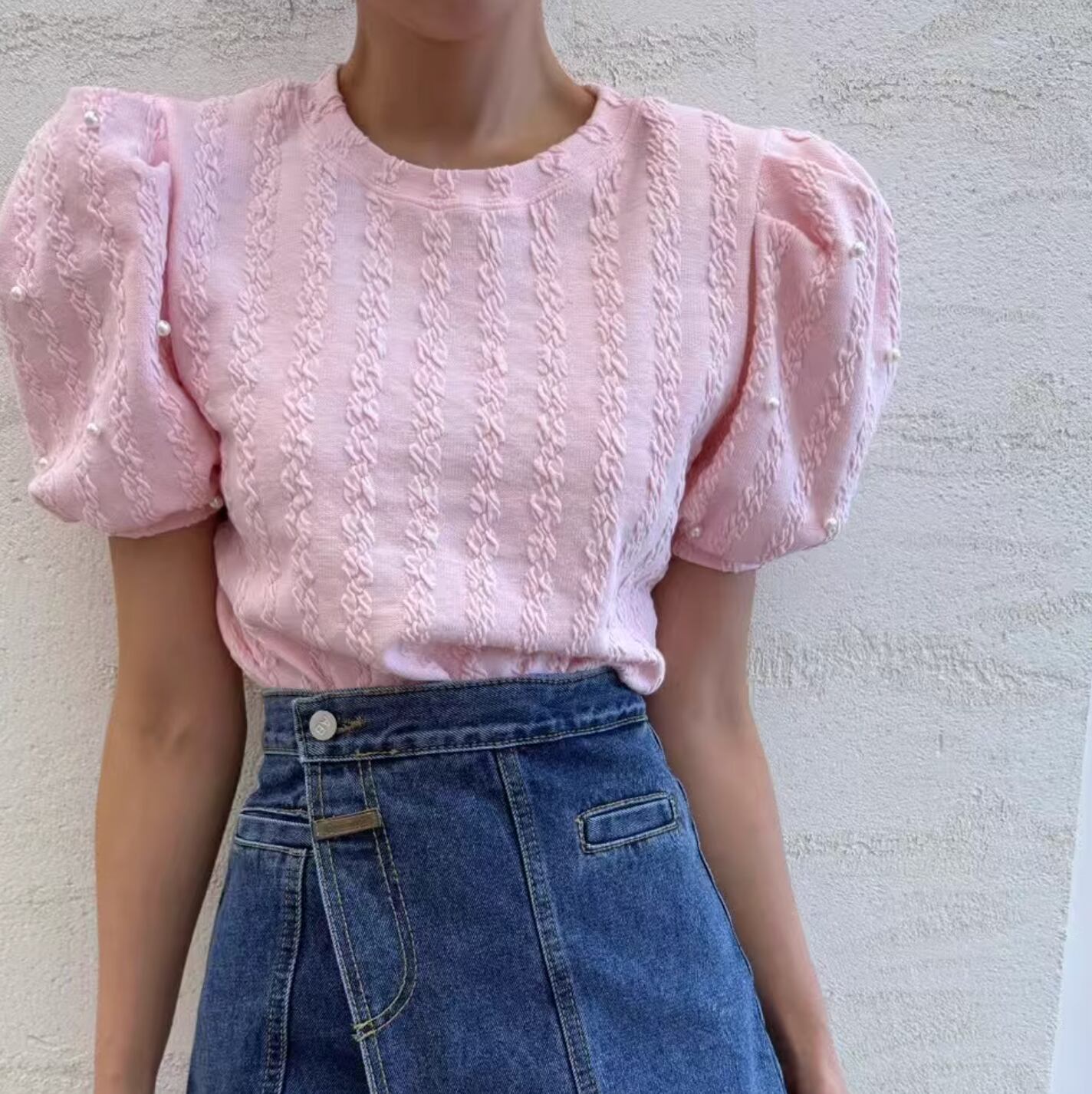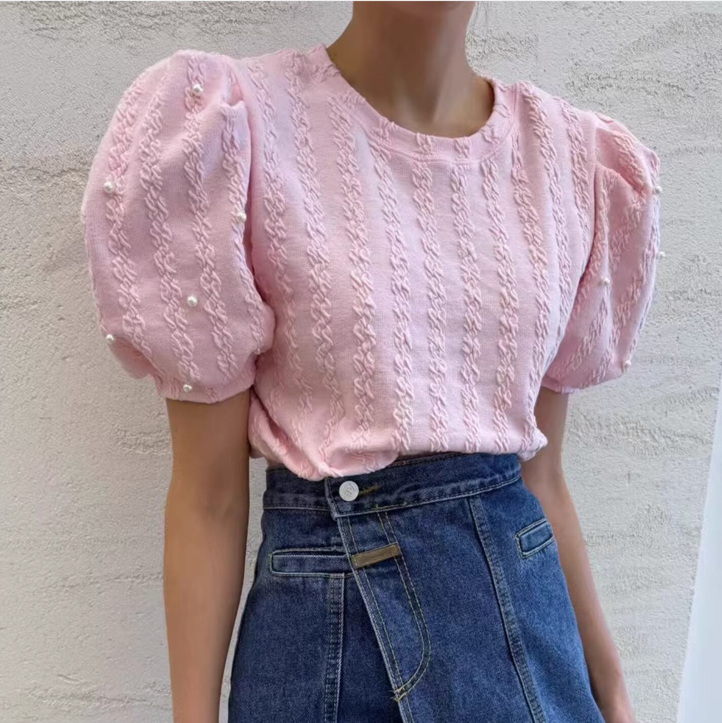Pearl puff sleeve top