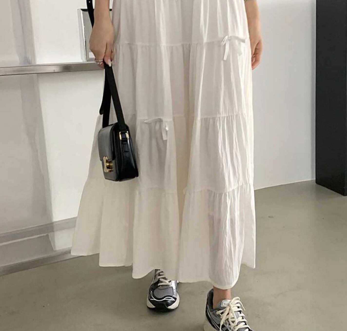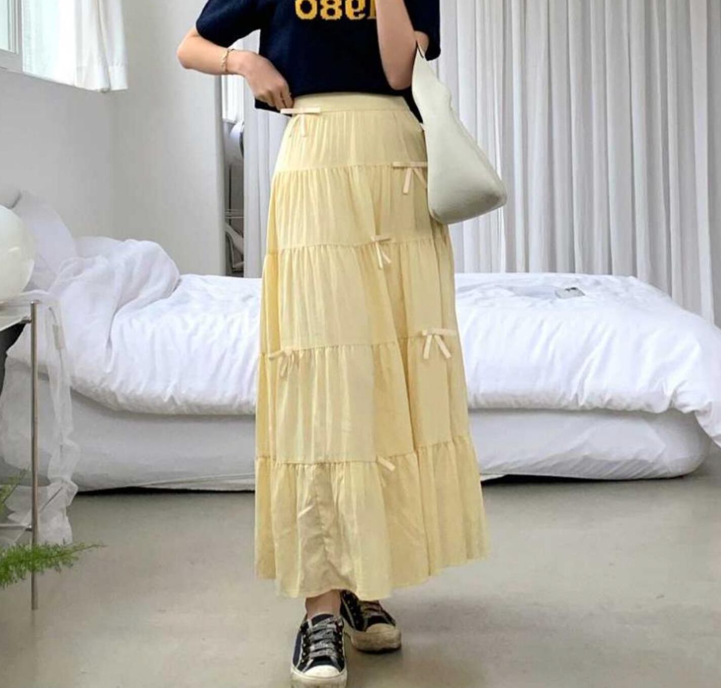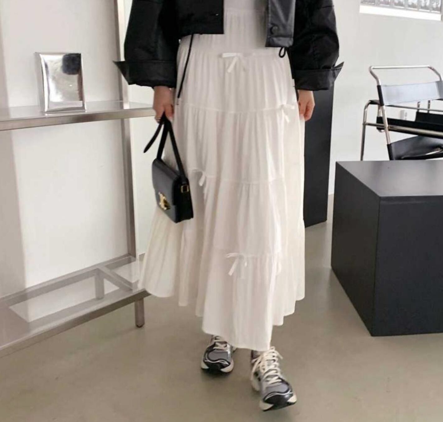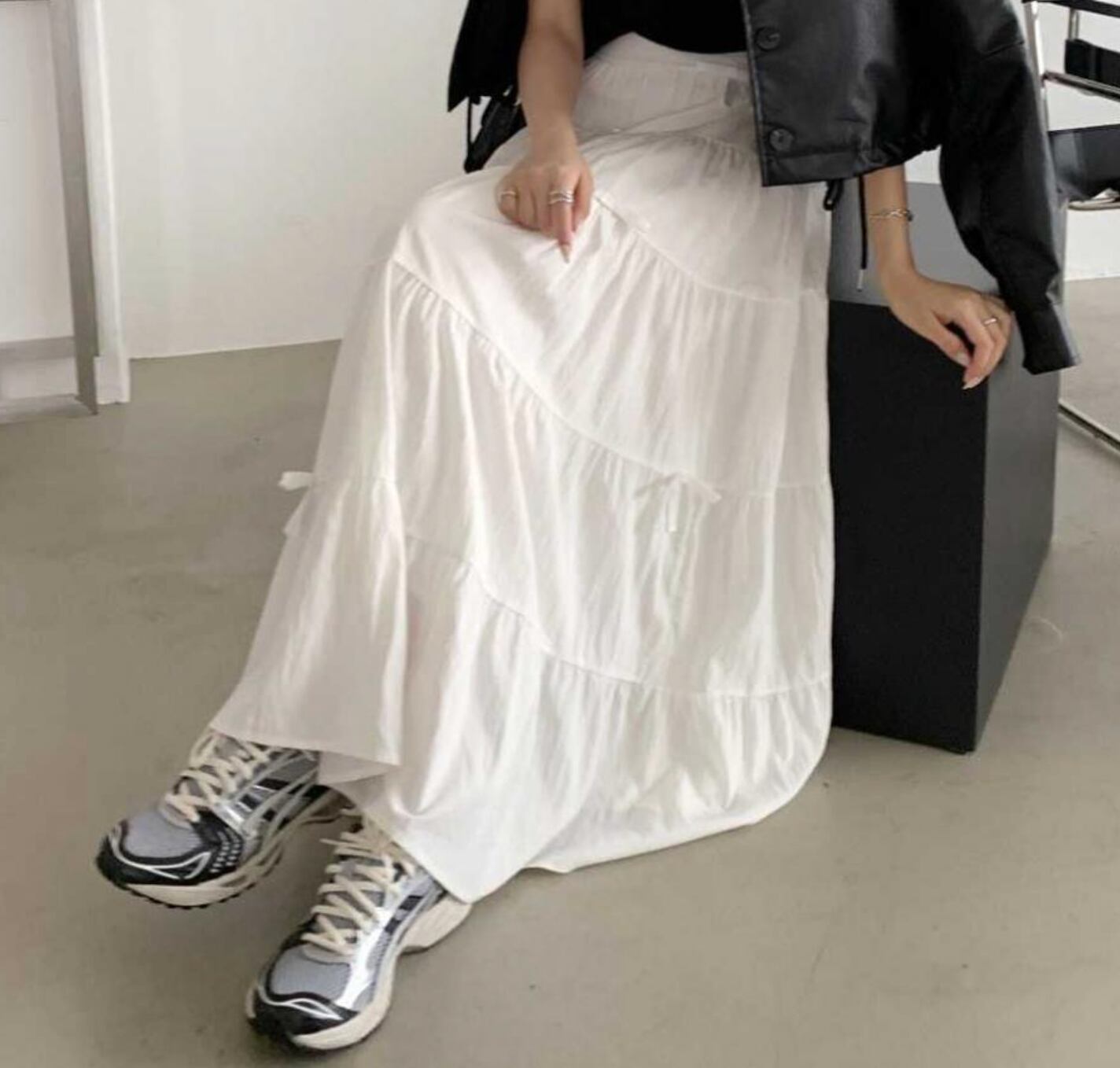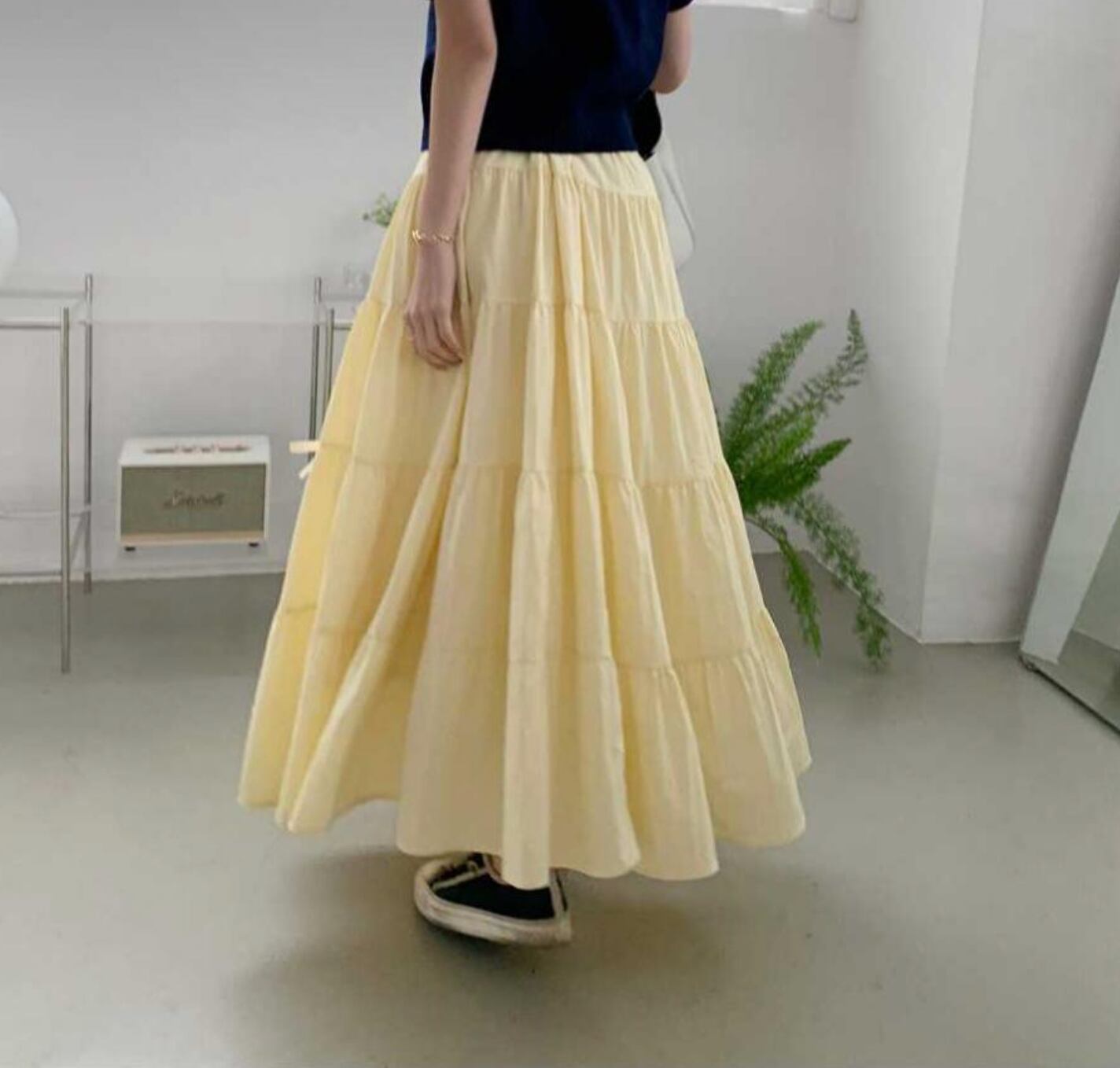 歩くたびにフワッと揺れる、フレアなシルエットが魅力のティアードスカート。