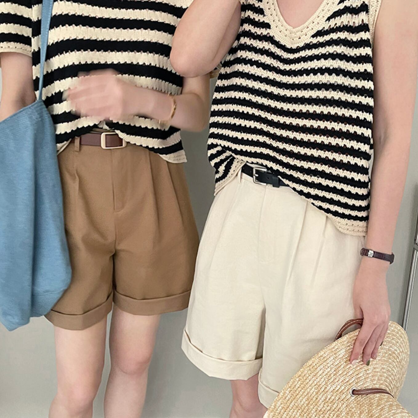 短すぎず程良くゆとりがあり、大人が穿きやすいデザインに仕上げたハーフワイドレッグショートパンツです。裾にかけて少し広がったAラインシルエットのハイウエストデザインで、足を長く細く見せる事ができます。タック入りデザインでラフになりすぎず、合わせるトップス次第でカジュアル~きれいめまで幅広く着回しが可能です♡