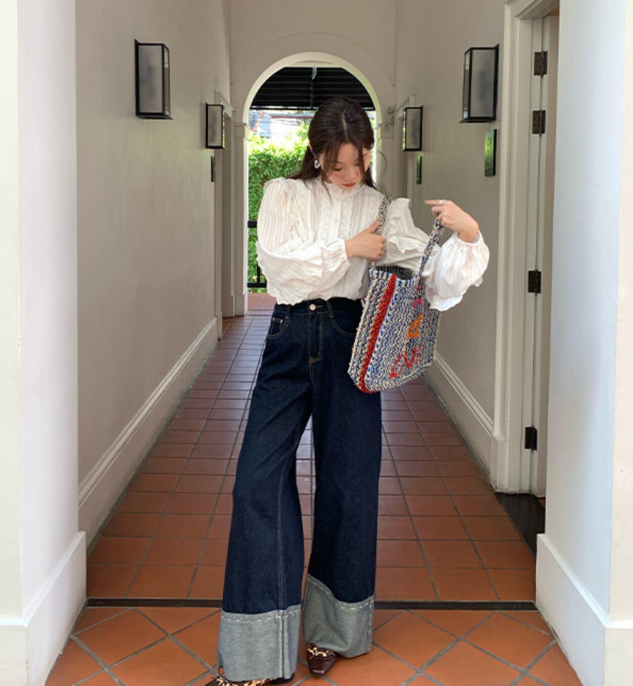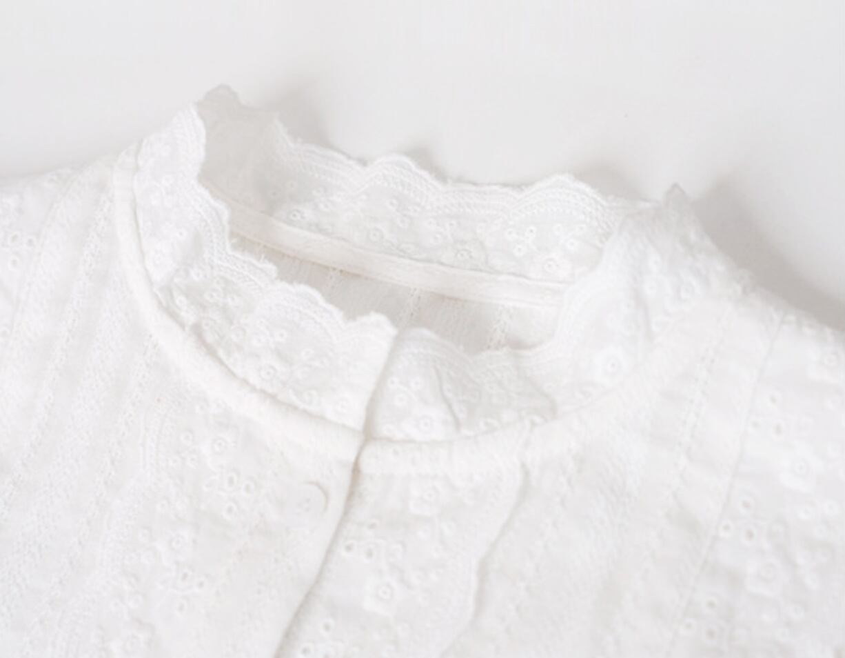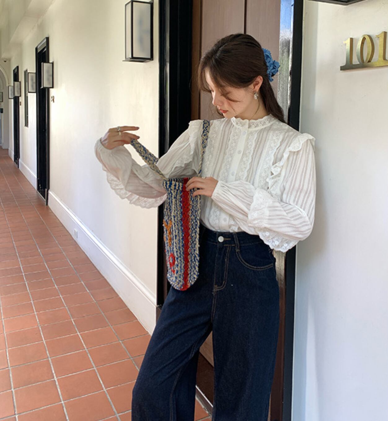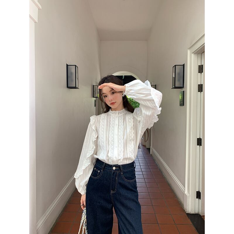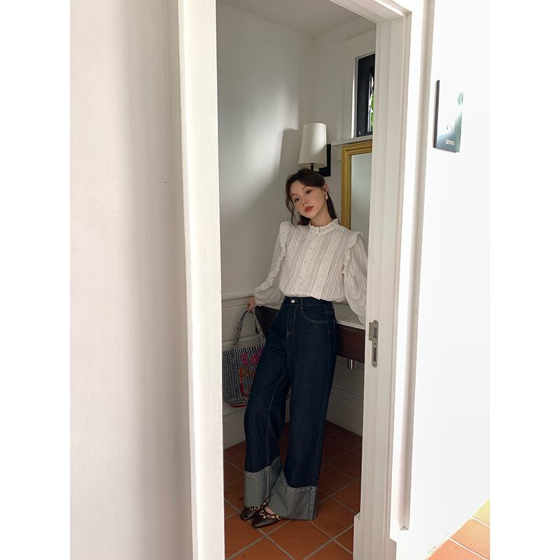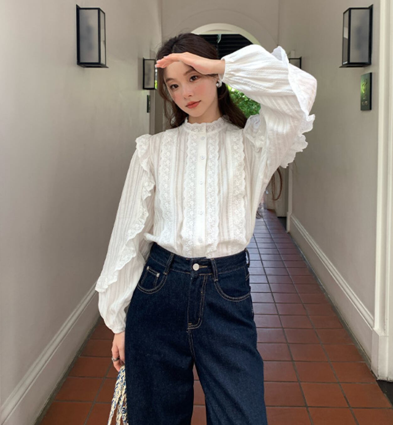 首元かた袖部分まで続くさり気ないフリルが上品且つフェミニンさを引き上げます。