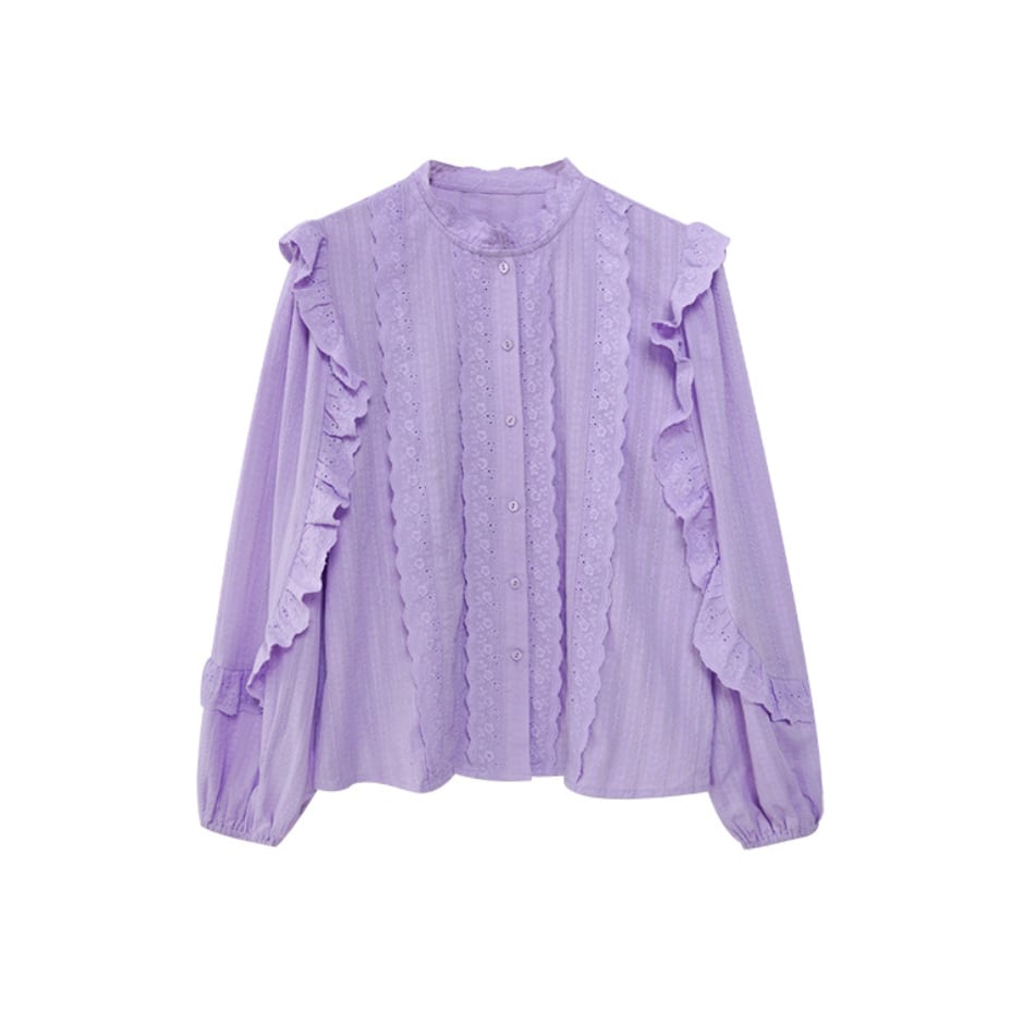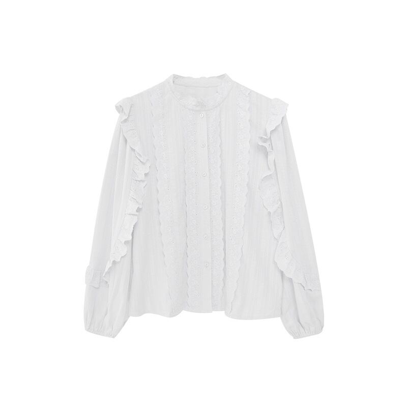 フロントにあしらわれたフリルが目を惹くブラウス。