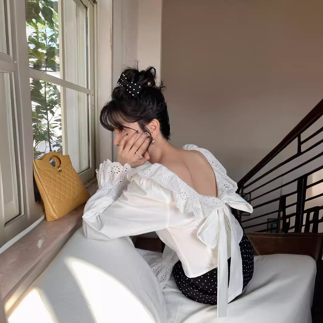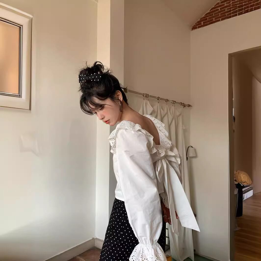 Backless frill blouse