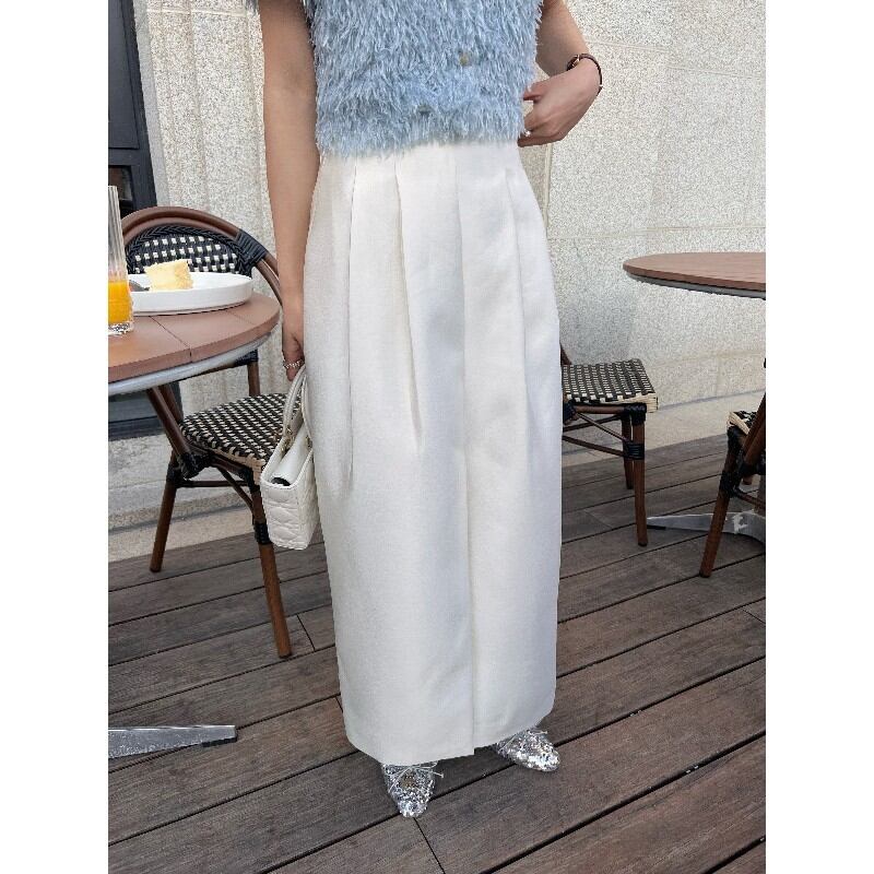 裾に入れたスリット効果でロング丈なのに足裁きが良くストレスフリーで着用いただけます。