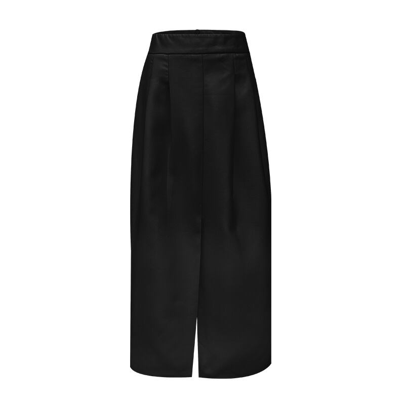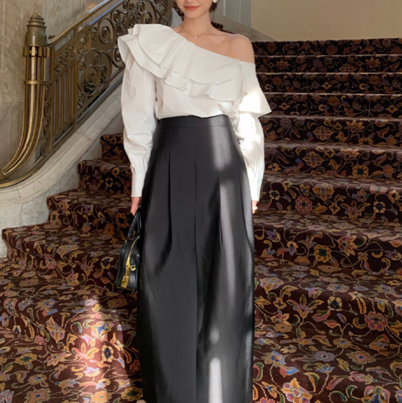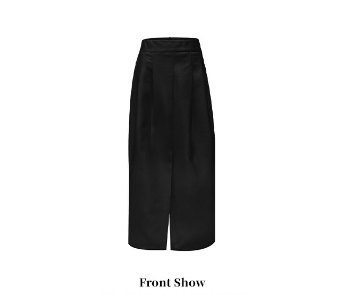 コーデにアクセントを加えてくれる上品な光沢感のサテン生地を使用した上品なタイトロングスカート。