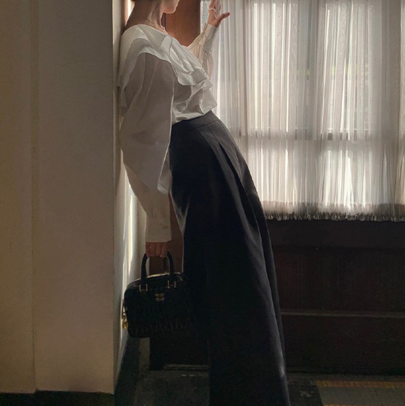 ショート丈のニットやボリューム袖のブラウスをウエストINで合わせるのもオススメです!!