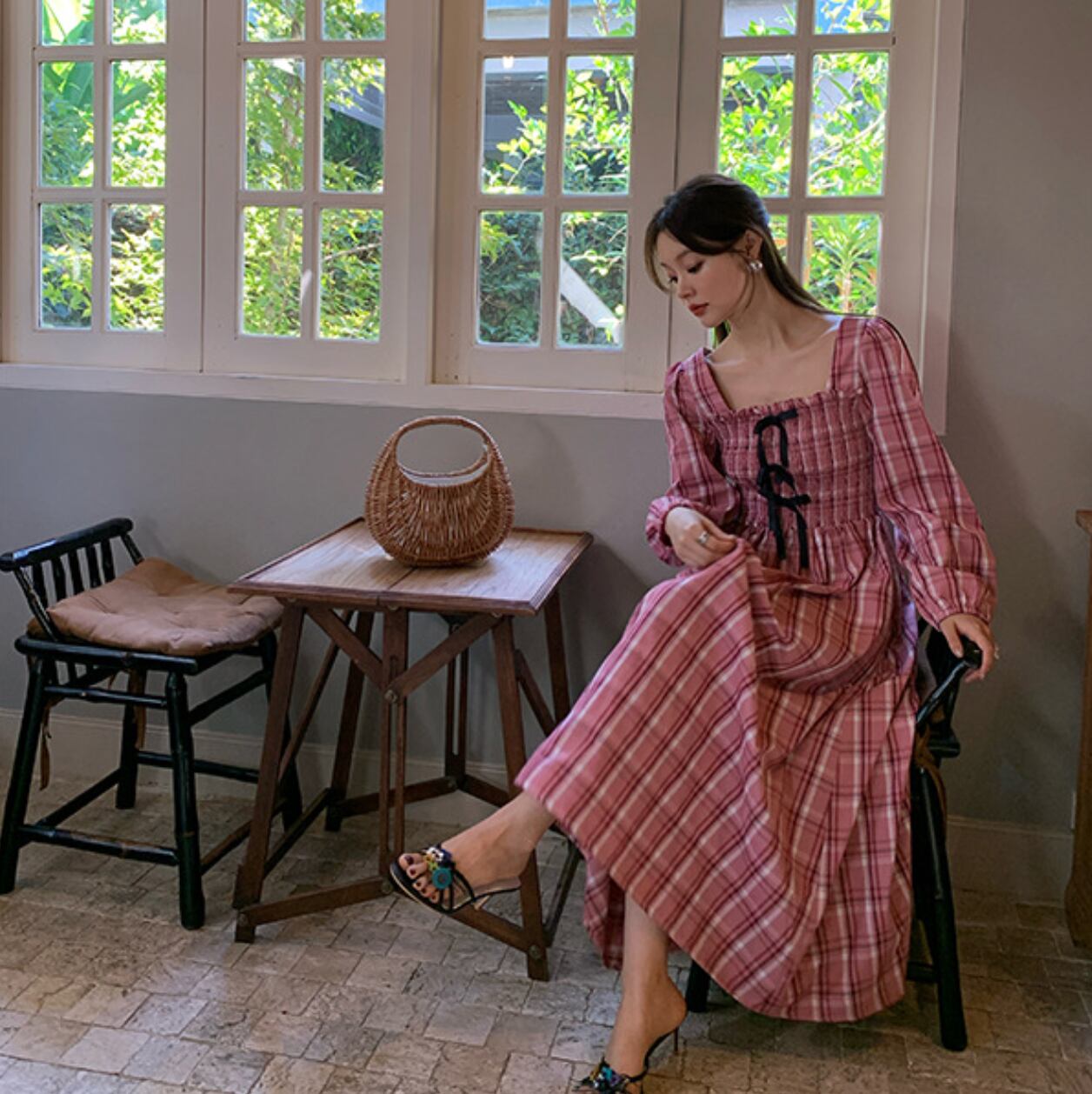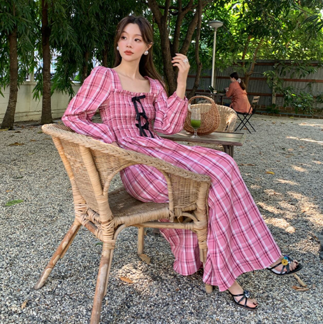 シーズンムード漂うチェック柄が目を惹くチェックワンピース。