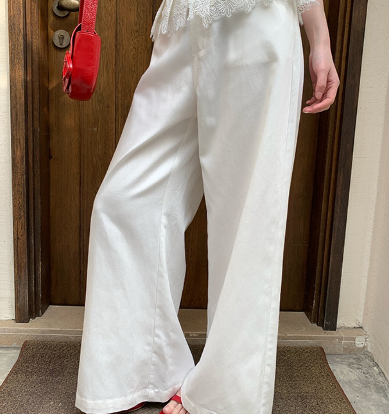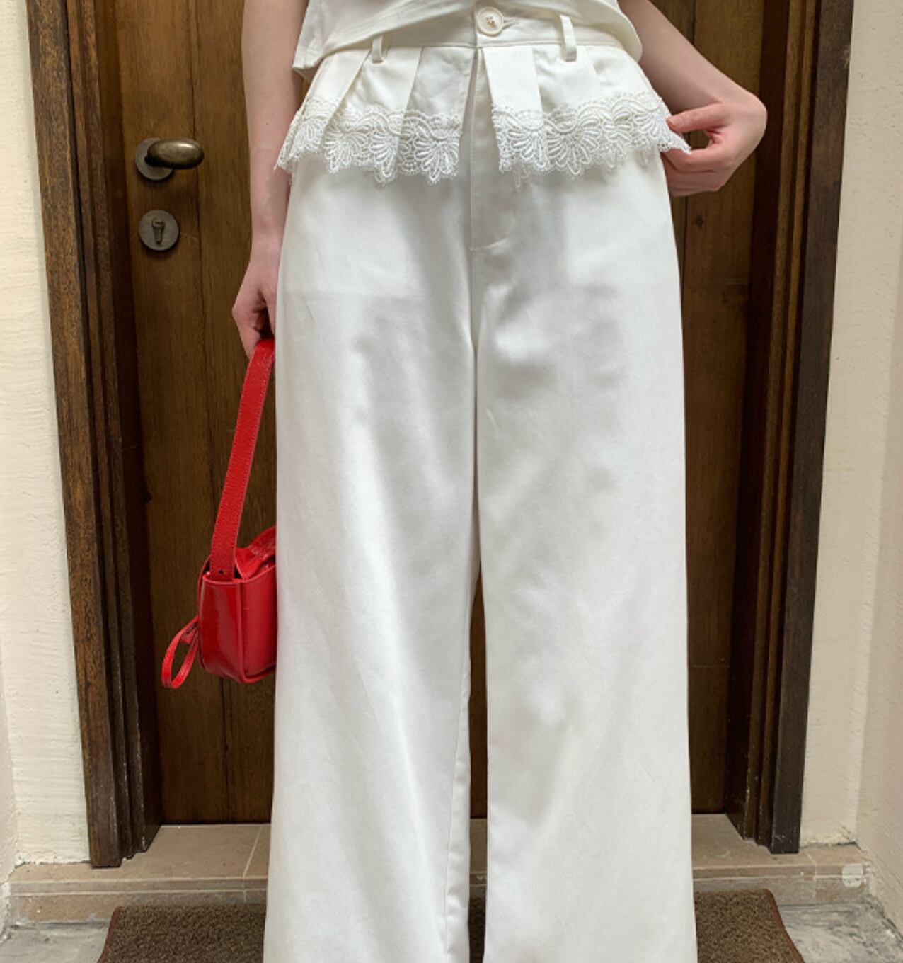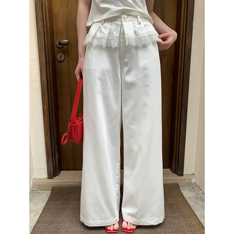 Lace wide straight pants