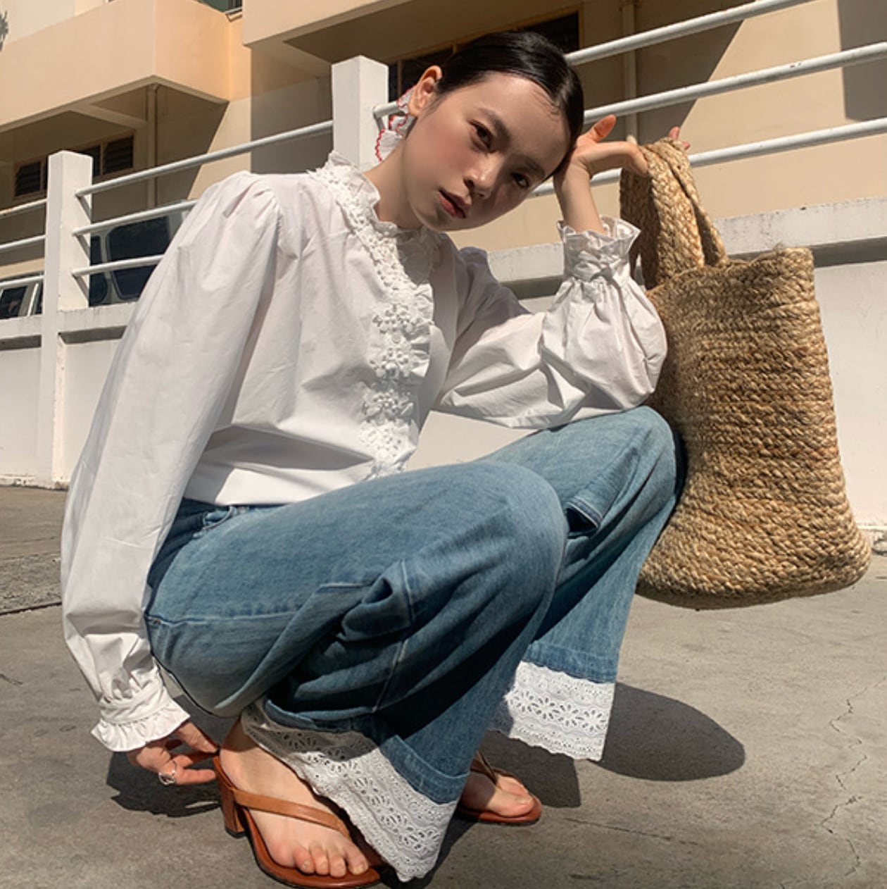 甘めのトップスと合わせることによってフレンチカジュアルなコーデになります。