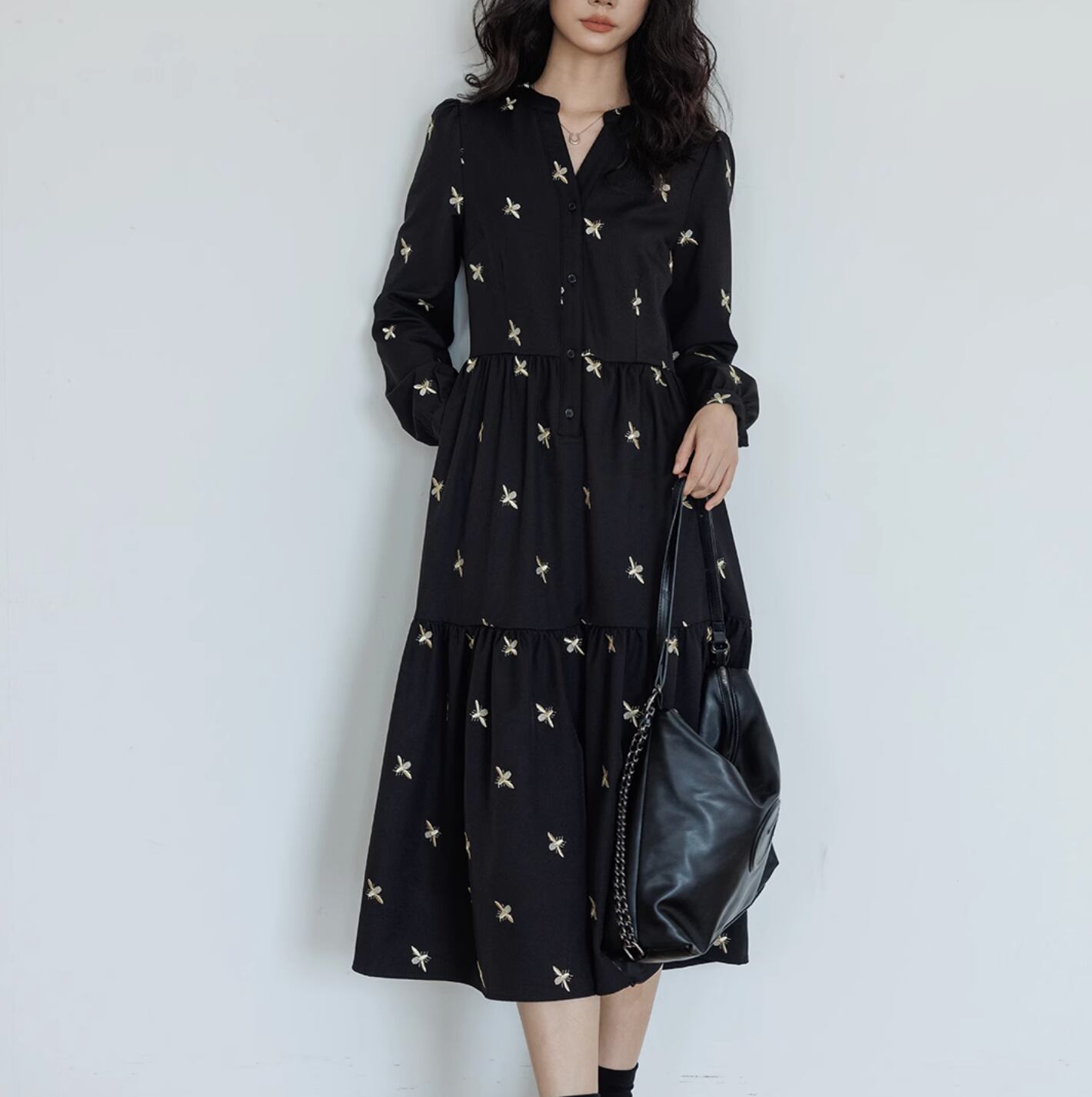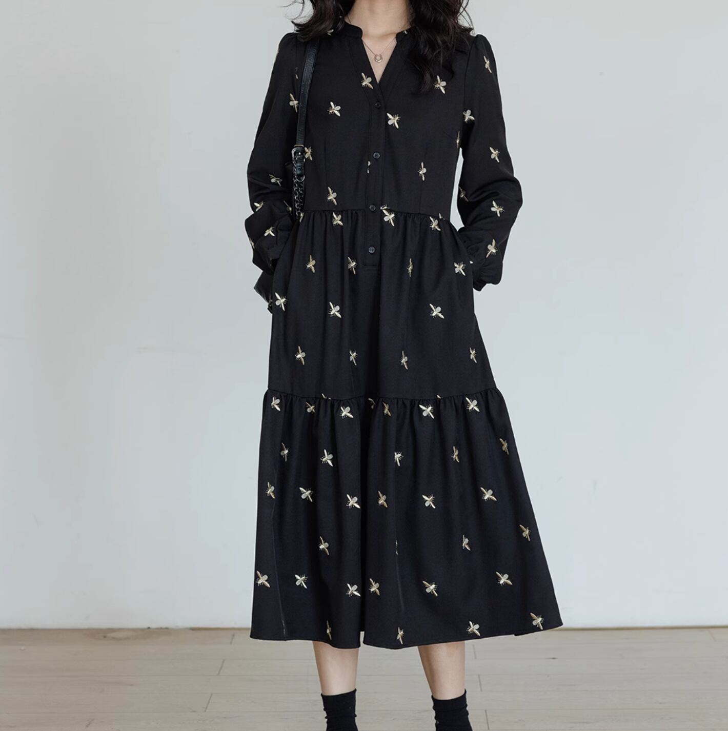 Beeデザインがポイント。冬場にはロングコートの下に、春先には一枚着てもカーディガンと合わせな等とても可愛く着て頂けます♡