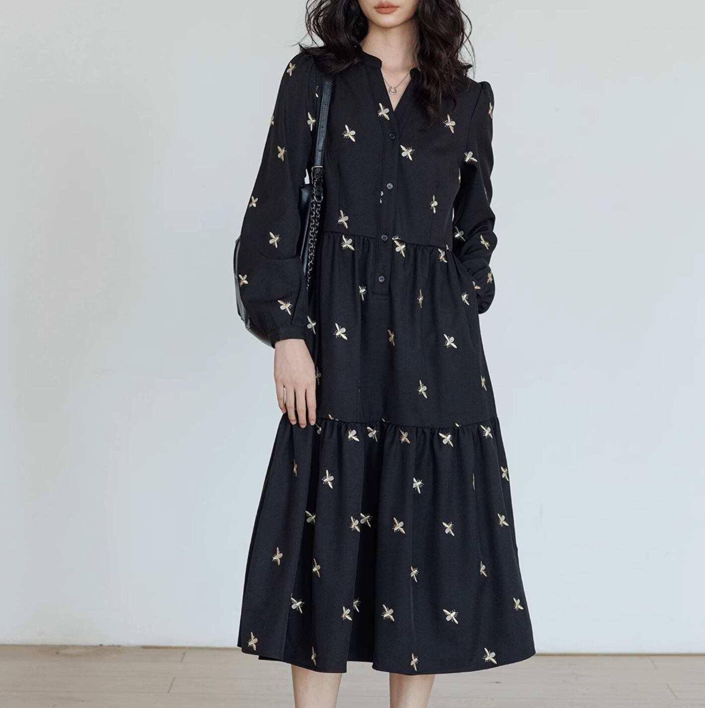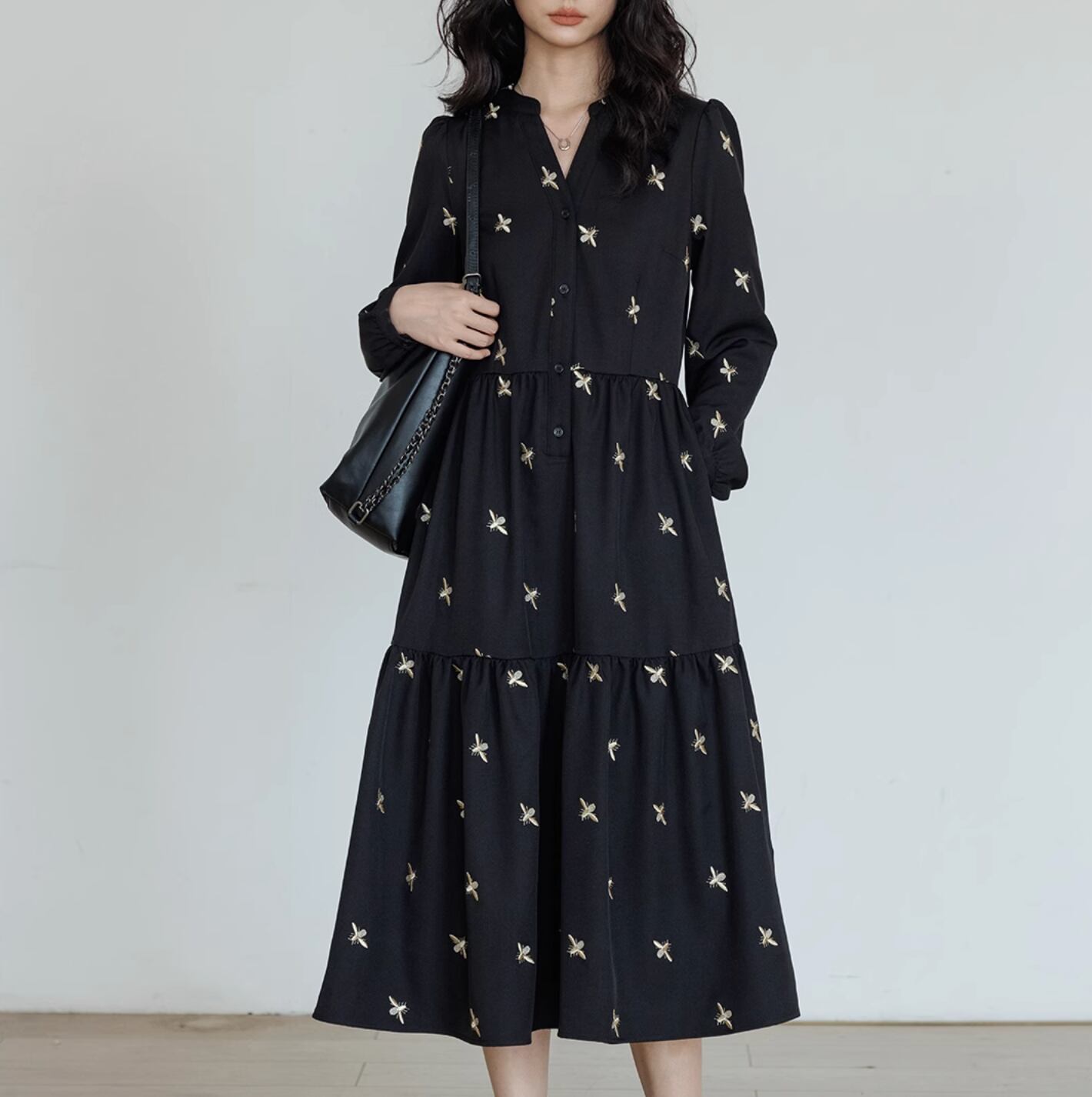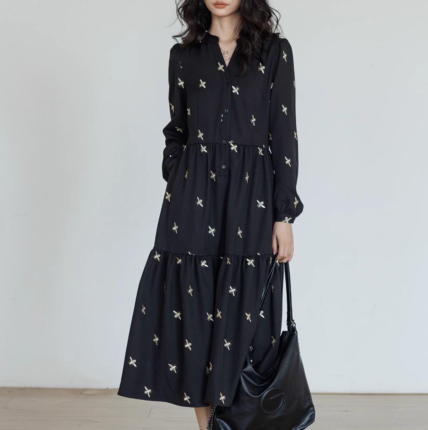 ボリュームの出るシルエットに、綺麗めで上品なワンピース。ティアードになっているので、ふわっと靡くシルエットがとても可愛いんです。