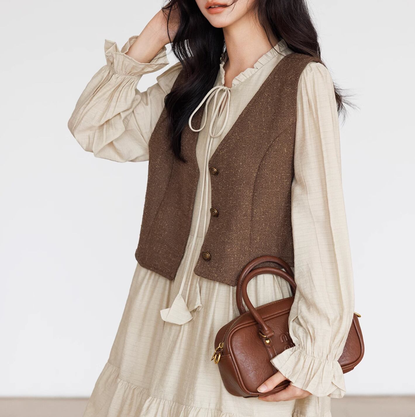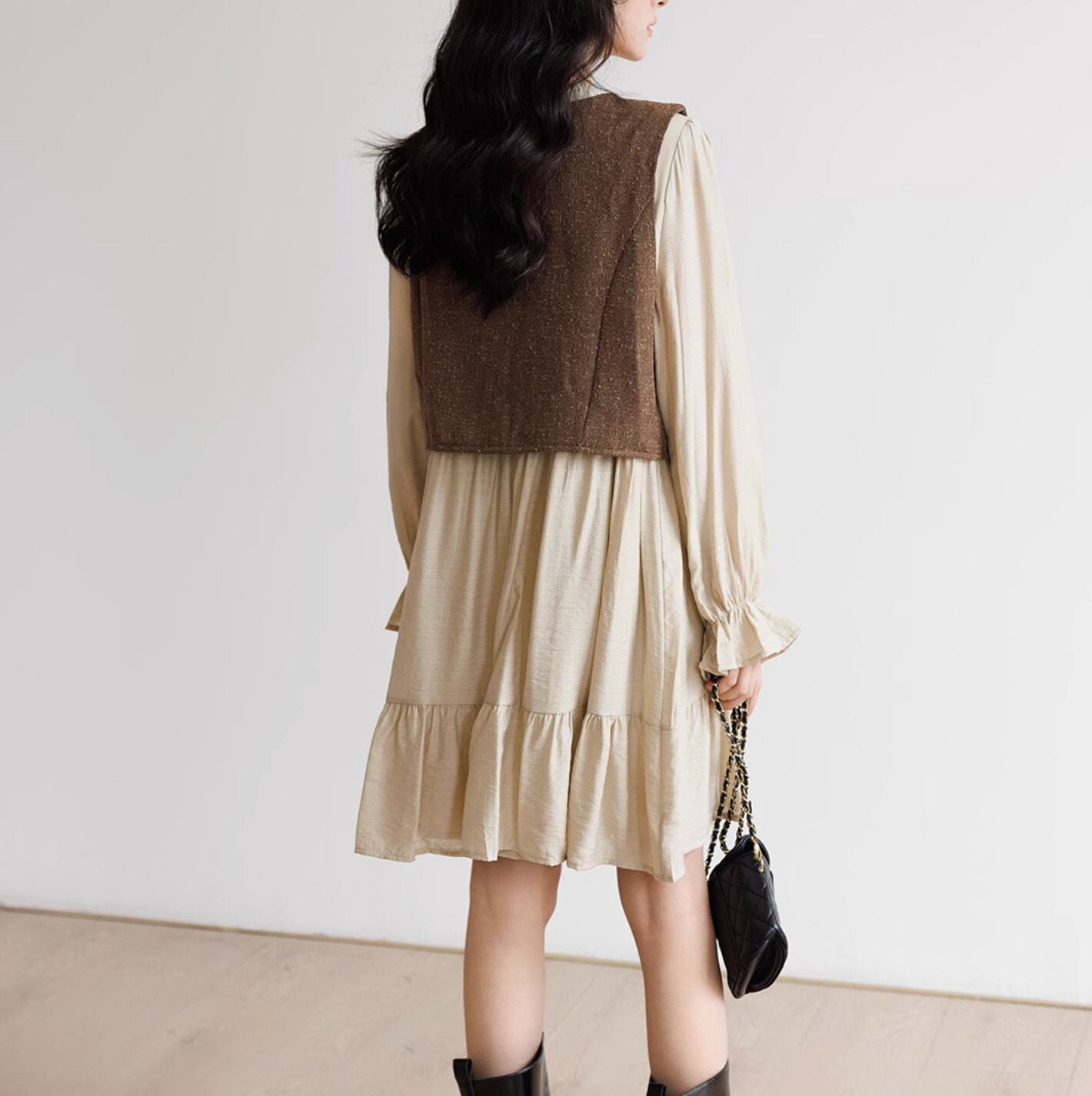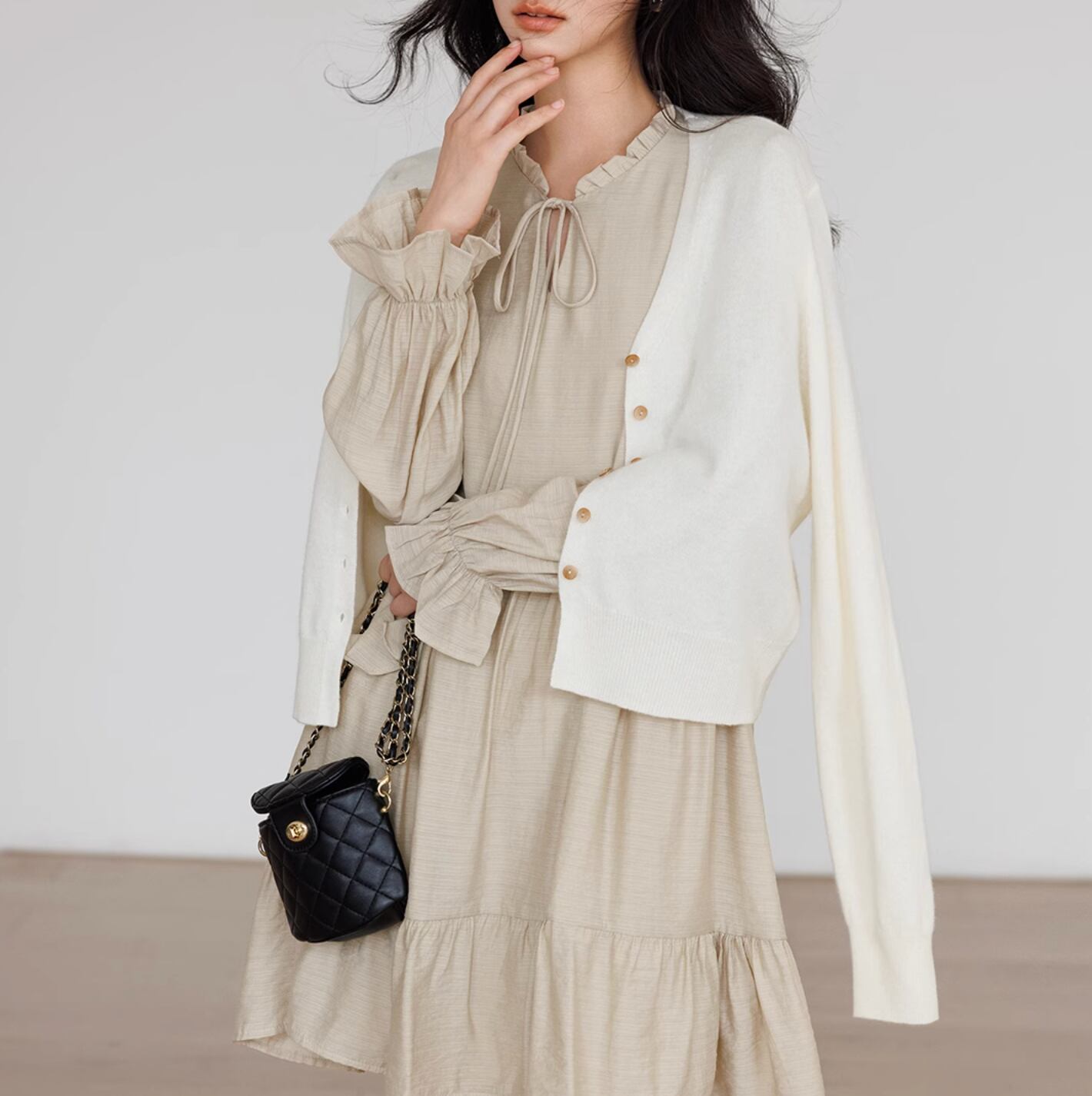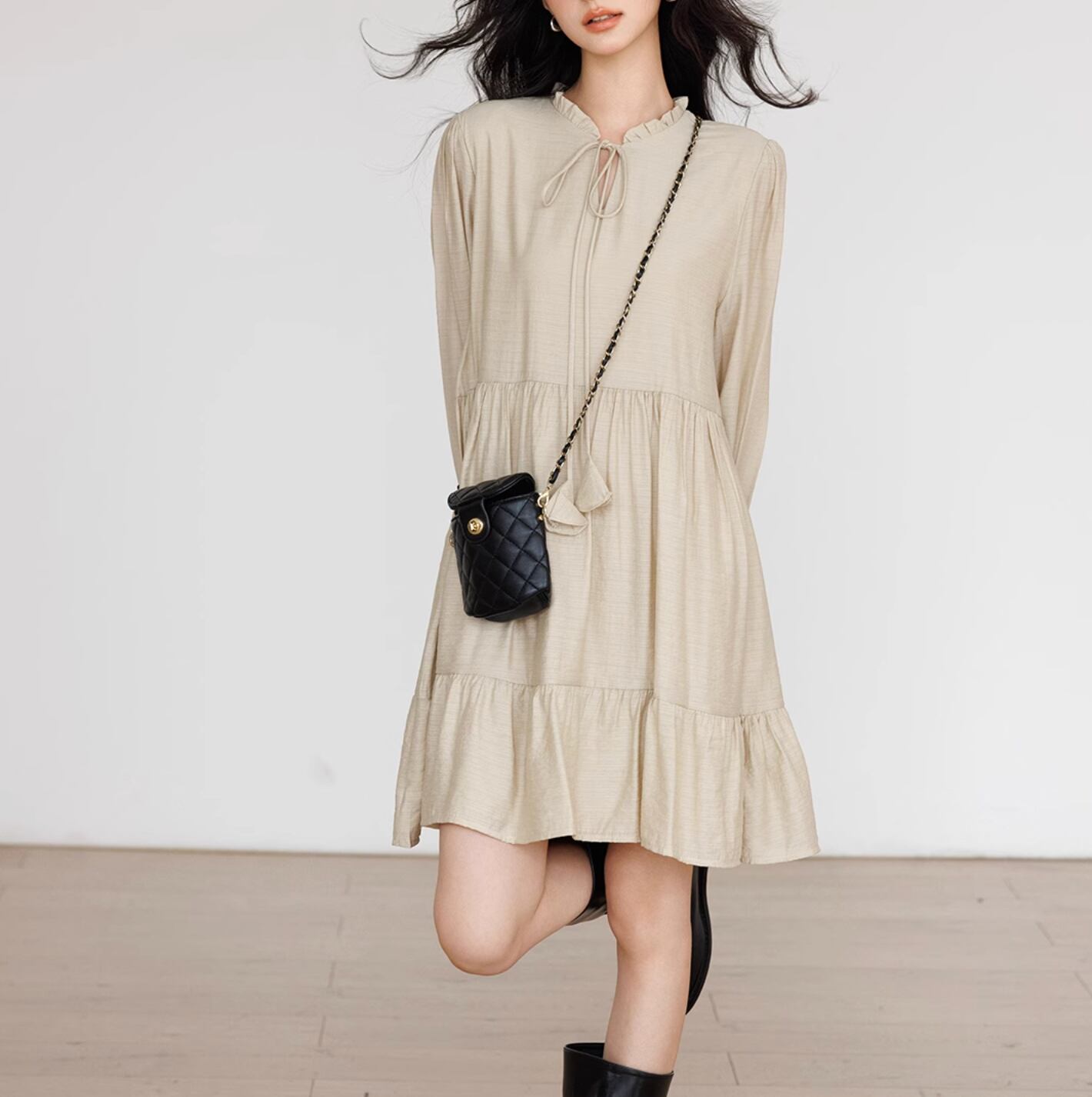 身体から離れるシルエットで、ストレスなく着用できます。ミニワンピースとしても、テーパードパンツやデニムと合わせても、着回しが楽しめます。