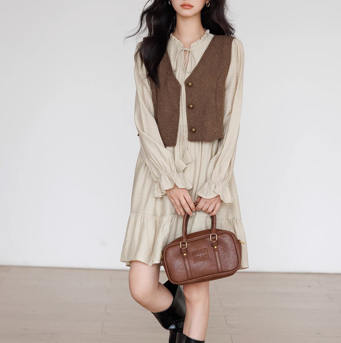 【Loose fit mid-length dress】