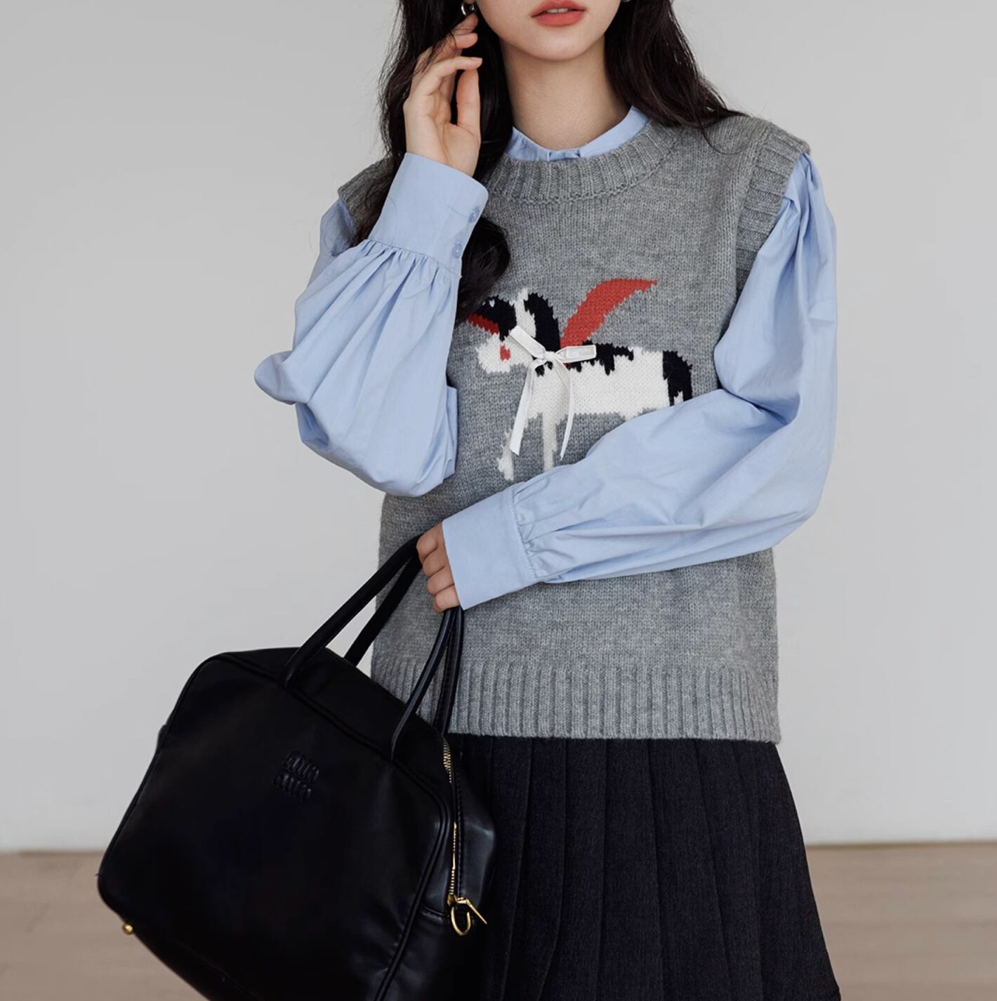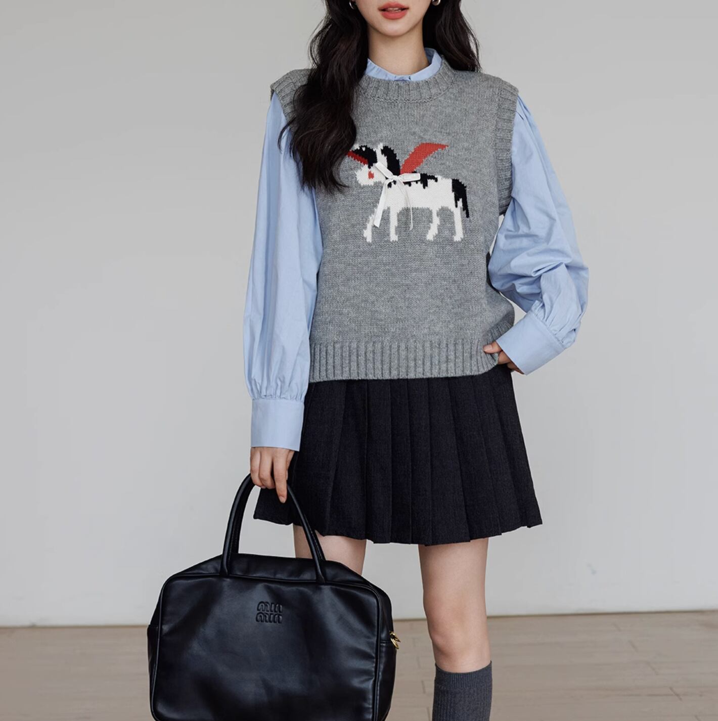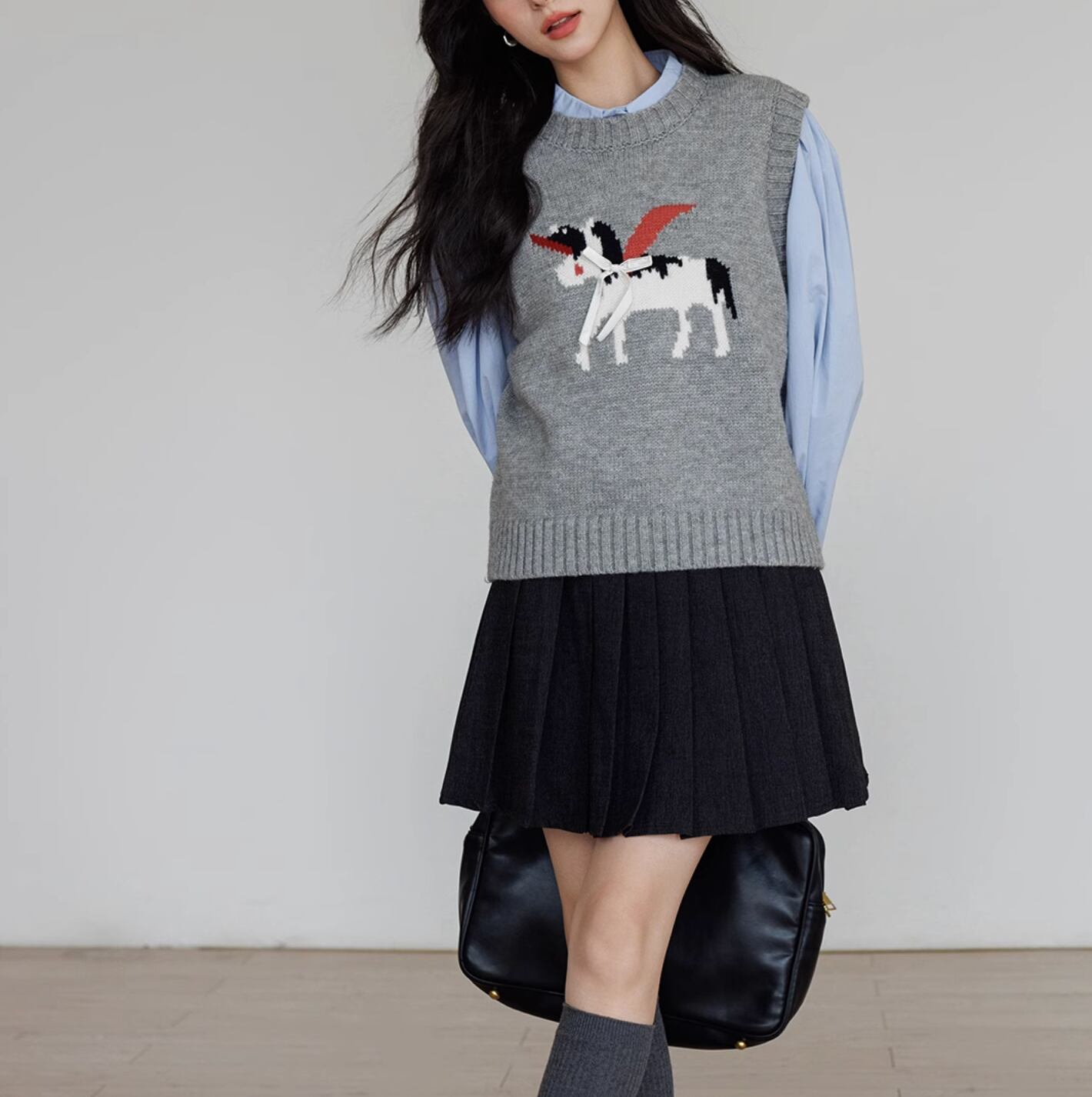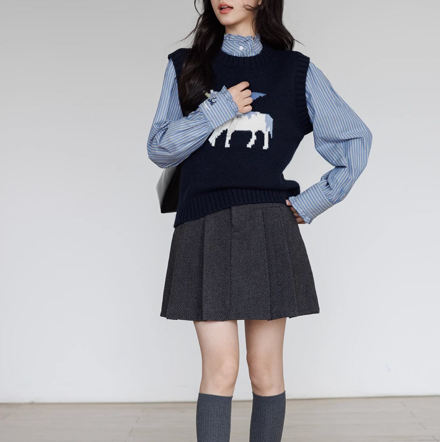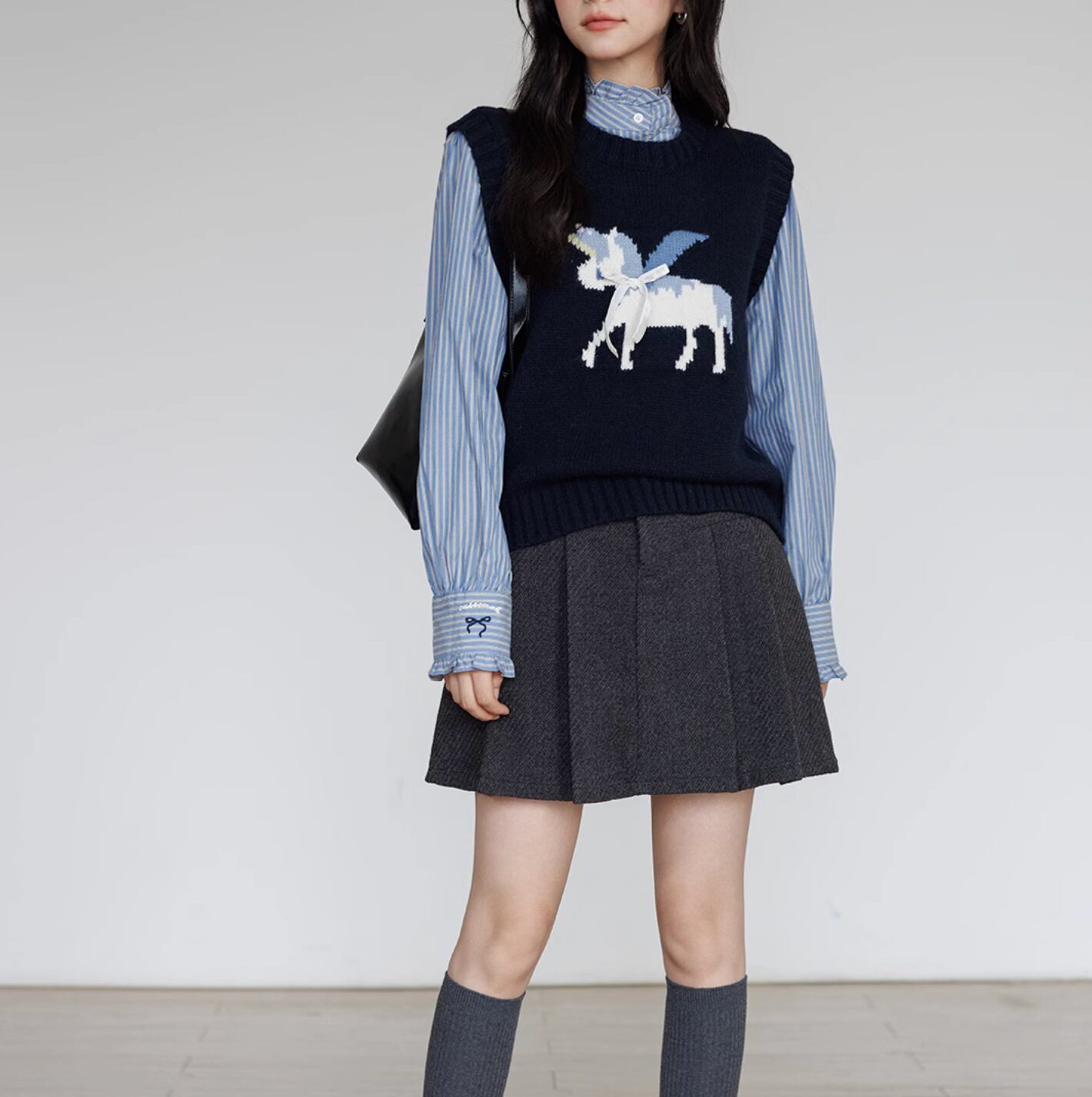 ペガサスのモチーフが施された、柔らかいニットベスト。シンプルなデザインにワンポイントモチーフが目を引きます。リボンのアクセントもとってもキュート。