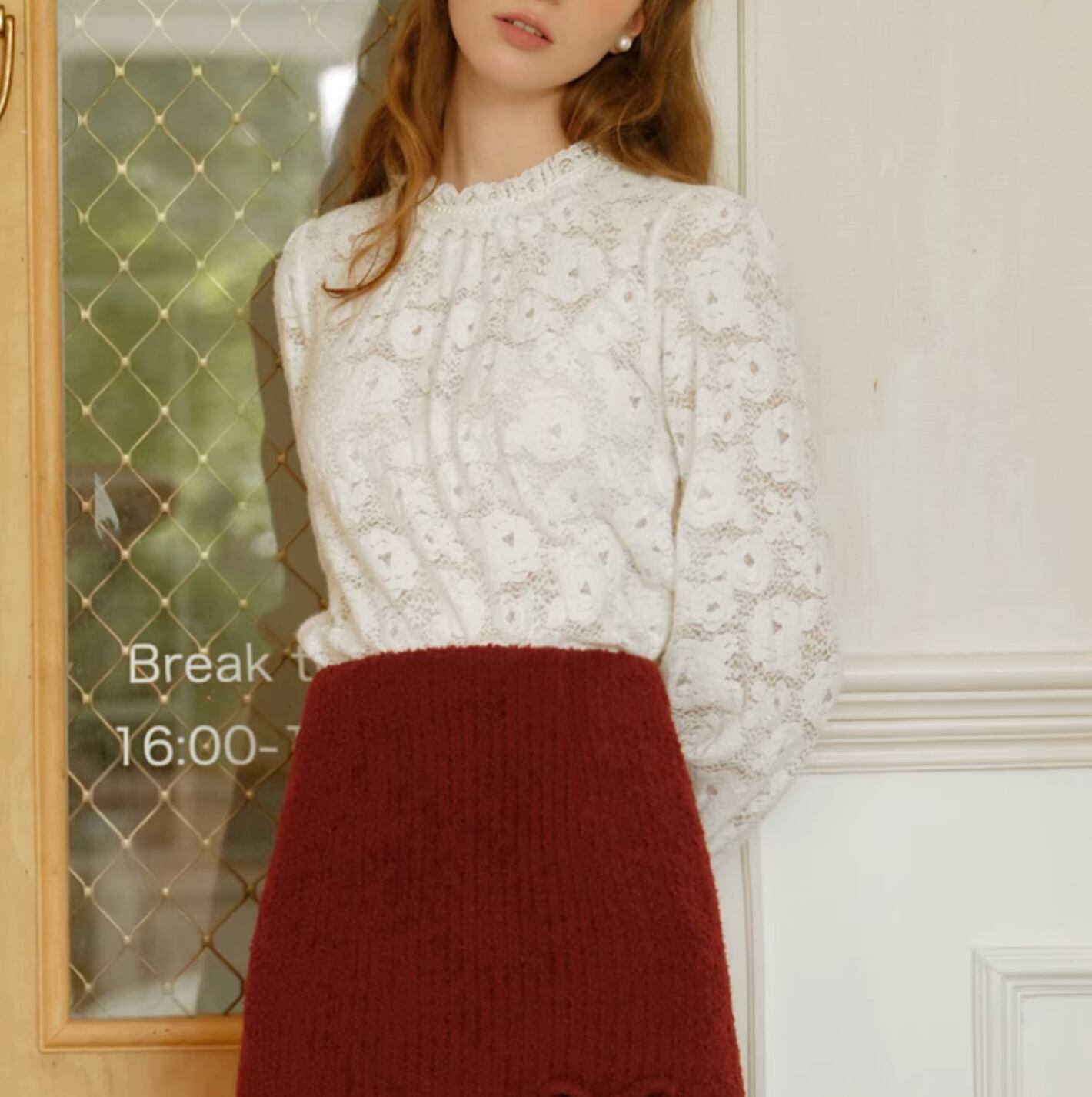 フラワージャガード長袖ブラウス。インでもアウトでも様になります!繊細な透け感が女性らしさを引き出し、可愛らしい印象を与えてくれます!