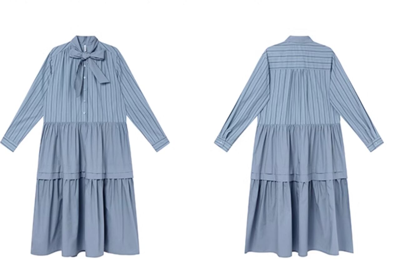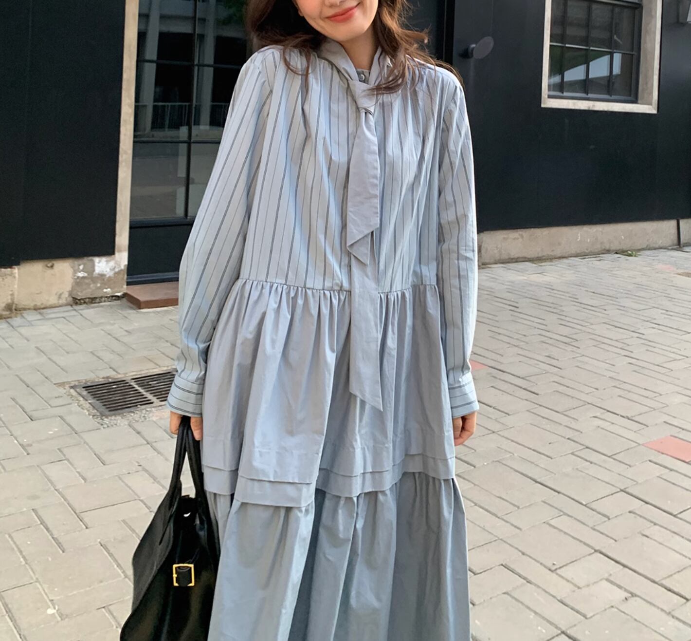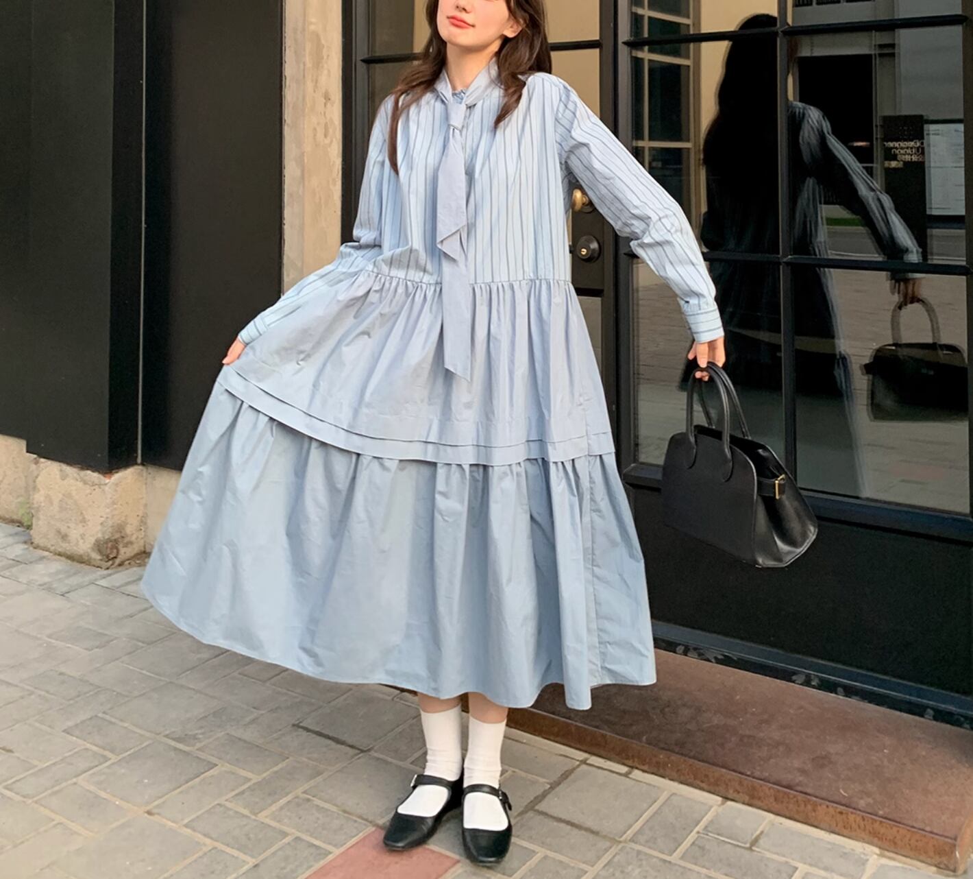 首元のリボンとティアードスカートでかわいらしい雰囲気に仕上がります。