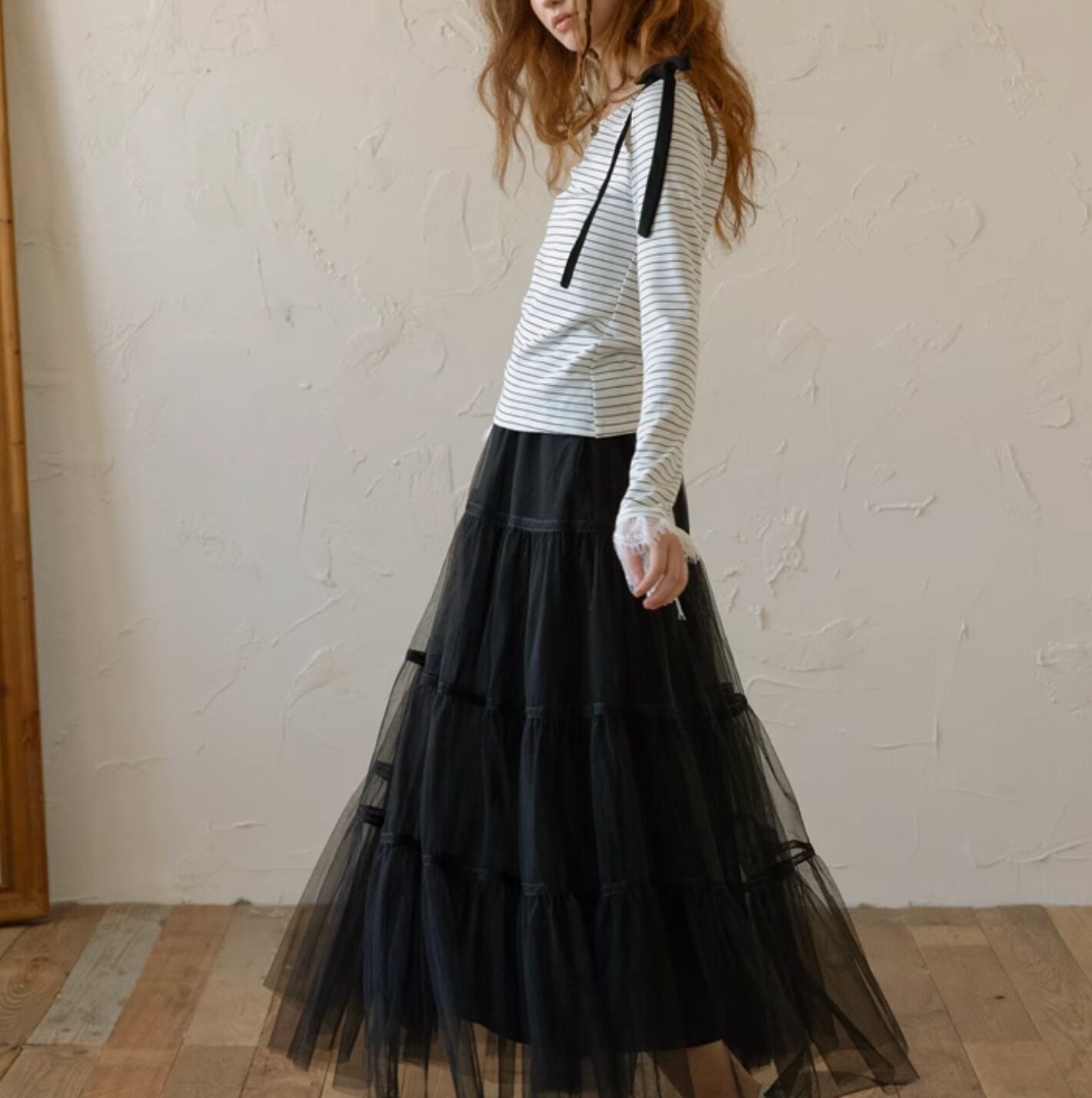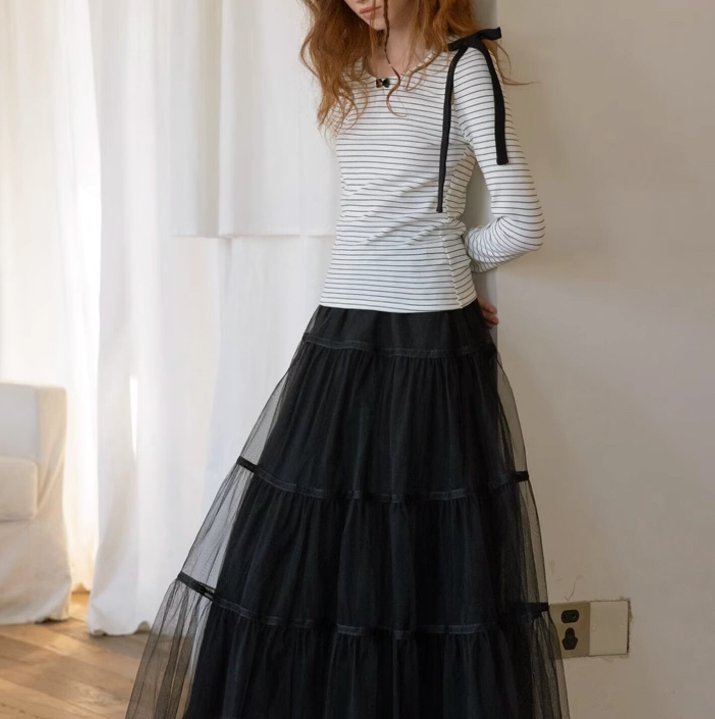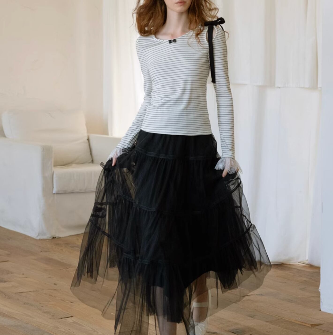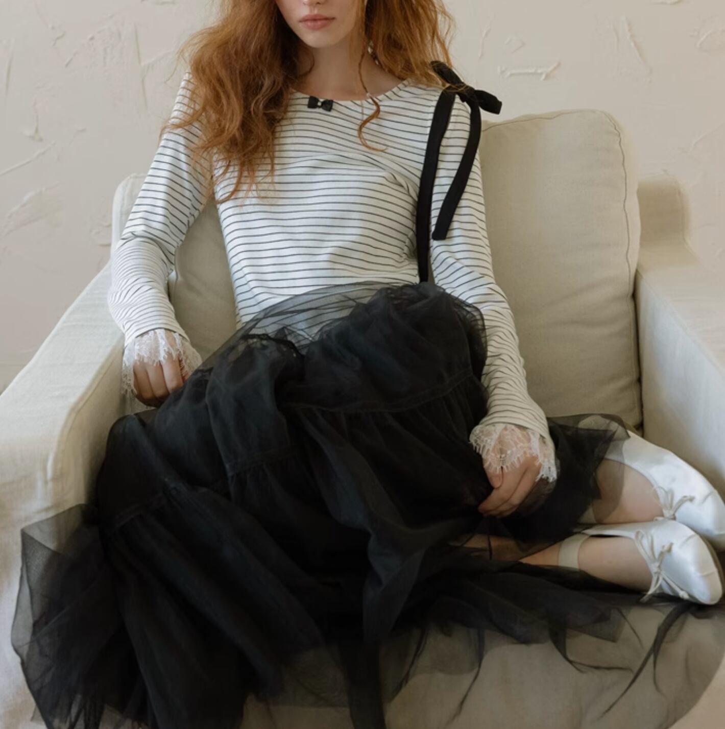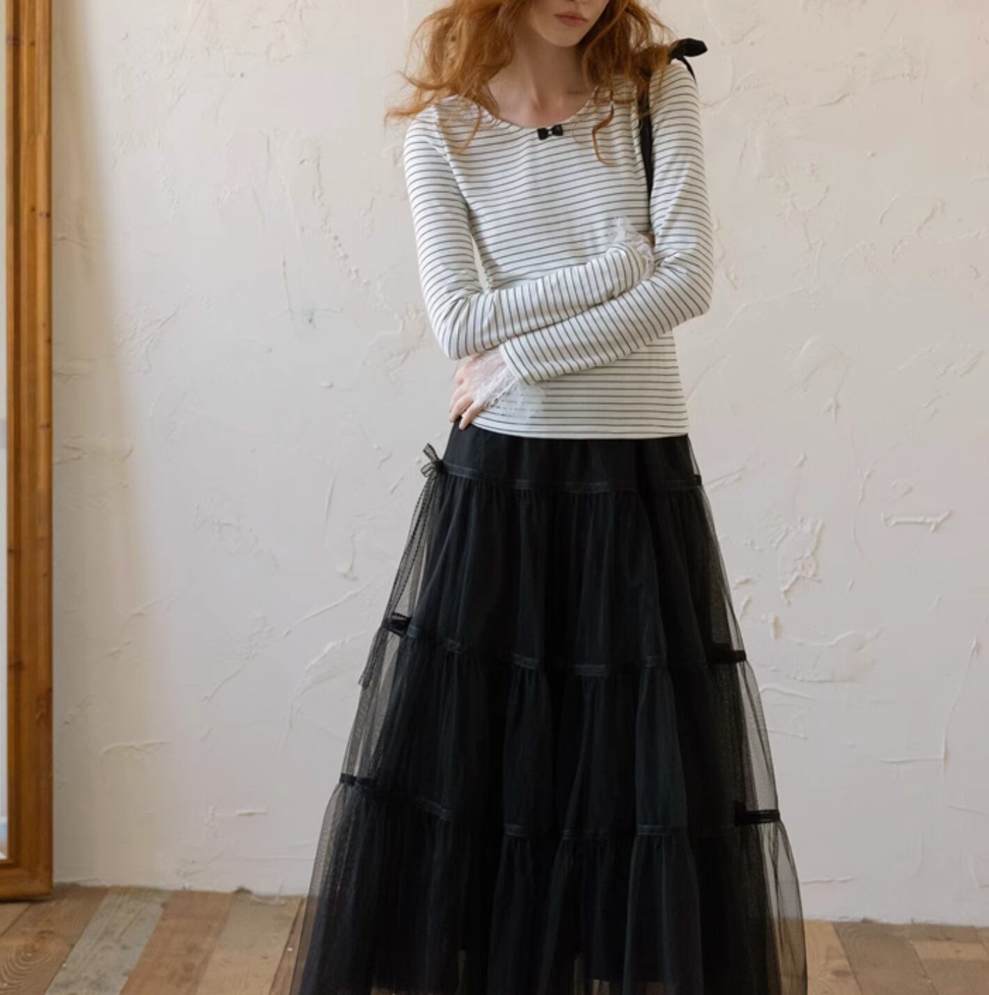 カジュアルなボーダーパターンのトップスにさりげなくリボンがあしらわれた長袖トップス。大人っぽいコーデだけでなく、レディライクなコーデにも合わせやすいため、オールシーズン着回しいただけやすいアイテムです。胸元にある小ぶりのリボンがキュートで女性らしく、華やかさも演出してくれます。