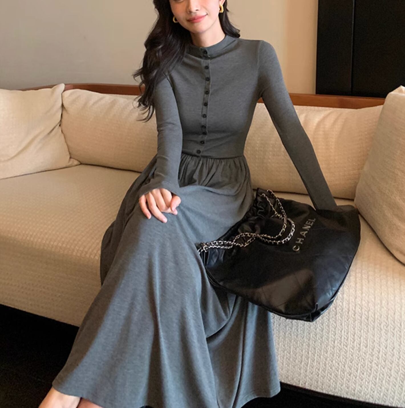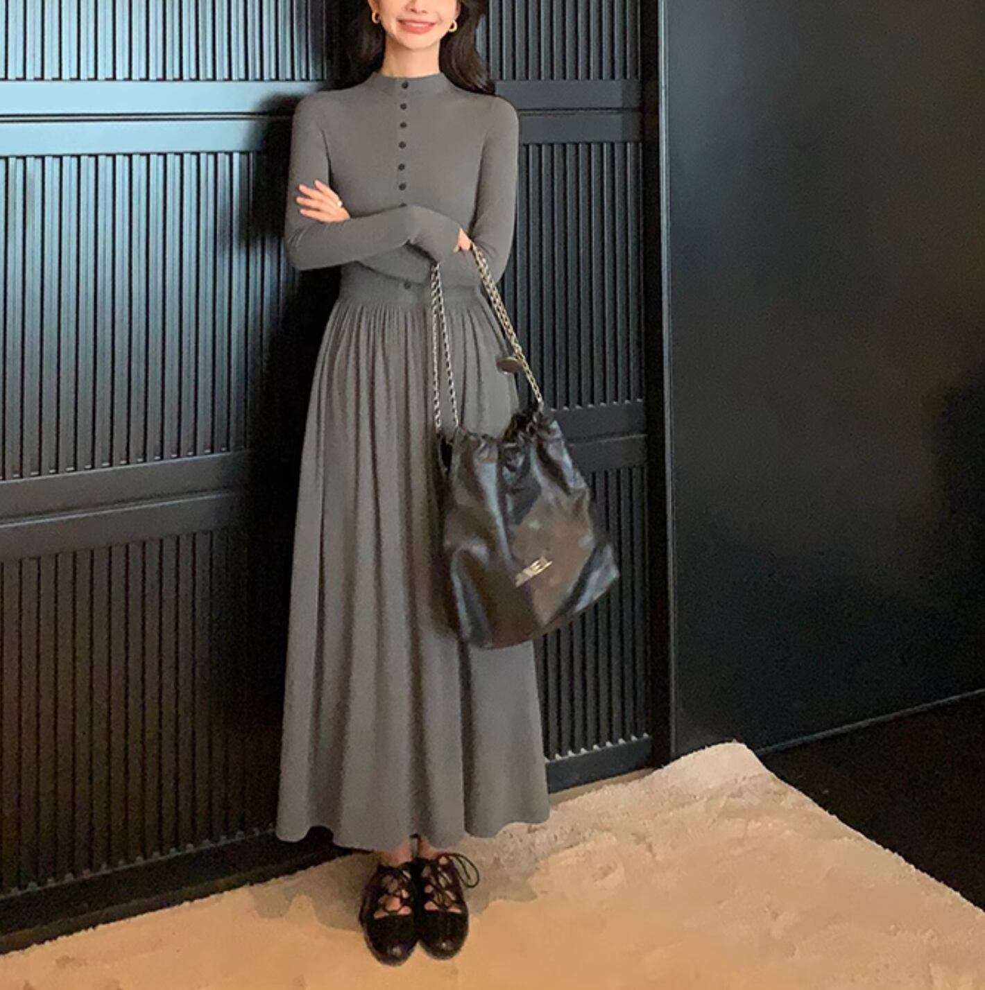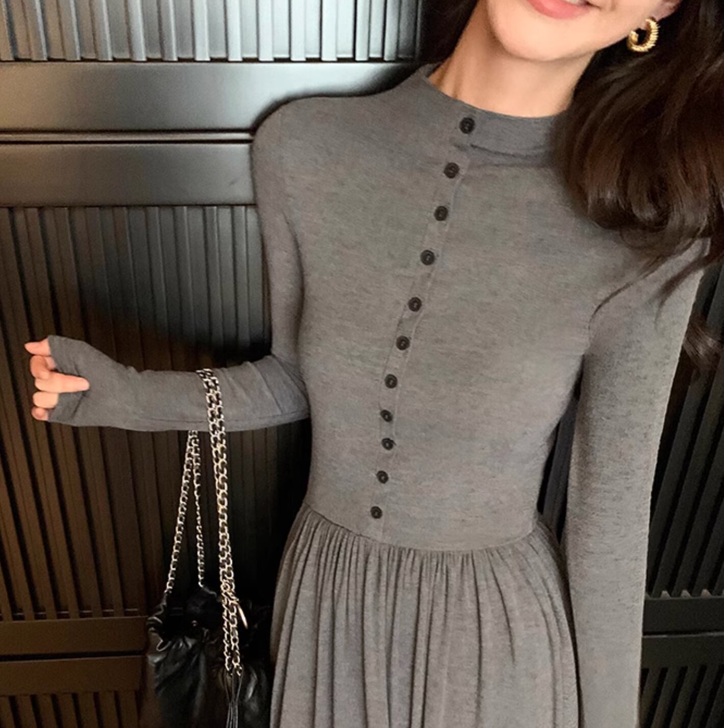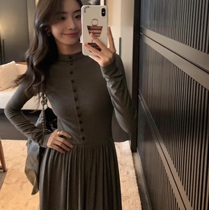 フロントボタンにすることで美しいラインとデザイン性をプラス。シンプルだからこそ、アクセサリーやバッグ、アウターなどを楽しめる万能ワンピースです♡