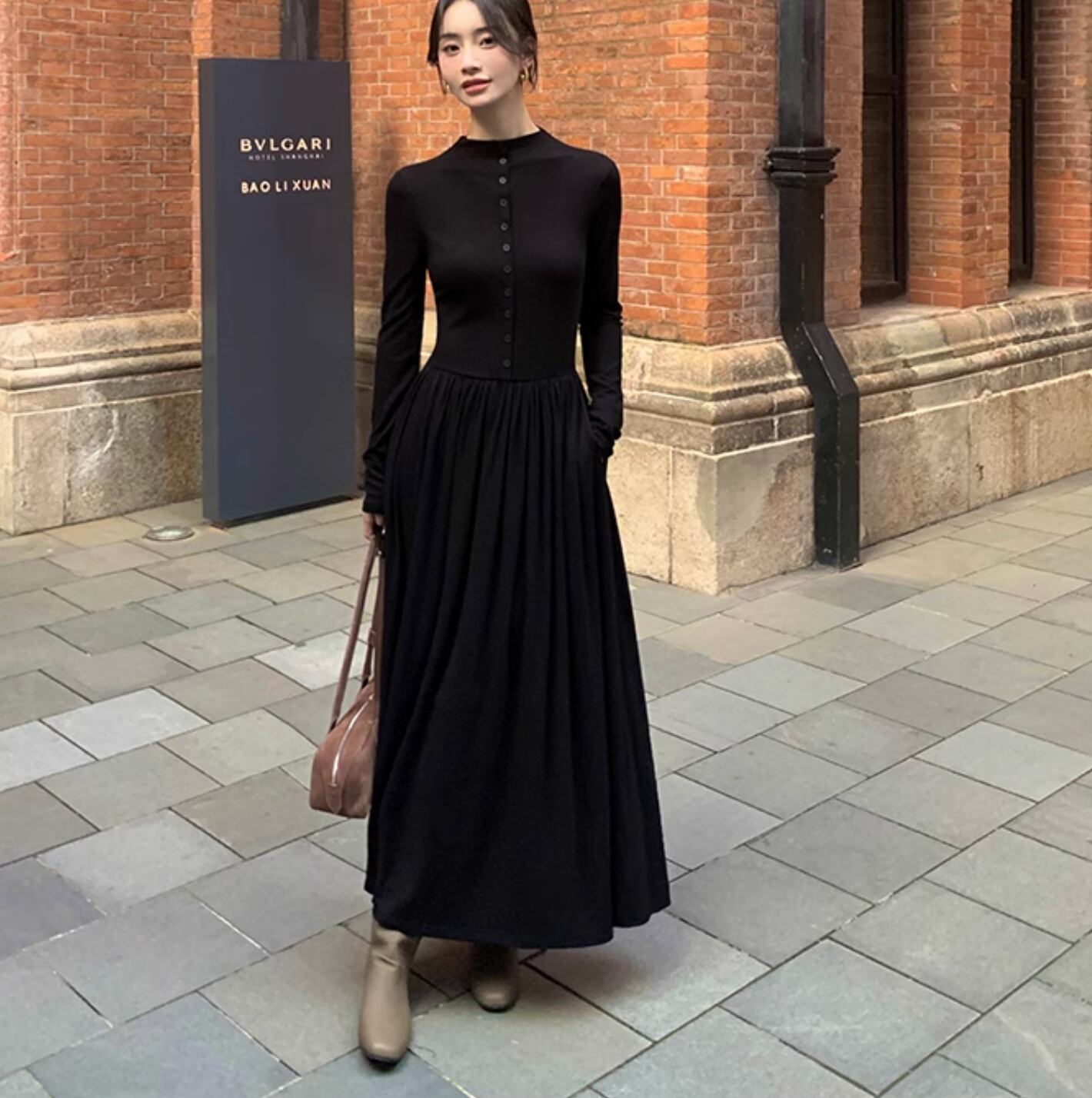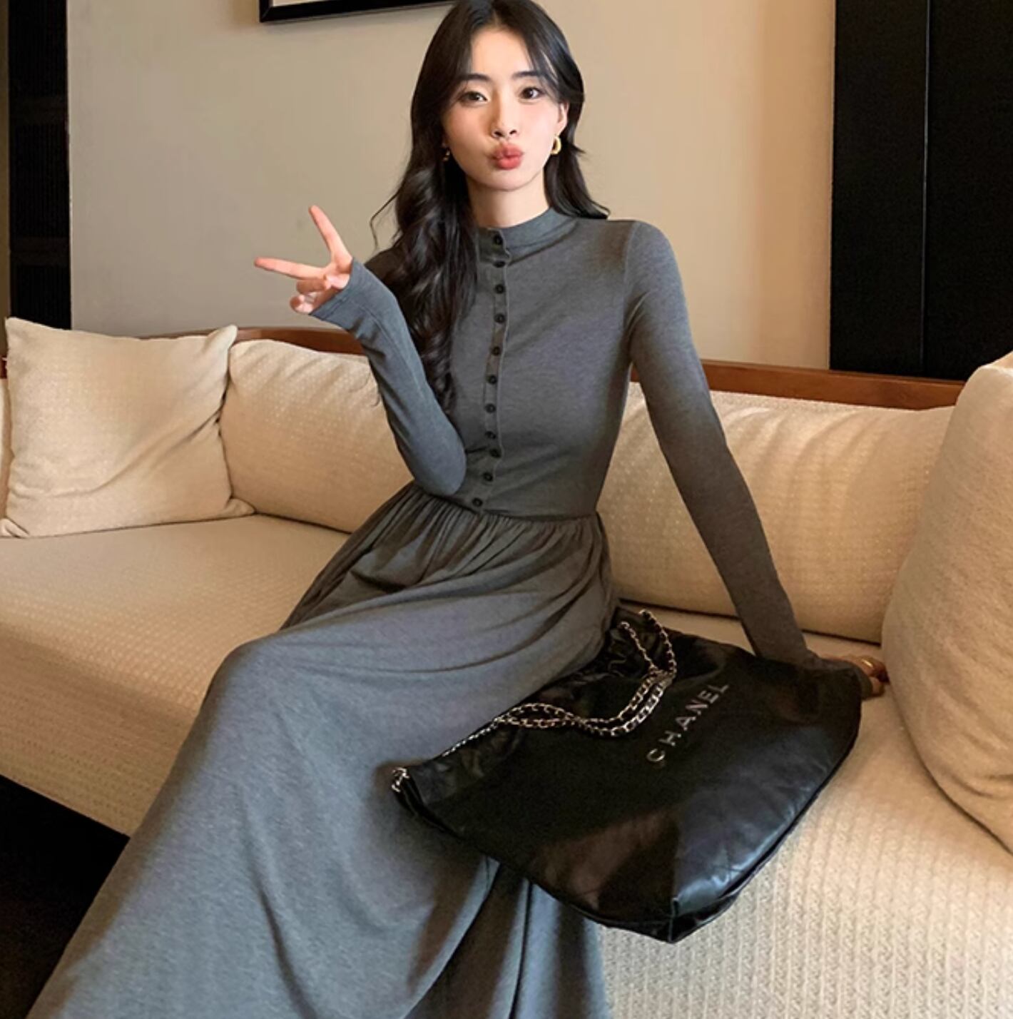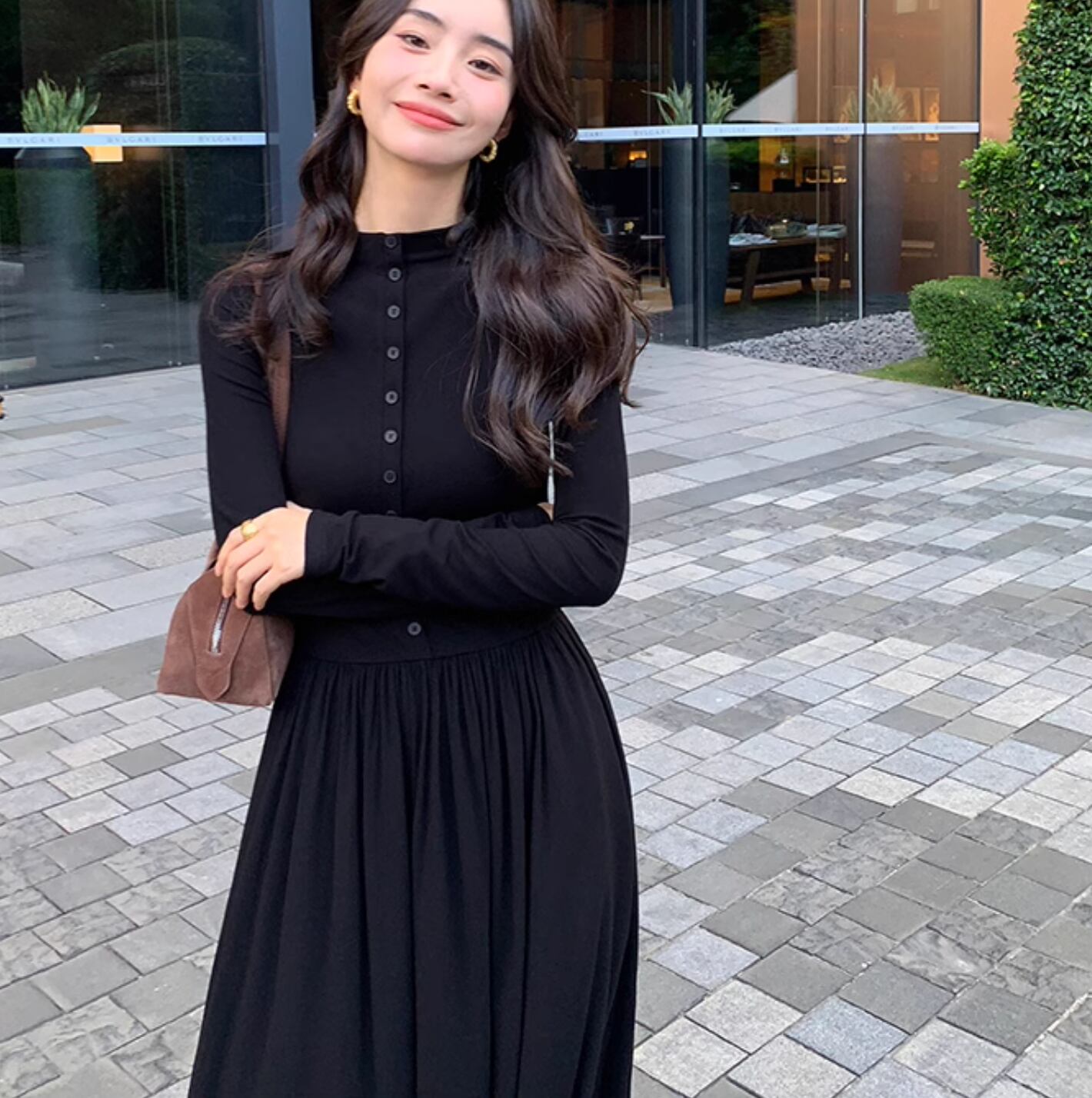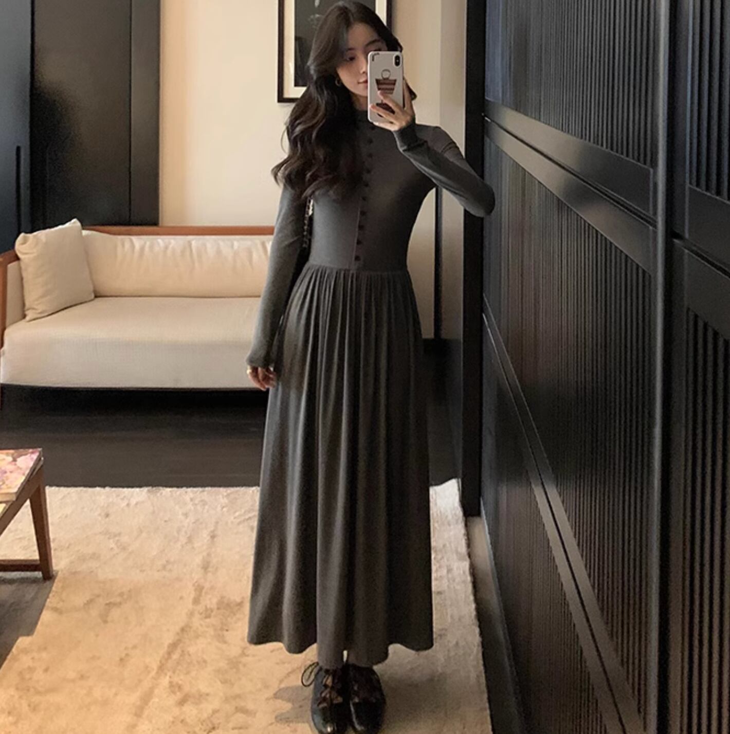 フロントボタンにすることで美しいラインとデザイン性をプラス。シンプルだからこそ、アクセサリーやバッグ、アウターなどを楽しめる万能ワンピースです♡