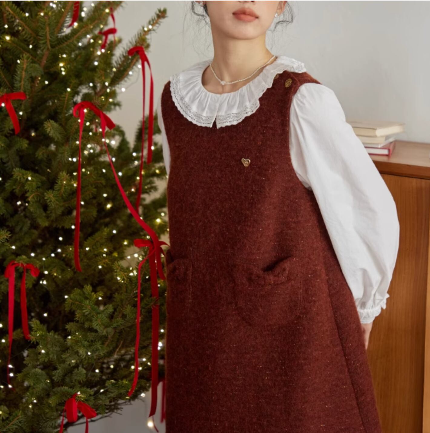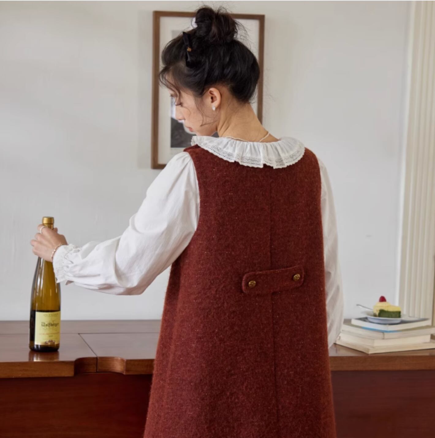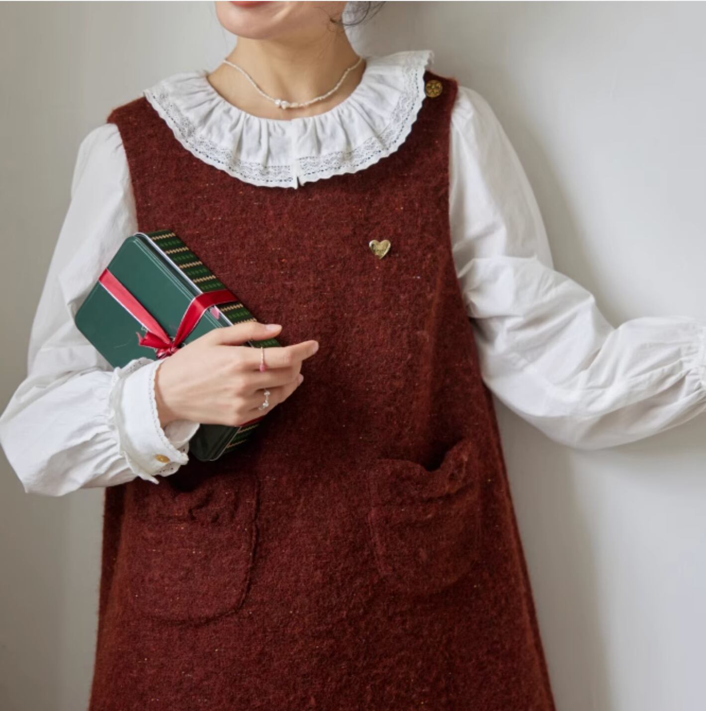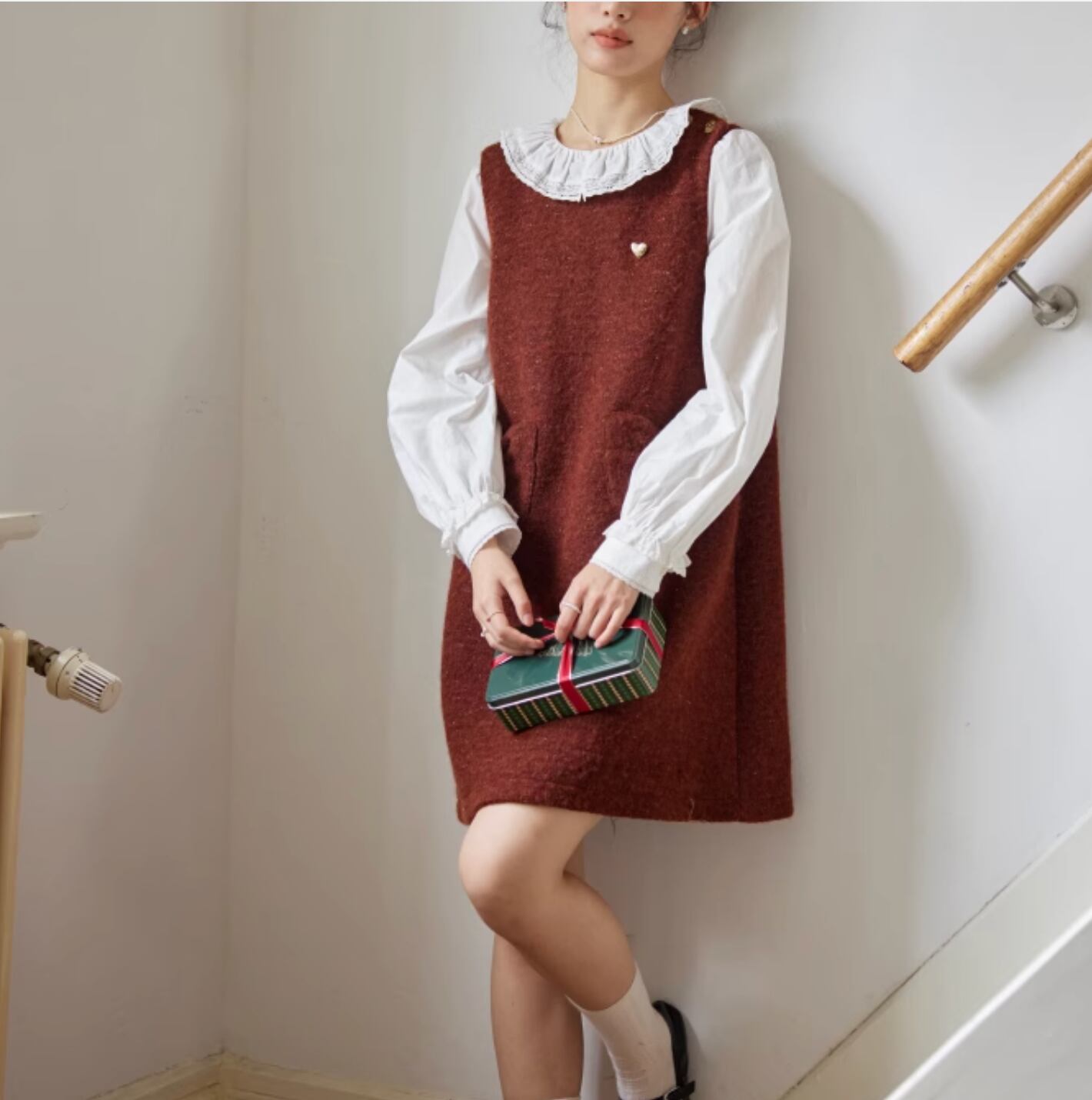 クラシックなツイード素材の可愛いみにワンピース。ラウンドネックデザインで、フリルのブラウスと合わせることで華やかさが一層引き立ちます。特別な日やおでかけに着たい一枚です♡
