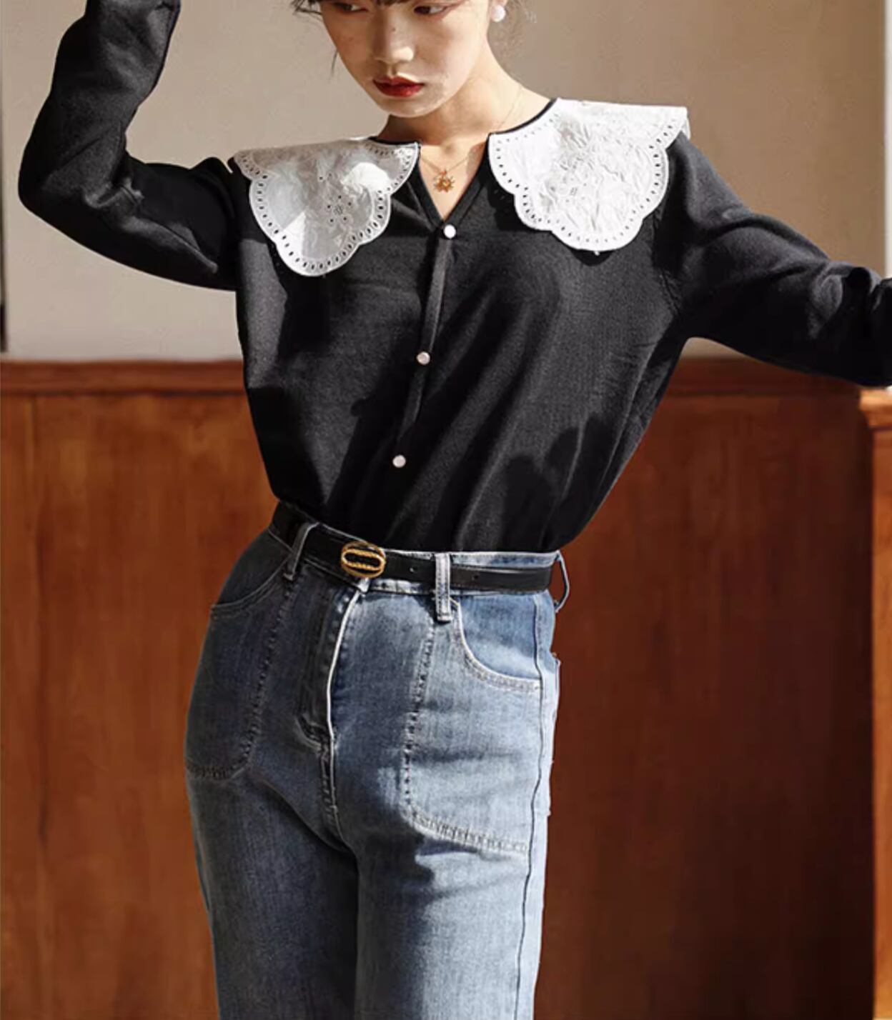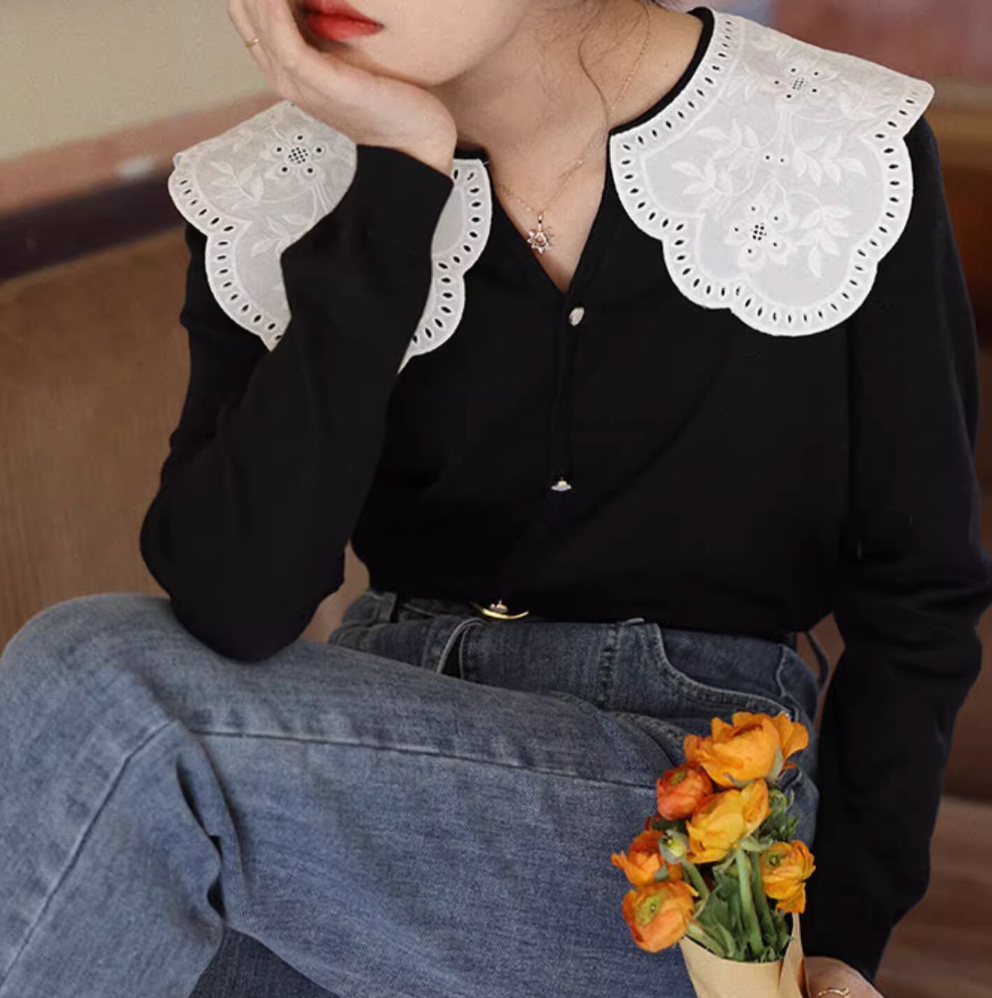 big lace collar cardigan