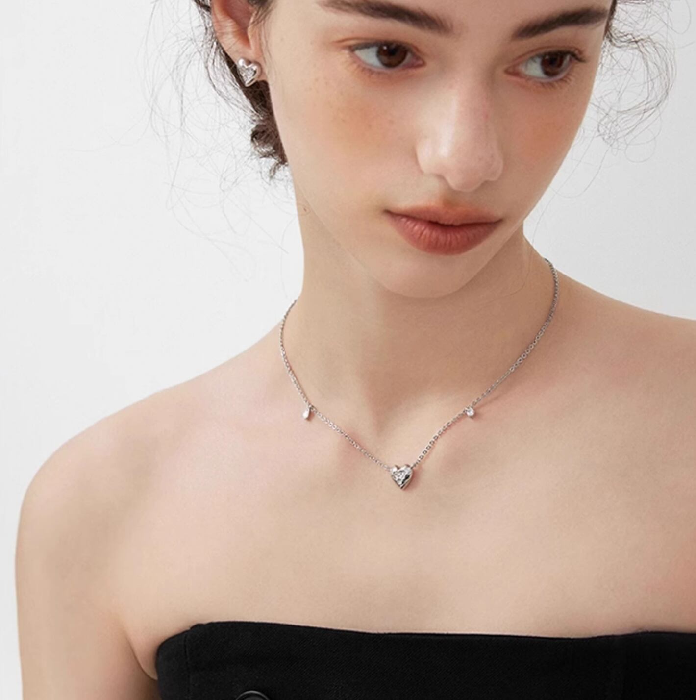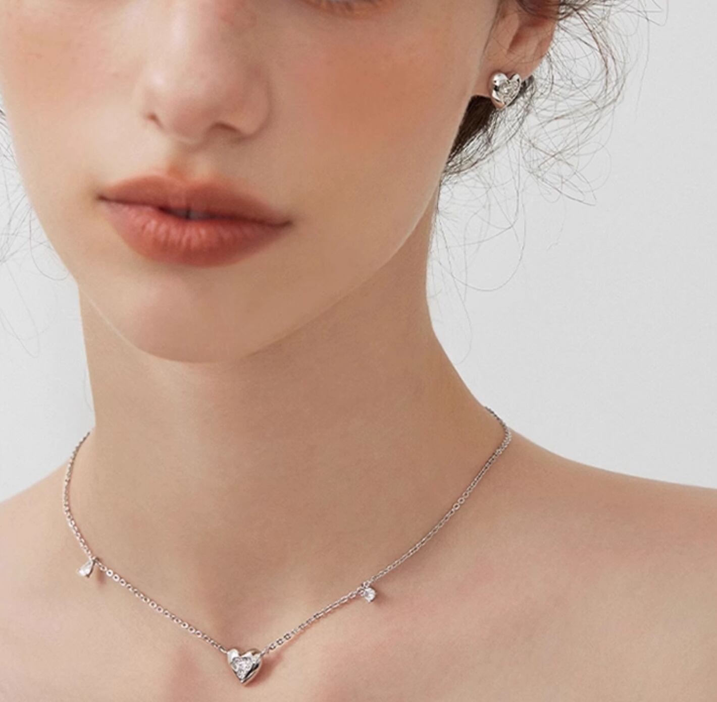 ジルコニアダイアモンドが埋め込まれたハートをモチーフにしたピアスです。