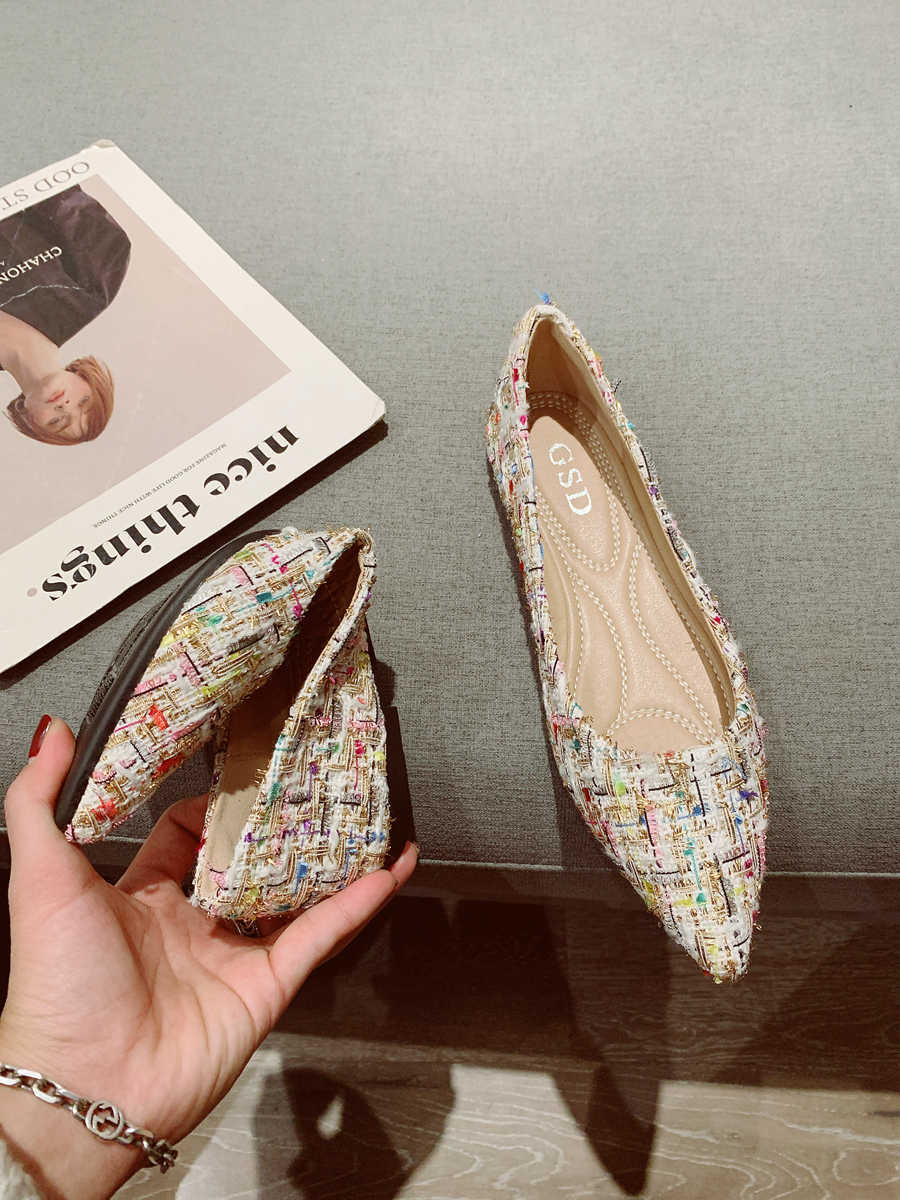 マルチカラーツイードがフェミニンなフラットパンプスです。デニムなどのカジュアルスタイルにもエレガントさを演出してくれます♡柔らかく歩きやすいのも◎