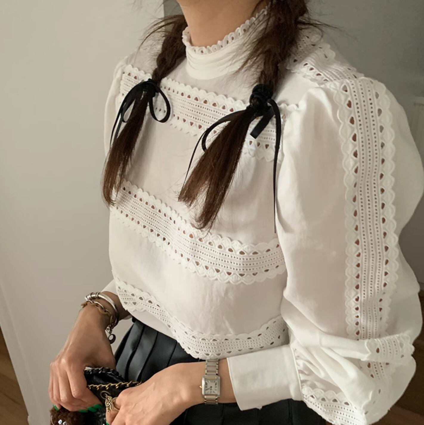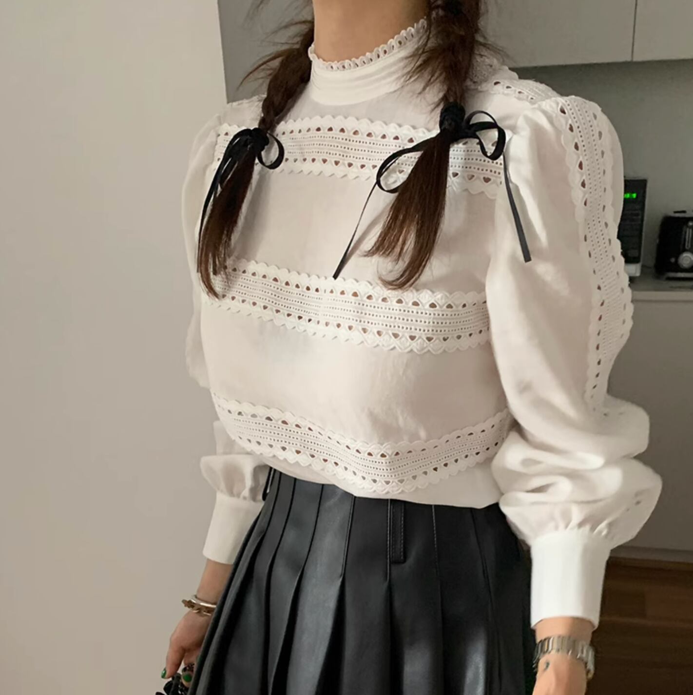 【Retro Heavy Industry Lace Patchwork Shirt】