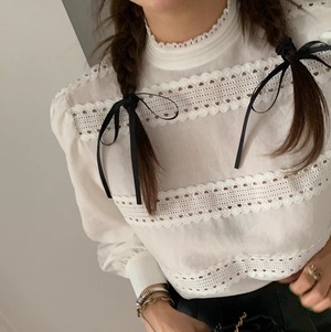 ボーダー状に施したハイネックプルオーバーのオフホワイトです。どんなスタイルにも合わせられます◎ワンピースに重ねて首元や袖をアクセントに見せるコーディネートもおすすめです。
