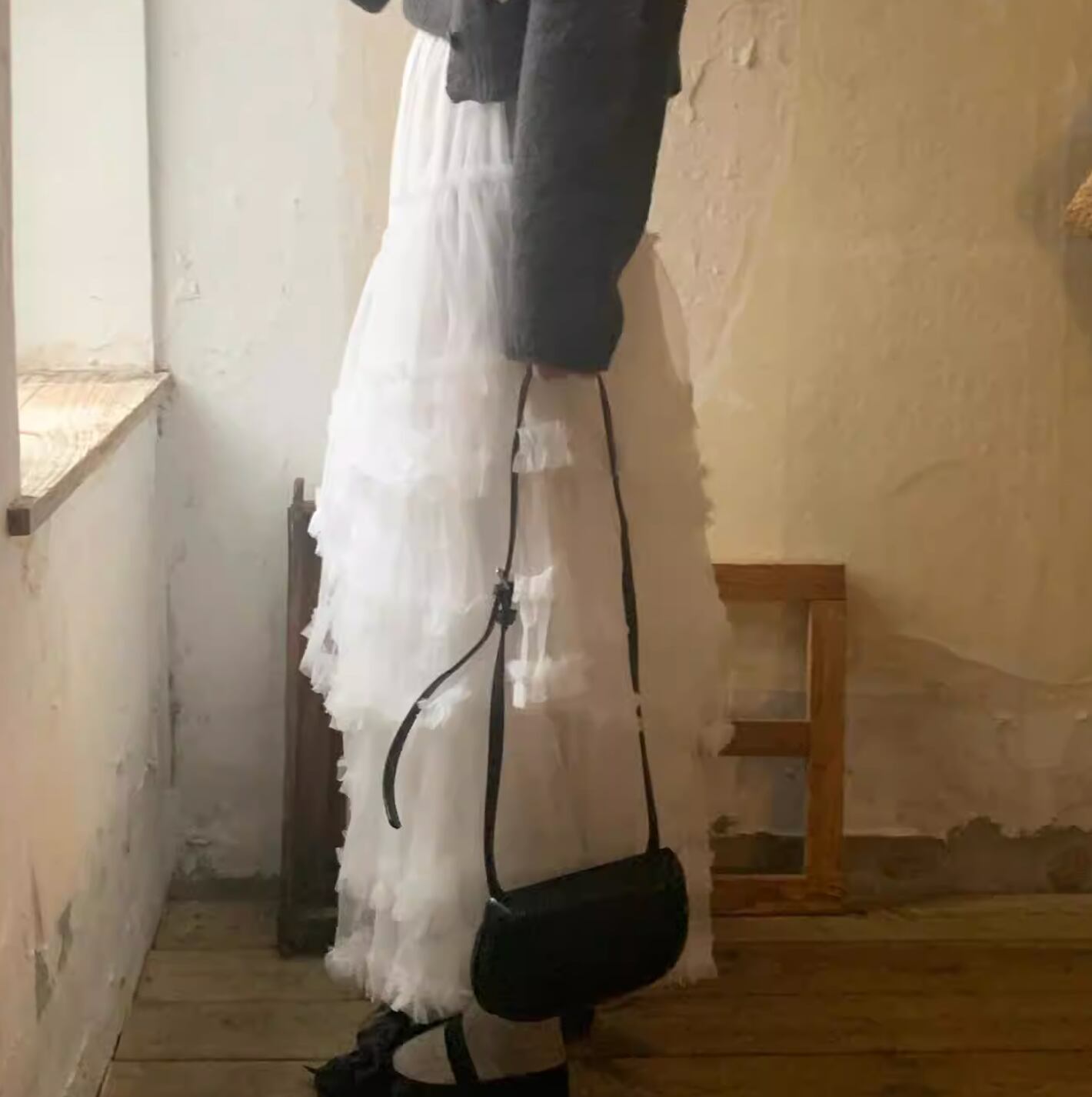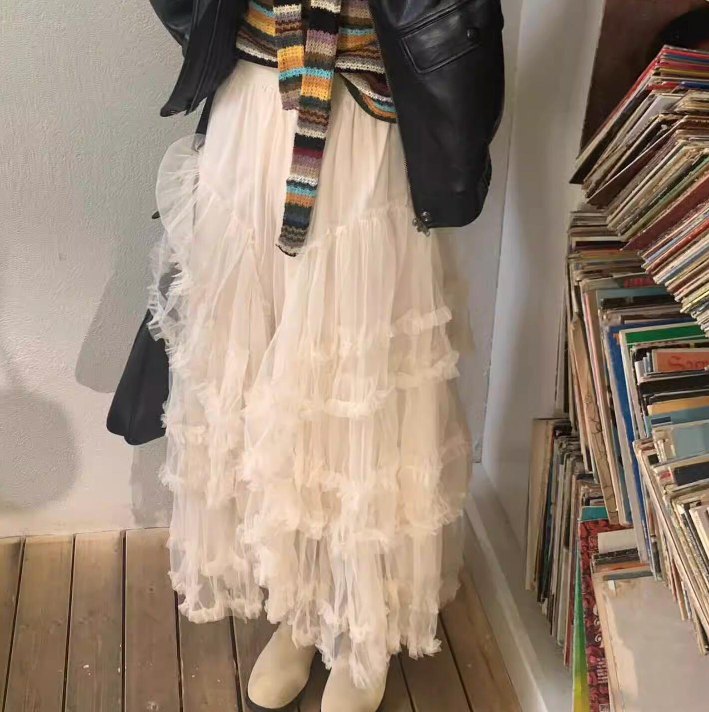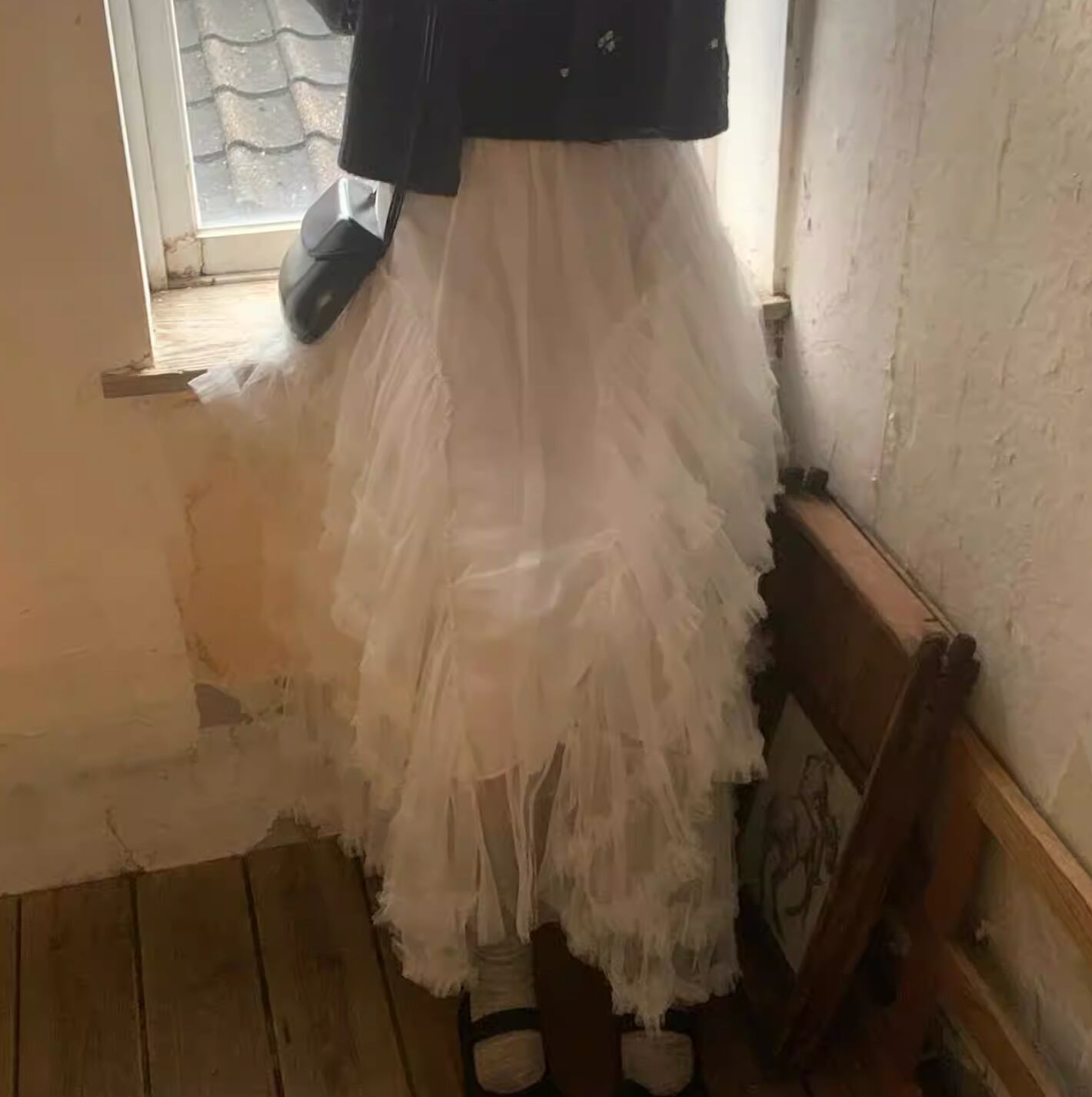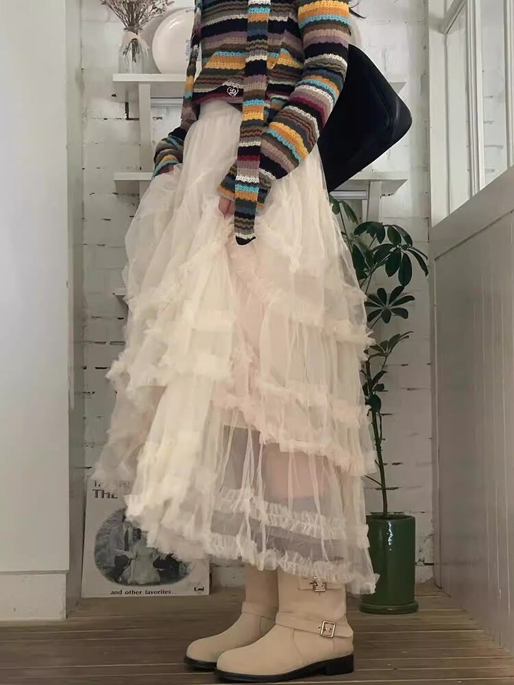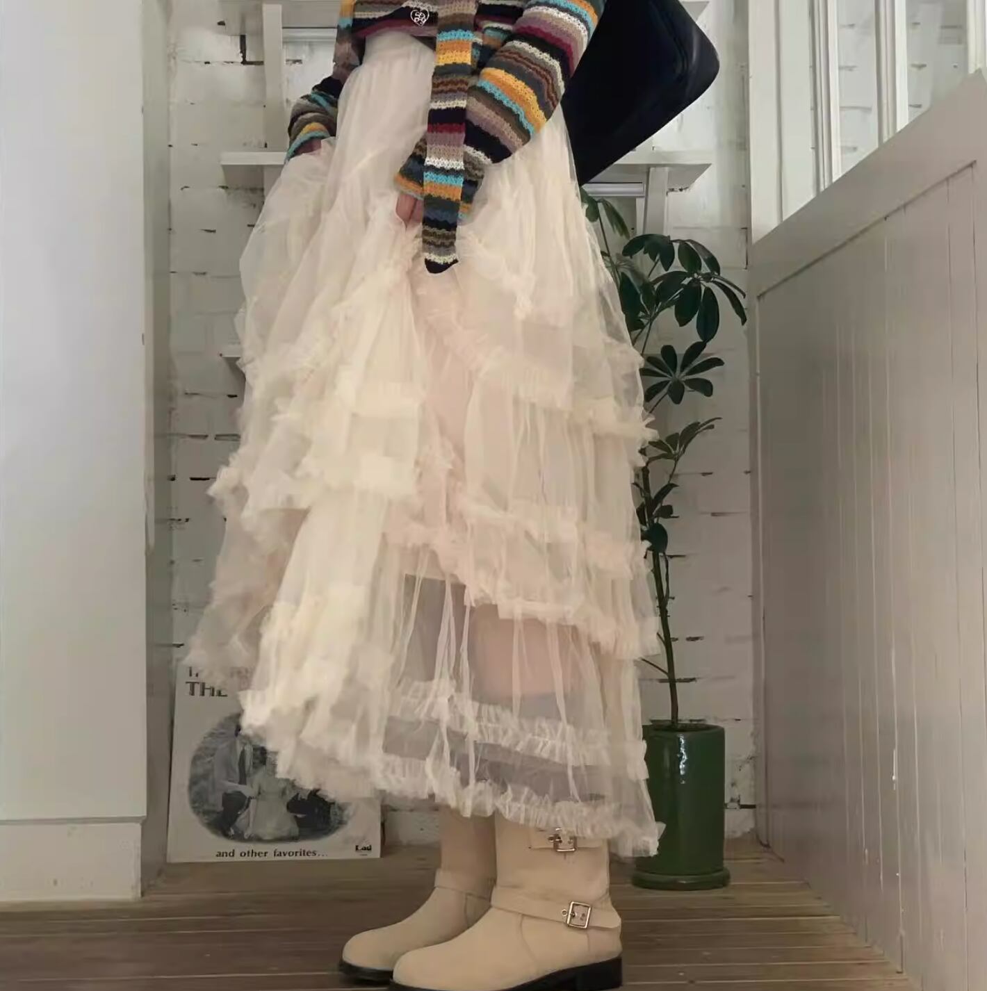 【Sweet Temperament Mesh Puff Cake Skirt】