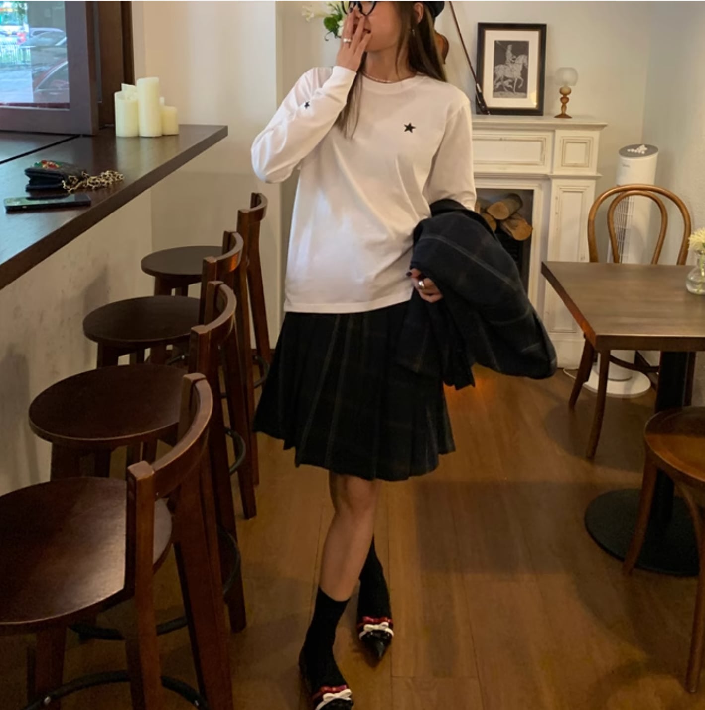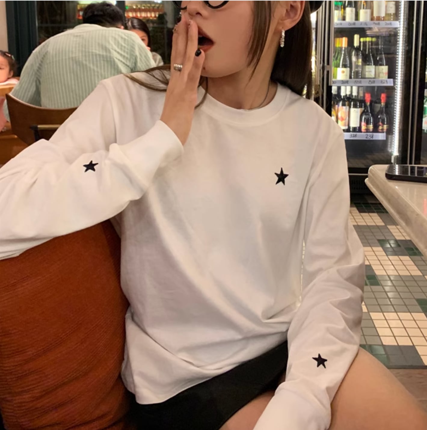 【White T-shirt Sweatshirt Loose Round Neck Top】