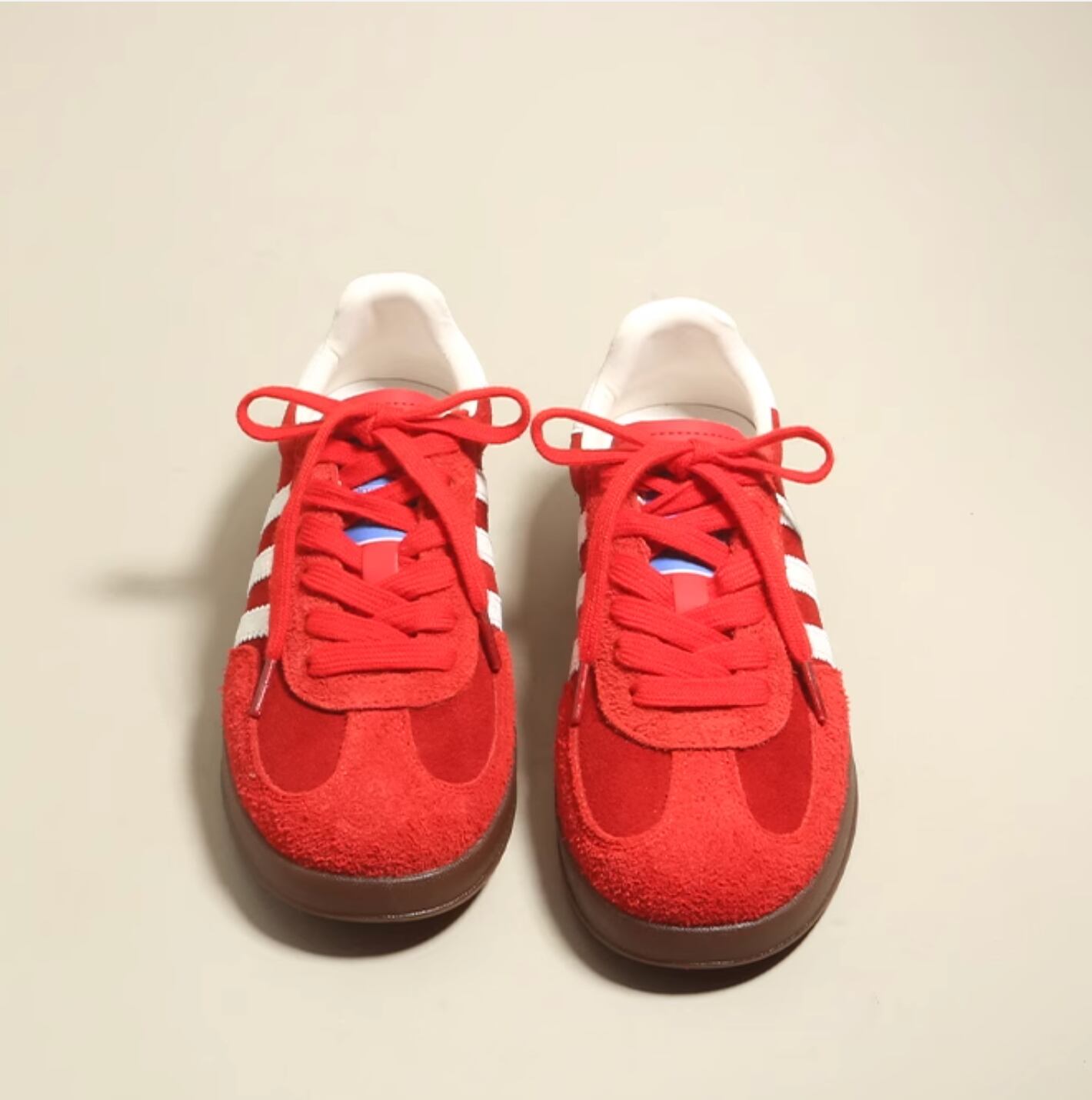 ヒールタブとスリーストライプスにコントラストカラーを使い、このシューズをスタイリッシュにまとめている。街をぶらぶら歩くときや友達と会うときにも気分を上げてくれます♡