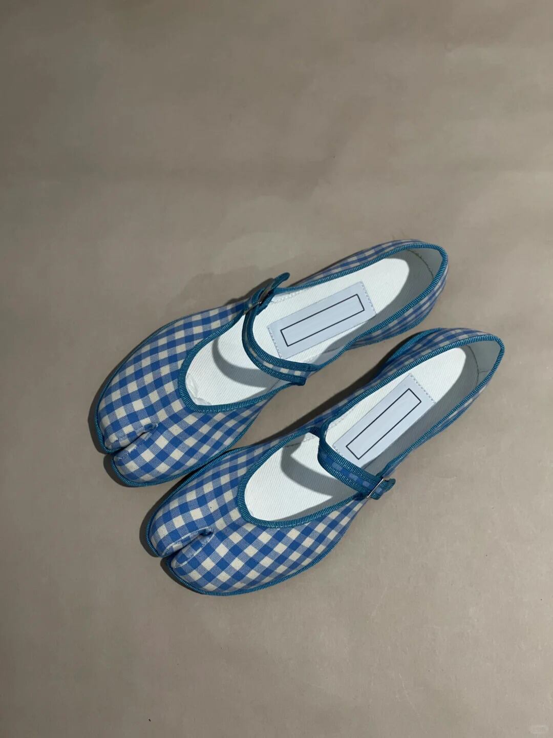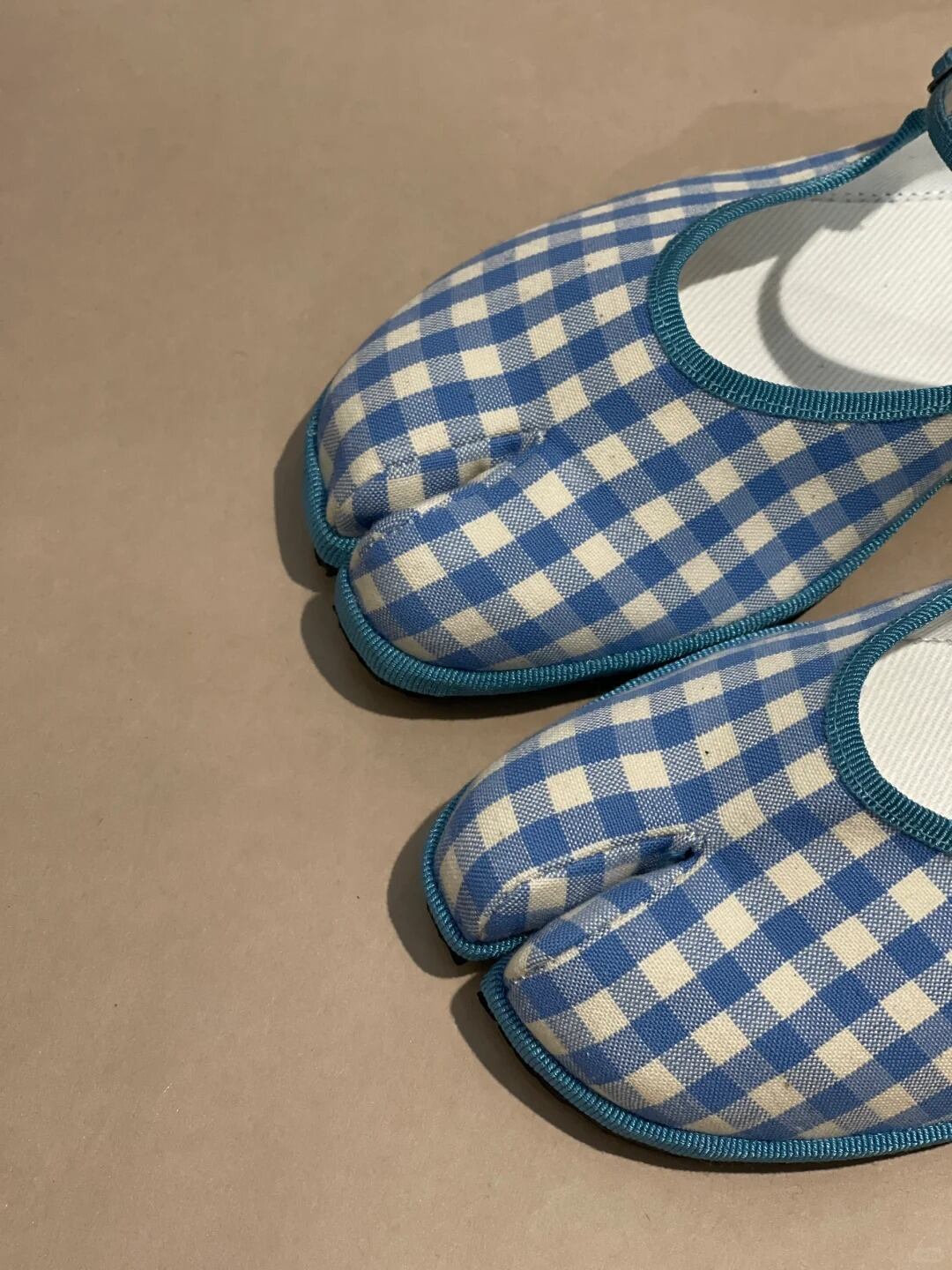 洒落てる感たっぷりチェック柄足袋シューズ。