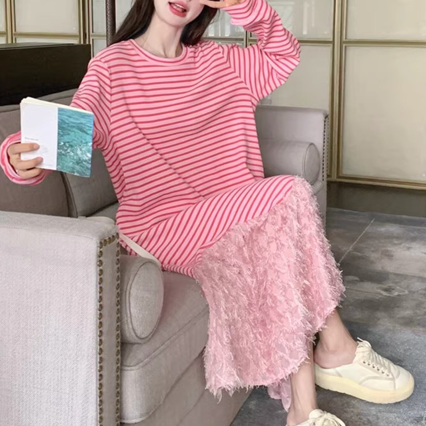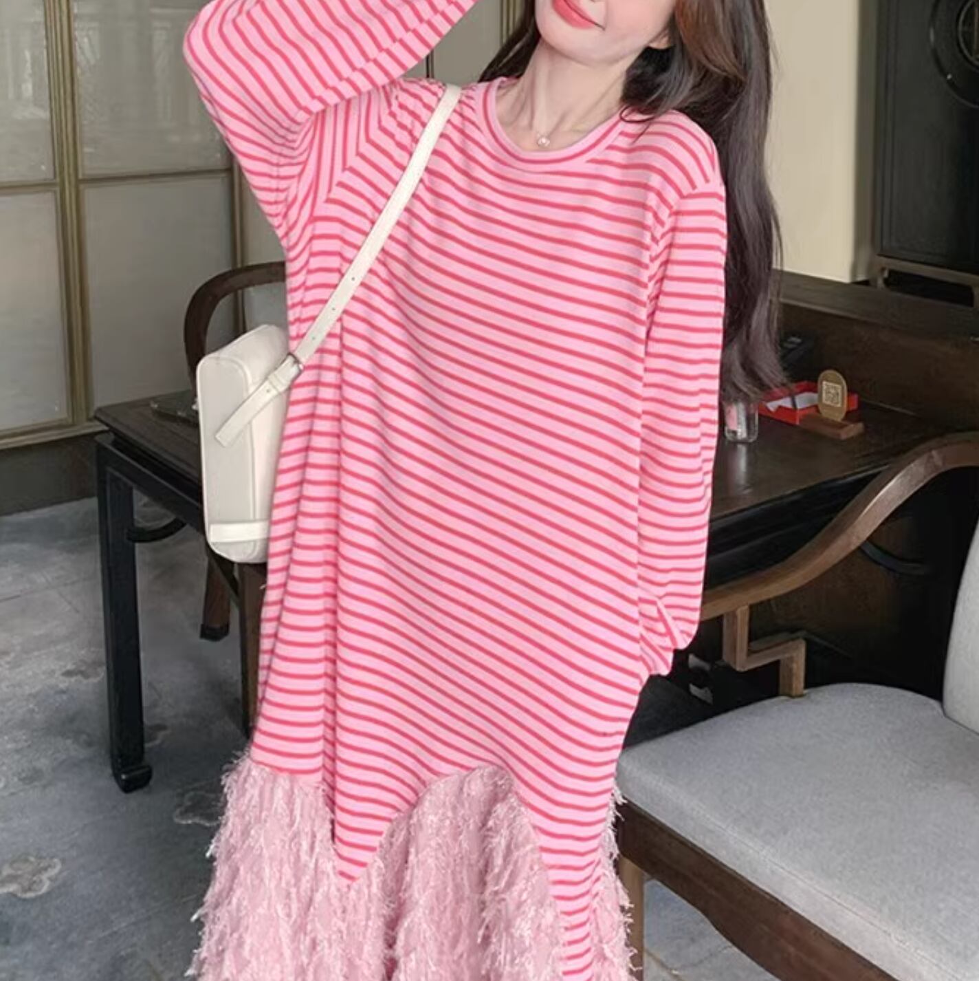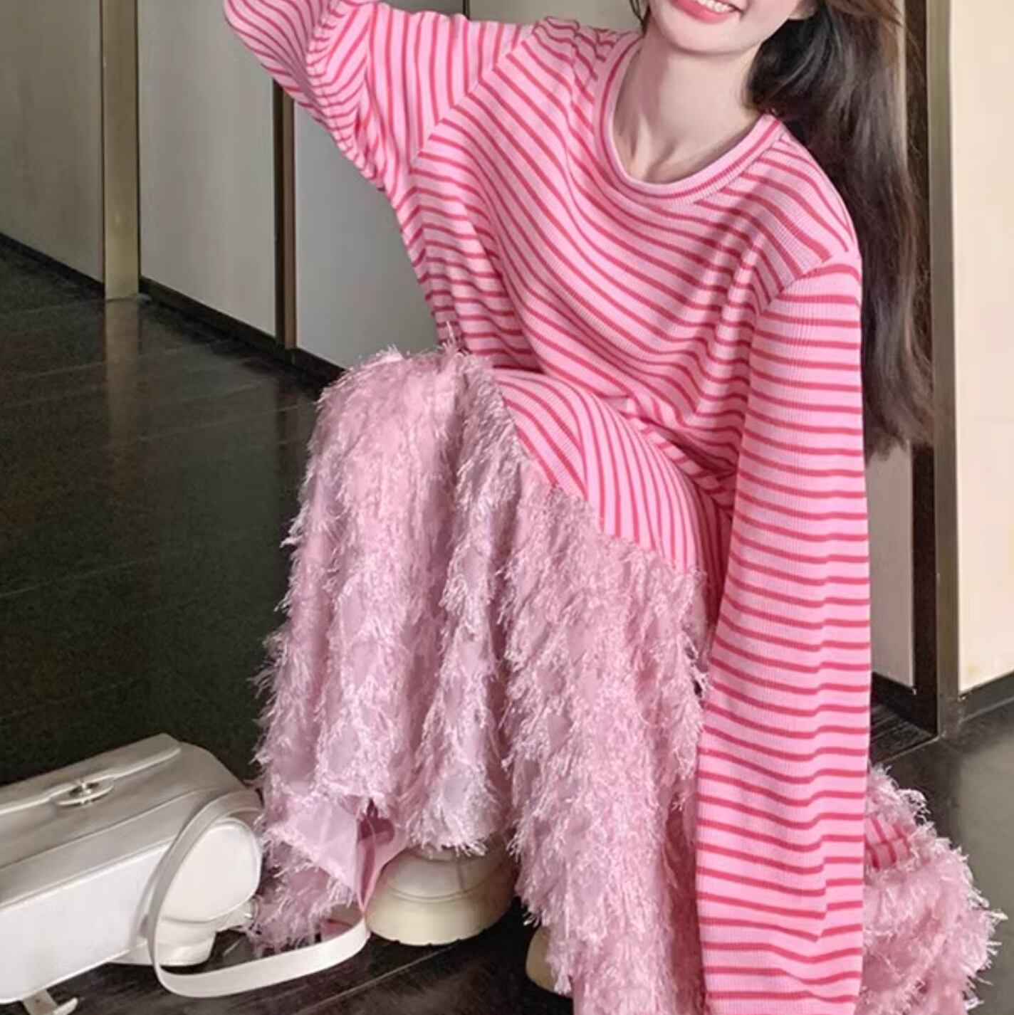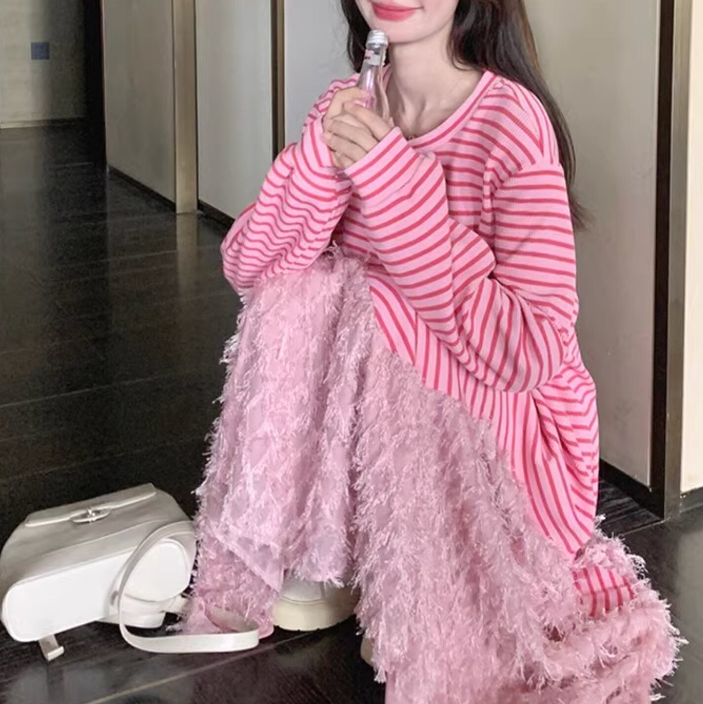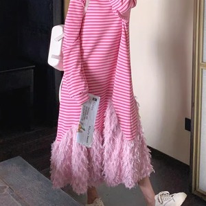 体型をカバーするゆとりのある大きさのスカートにふわふわのタッセルデザインがポイントの