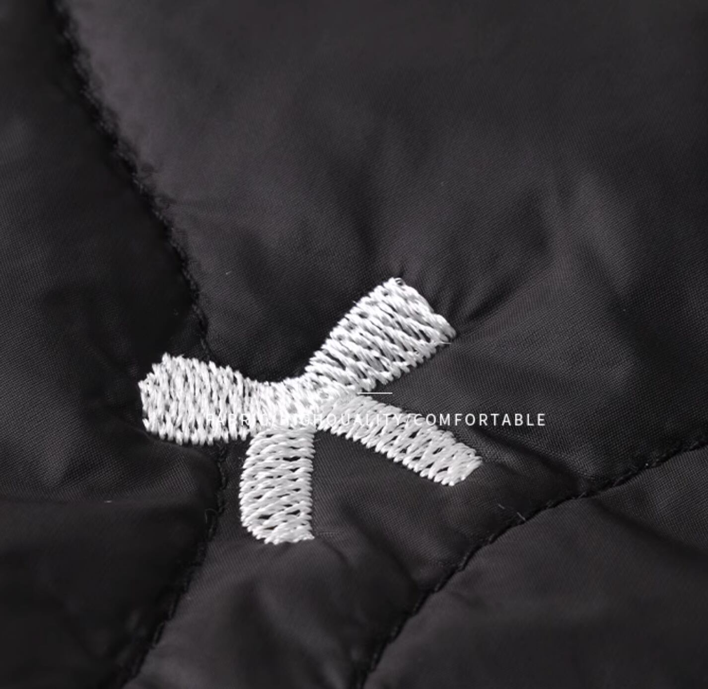小さなリボン刺繍がアクセントになったキルティング生地のジャンパースカート。