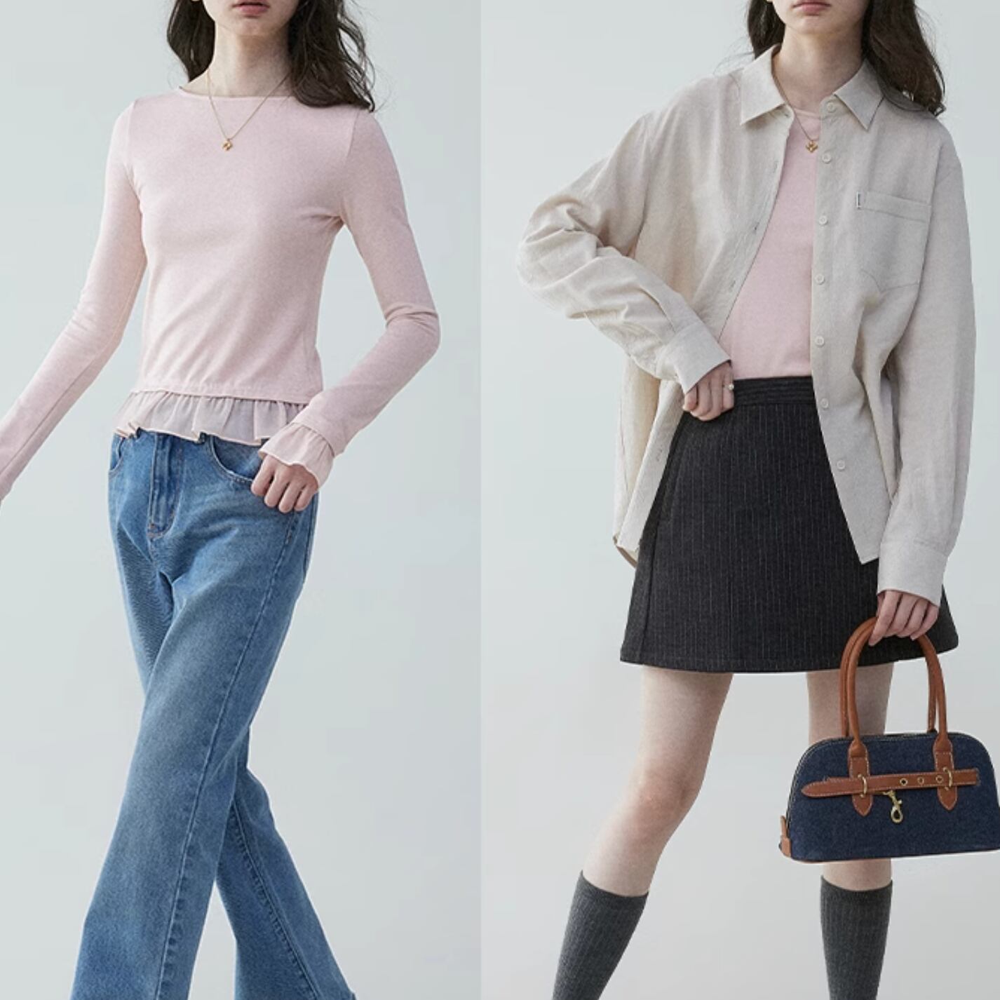 デニムやスラックスなどのパンツスタイルはもちろん、スカートとも相性抜群。ワンピースやビスチェの下に着るのもおすすめです。