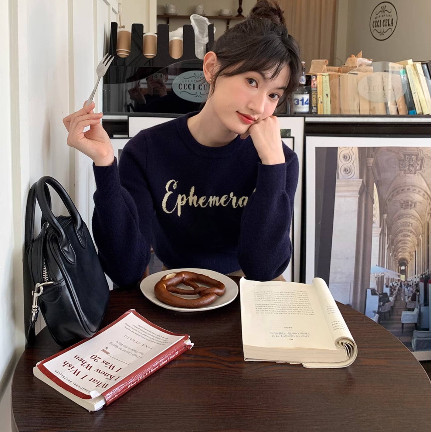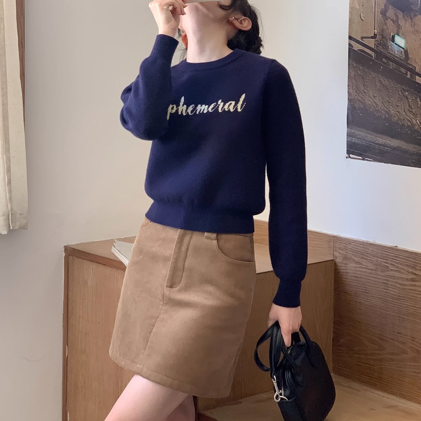 フロントショルダーのデザインは着膨れせず、様々な肩の形に合わせて着用できます。襟、袖口、裾は伸縮性のあるリブ編みで、柔らかく肌に優しい、保温性があります。