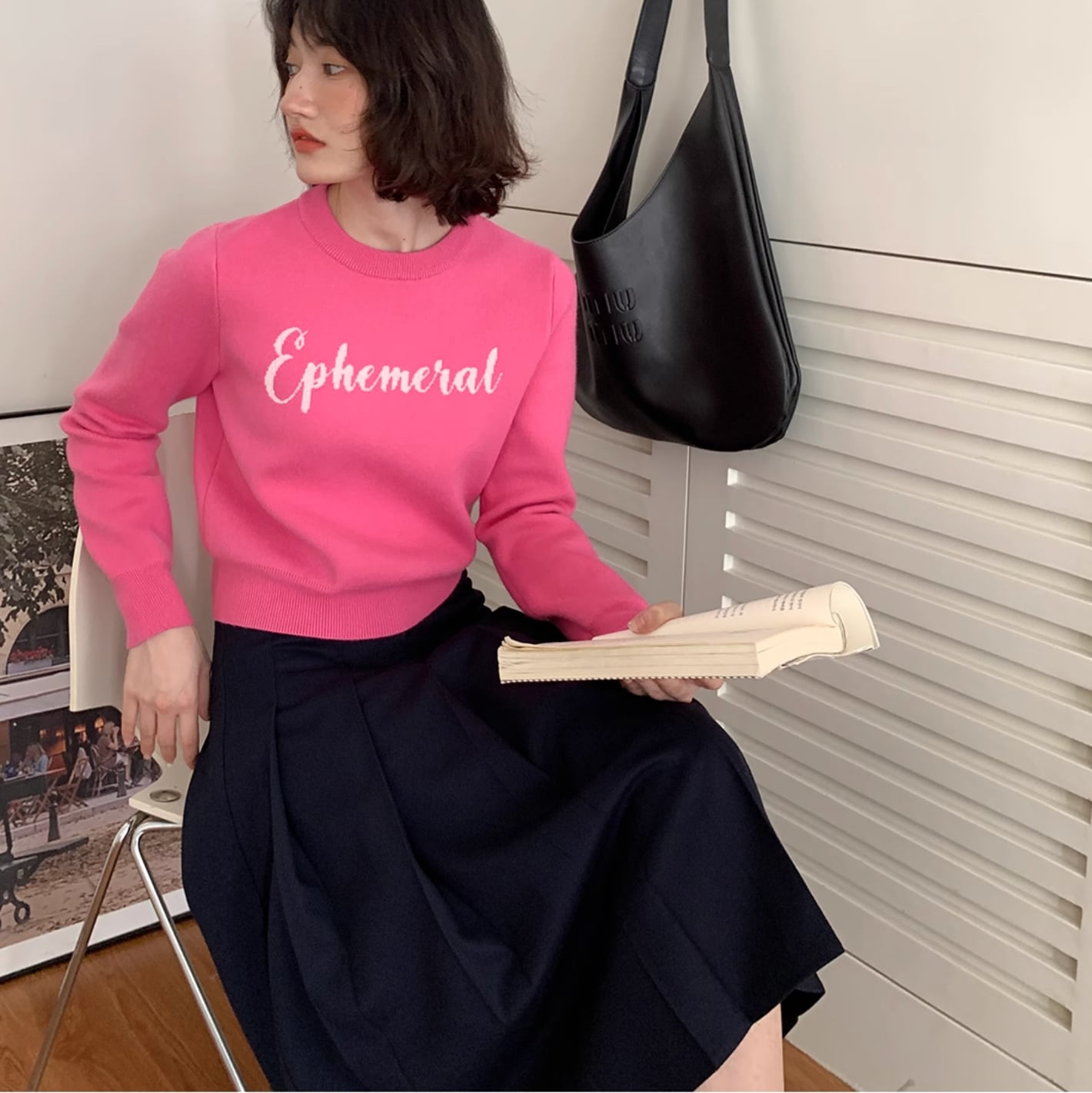 Retro Letter Jacquard Short Sweater