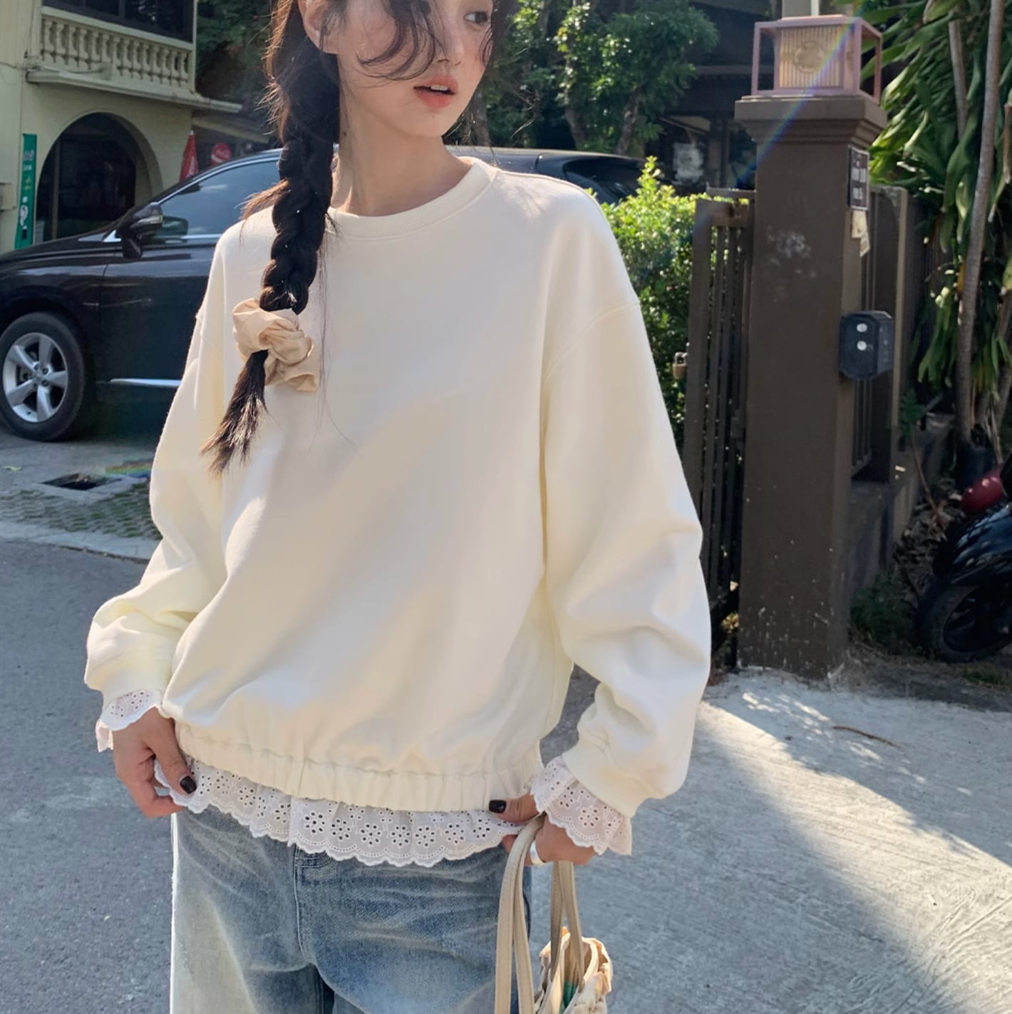 Patchwork lace hoodie