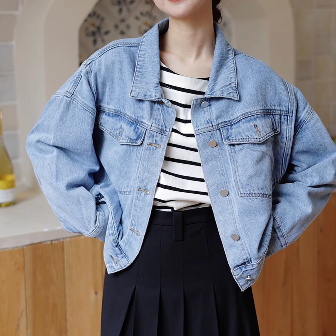 地厚でしっかりとハリのある生地は、カジュアルなのにきちんと見えを演出します。