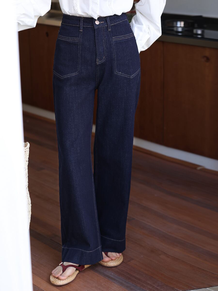 上質なツイルデニム生地は、さらっとした肌触りと柔らかい生地で、