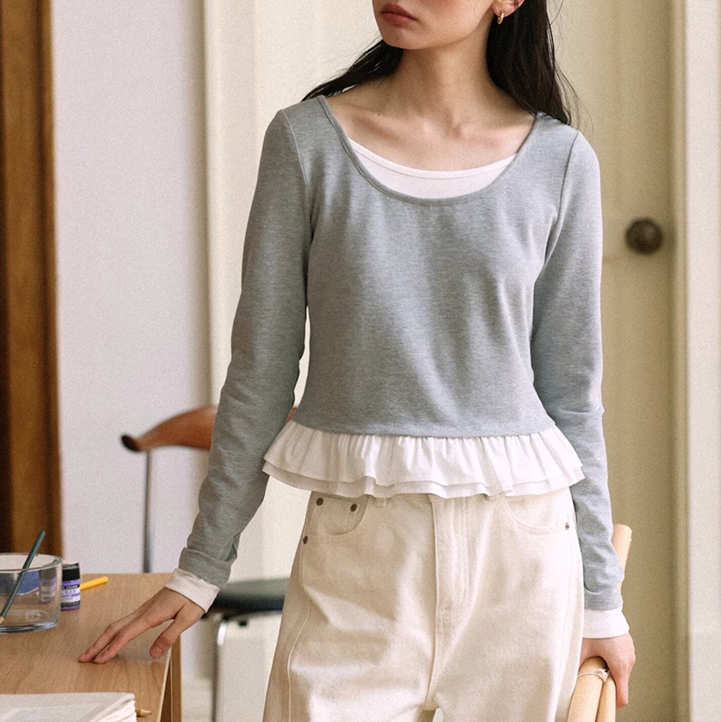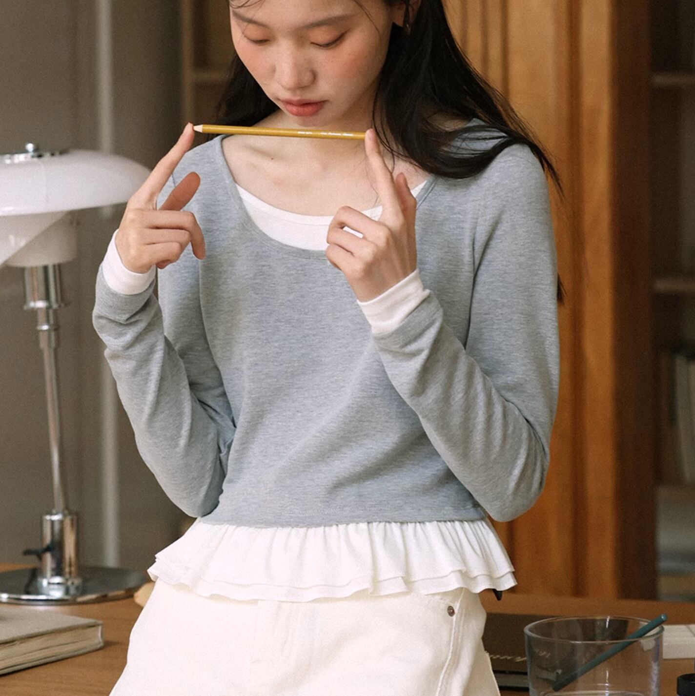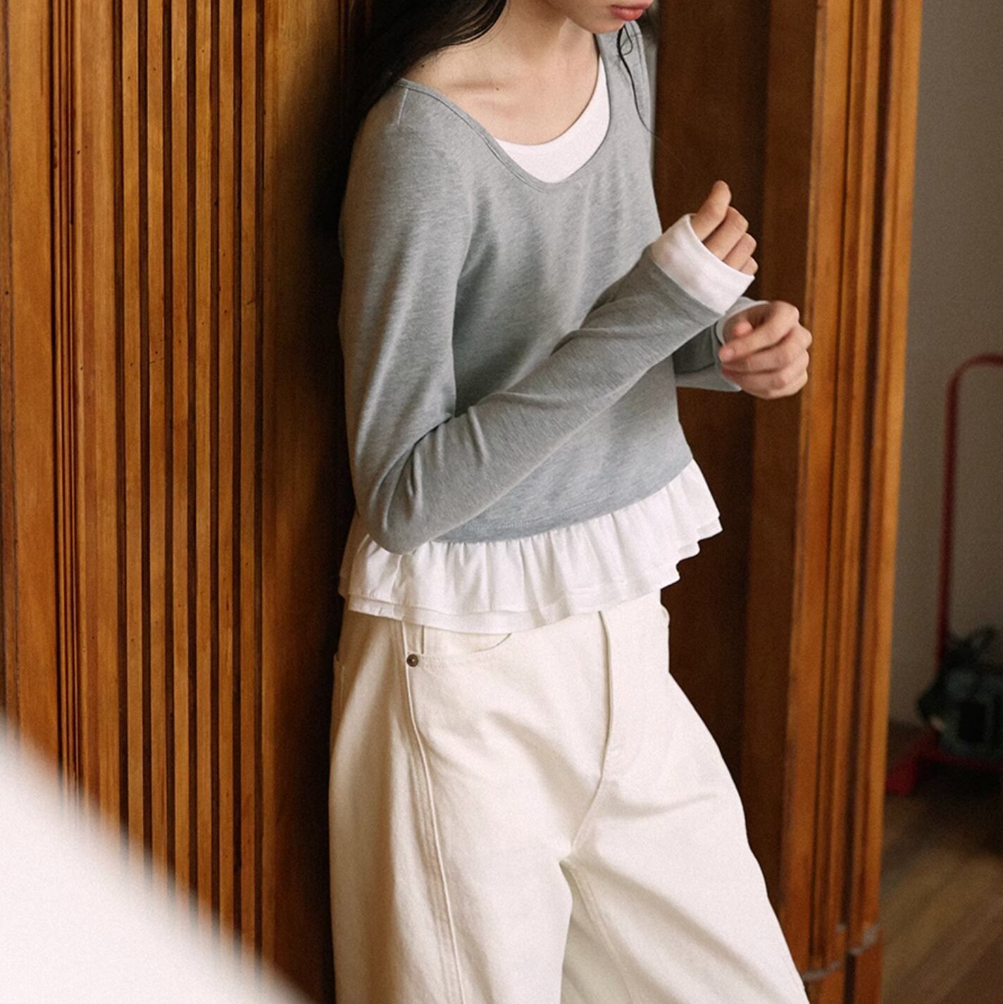 まるで重ね着しているように見えるフェイクレイヤードデザインが特徴の長袖トップス!