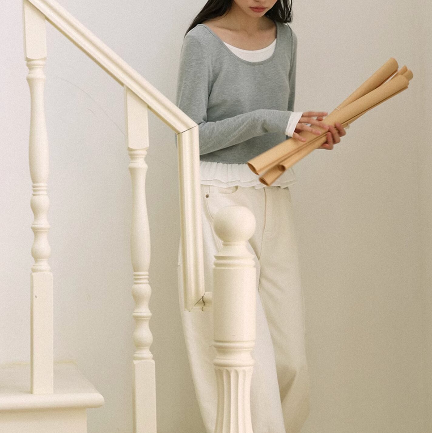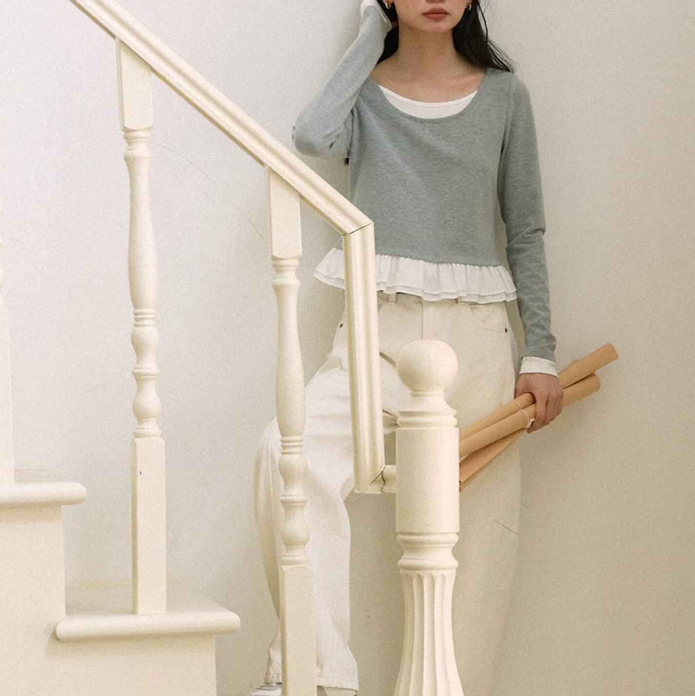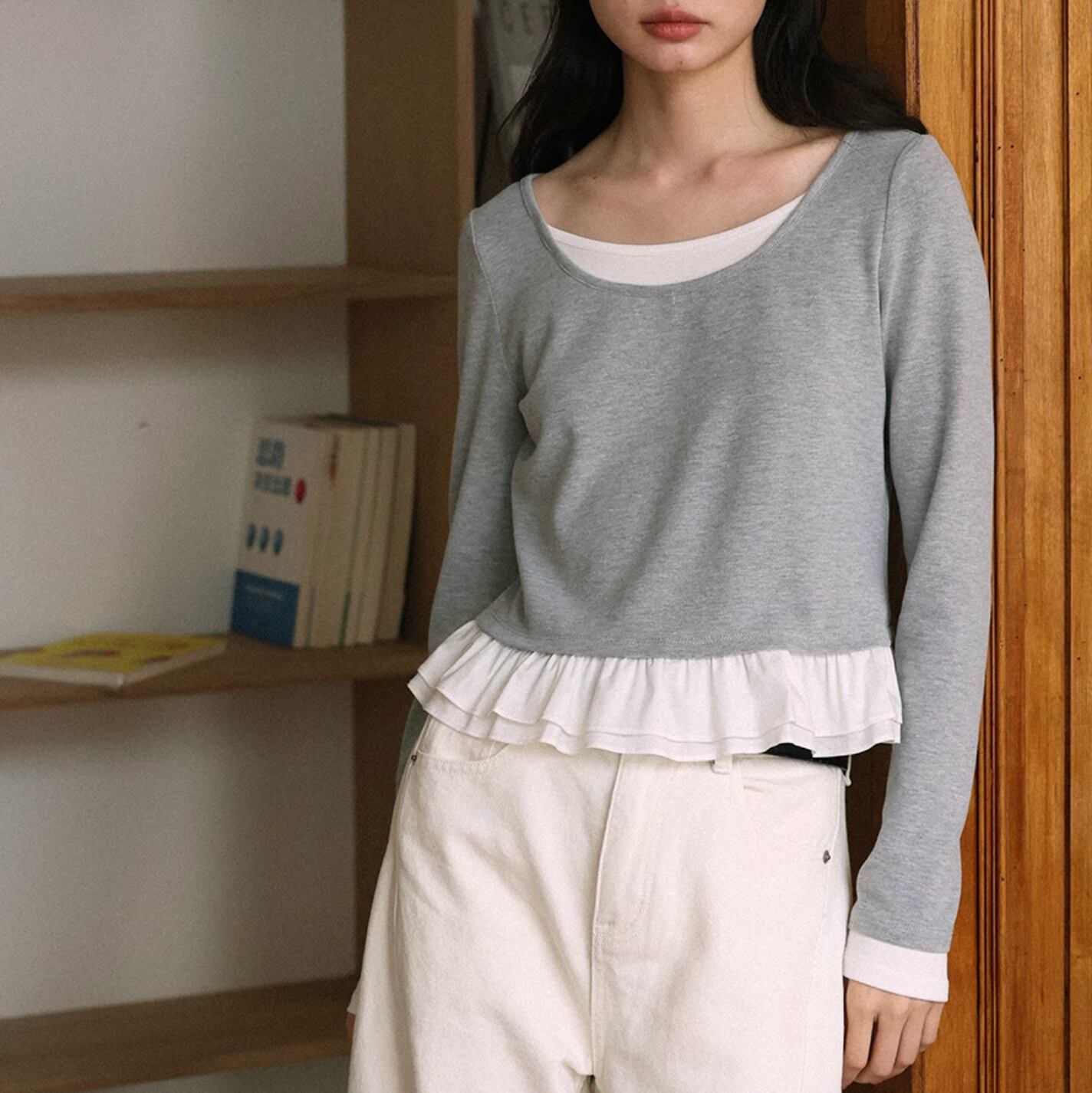 まるで重ね着しているように見えるフェイクレイヤードデザインが特徴の長袖トップス!