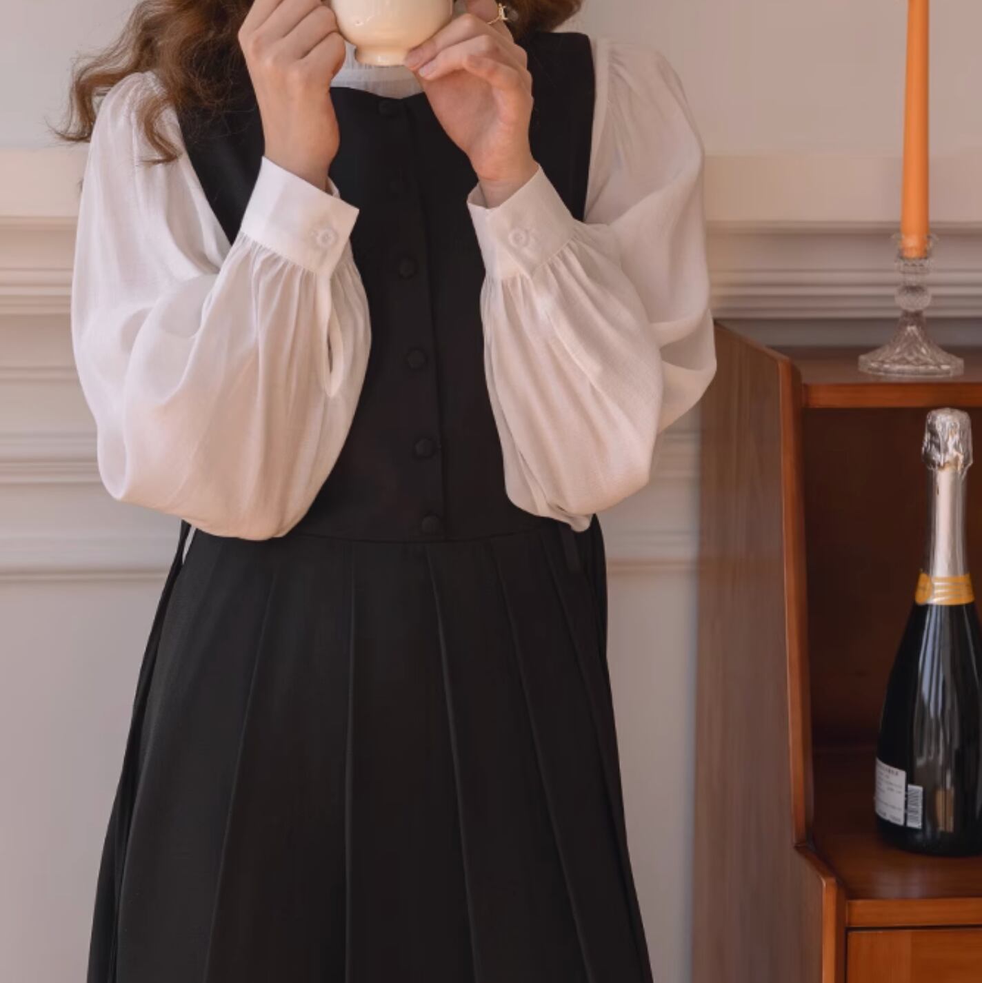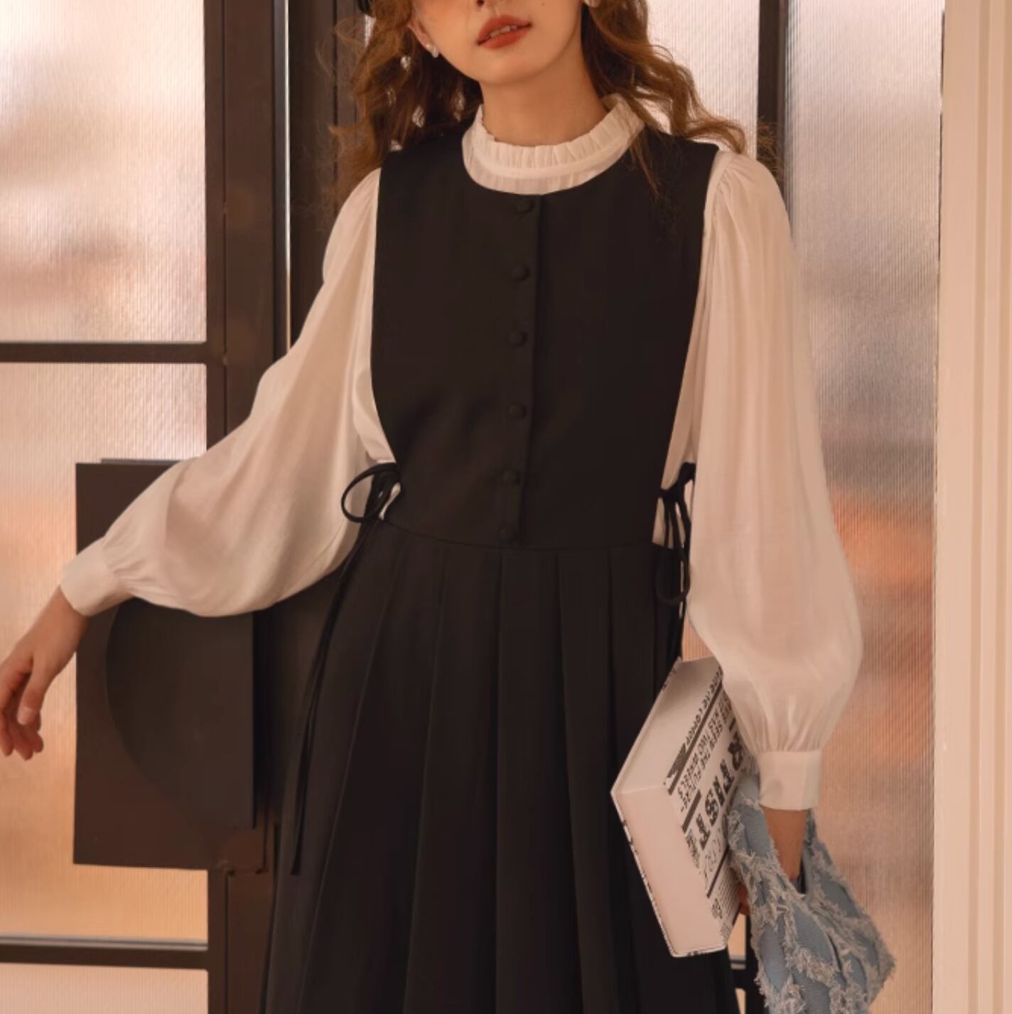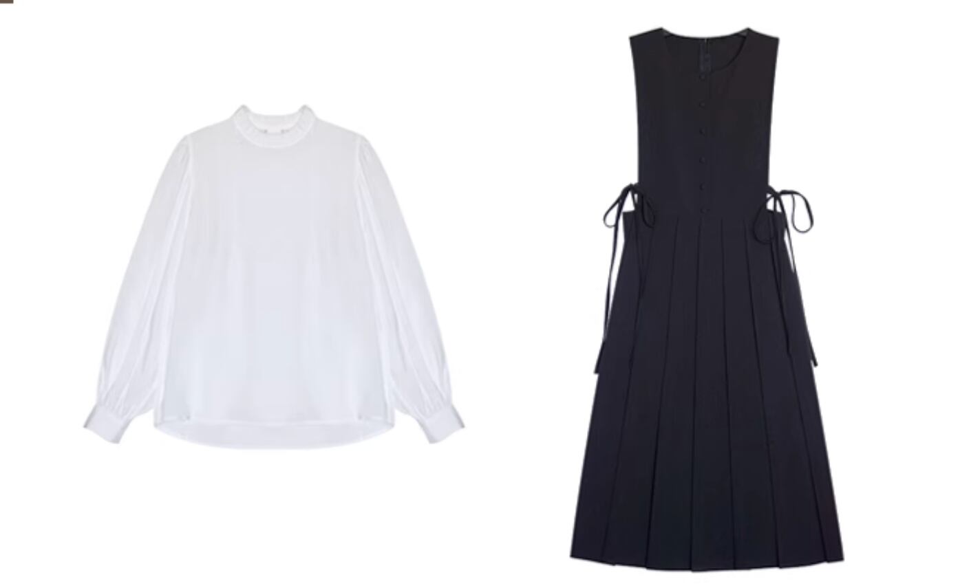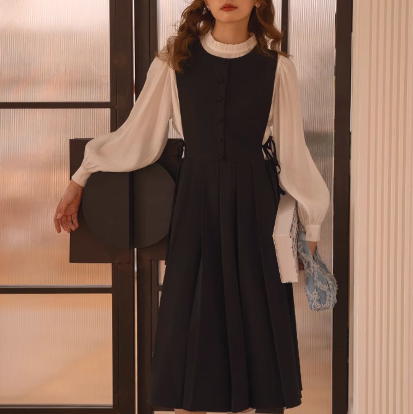 ブラウスとドレスがセットのフレンチプリーツドレス。