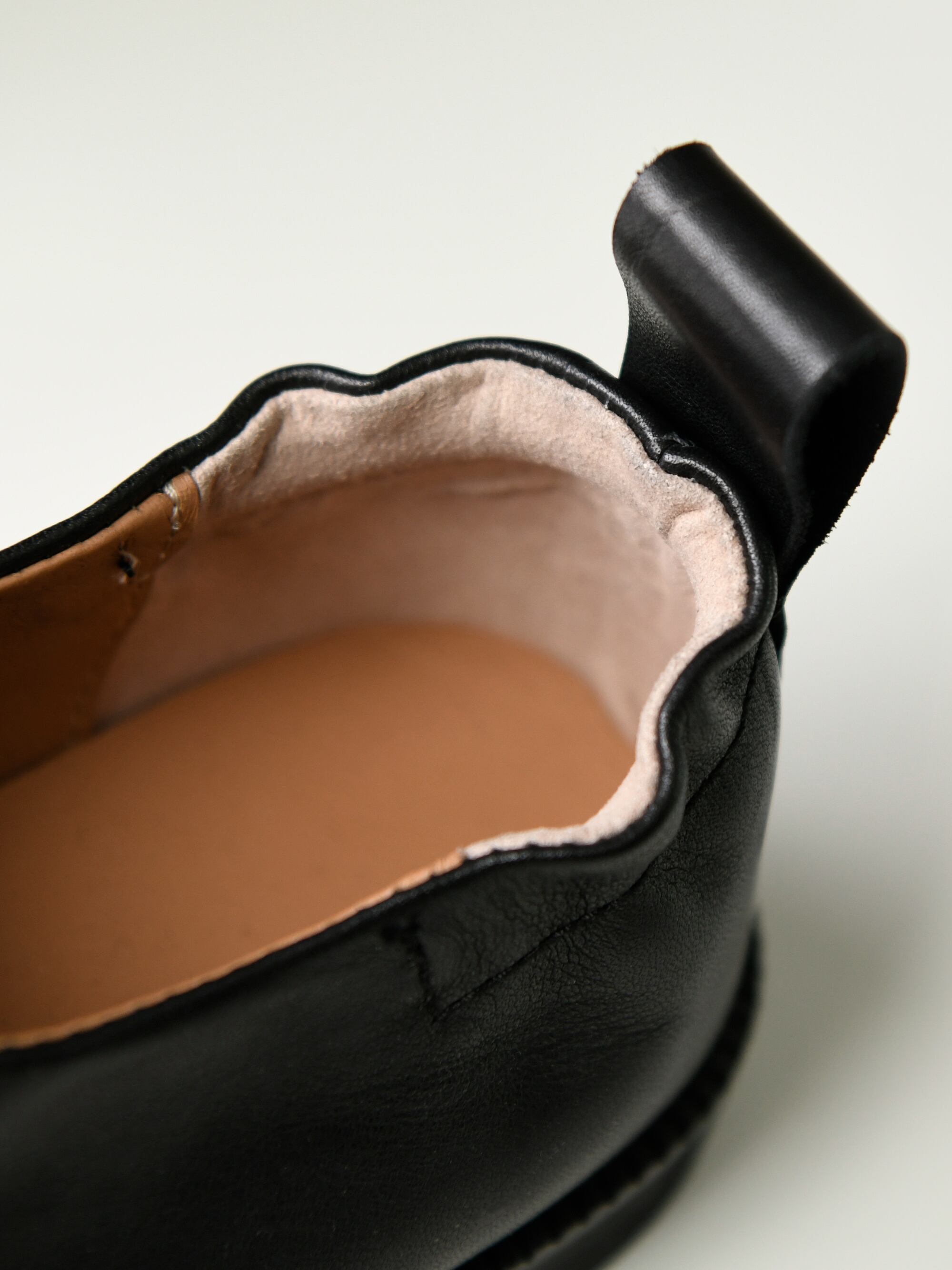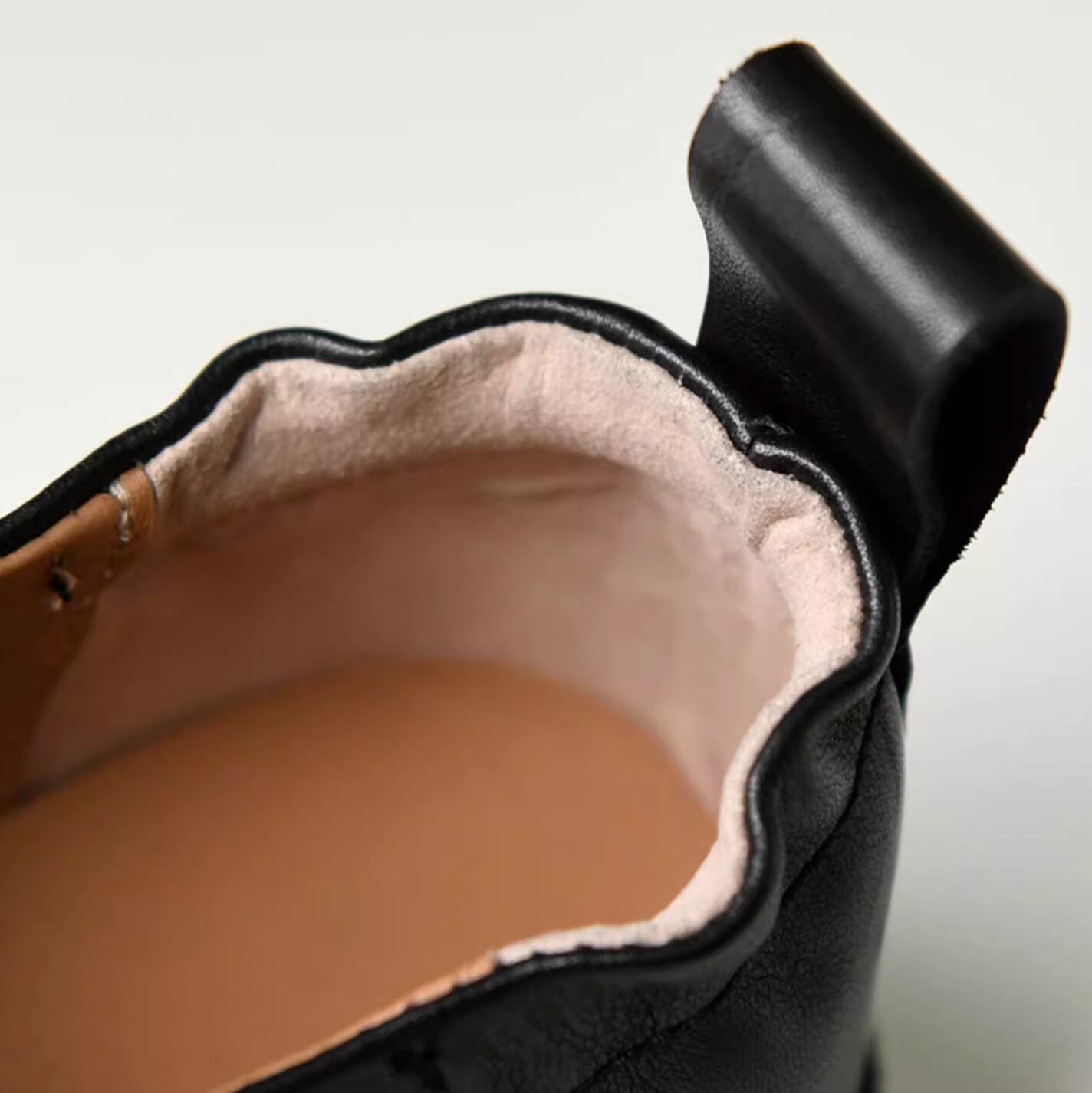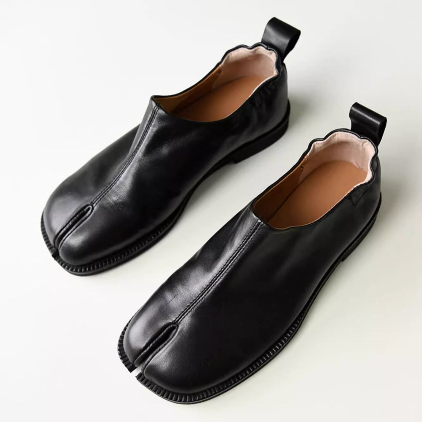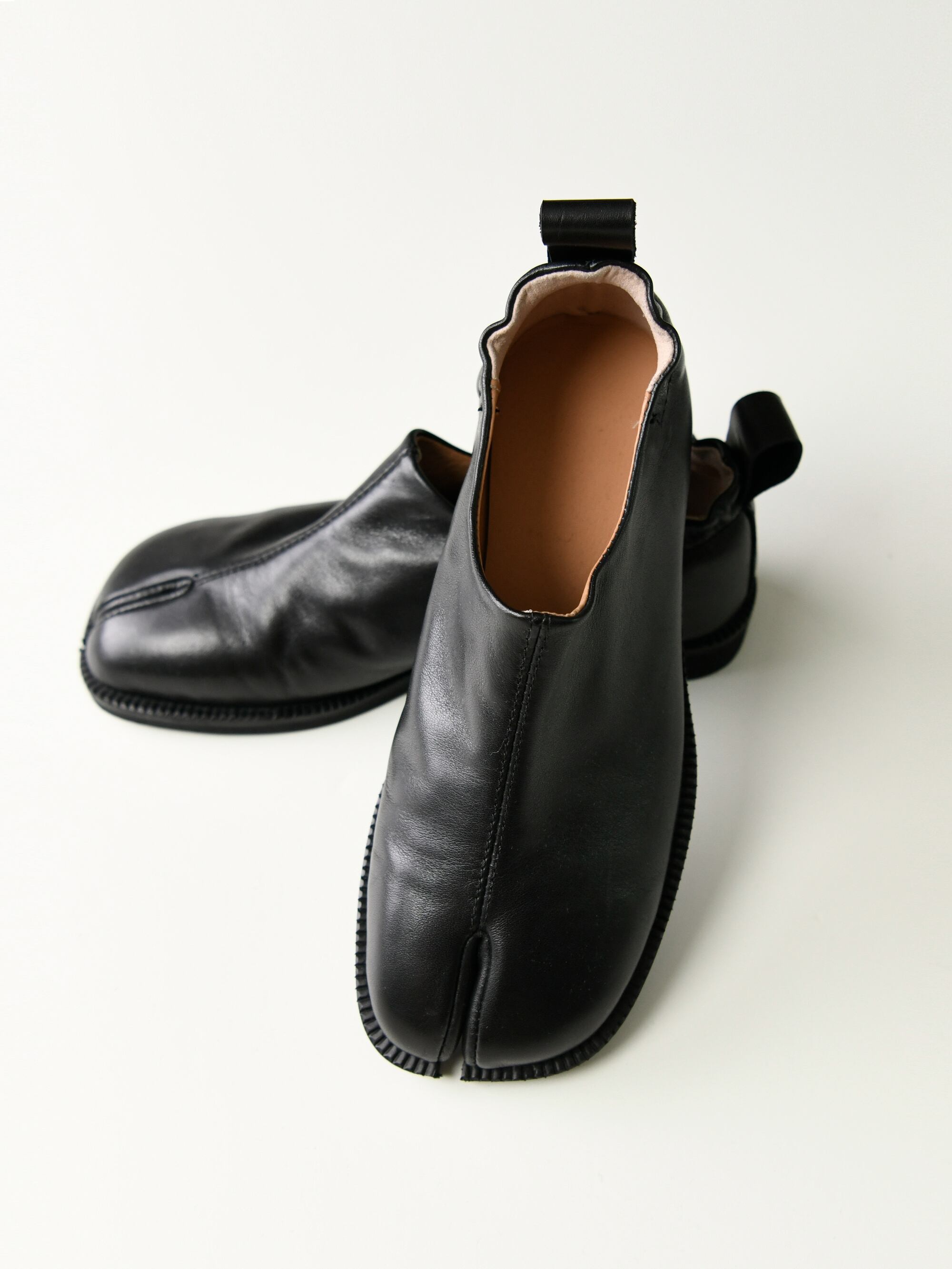 つま先が2つに分かれた足袋を思わせるルックスのシューズ。