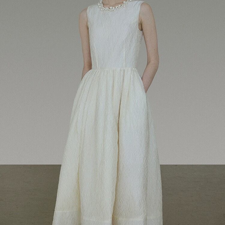 上品な丈感とエレガントで精巧なパールネックラインで、少しオシャレにきめたい時や